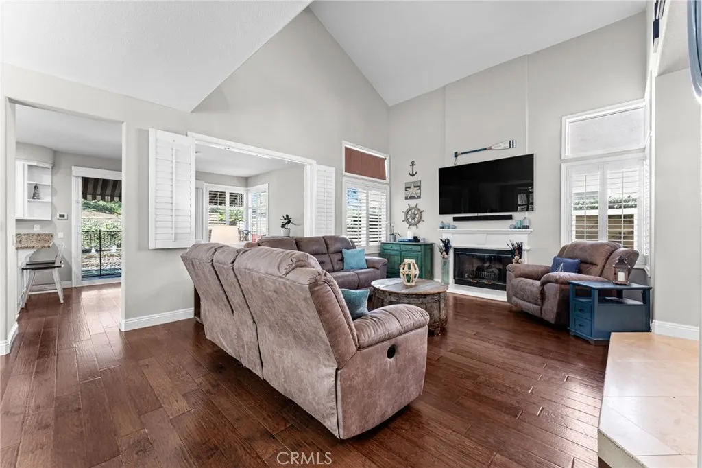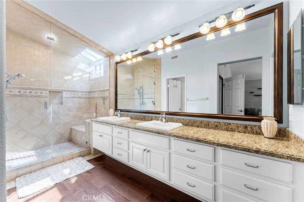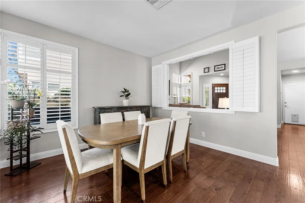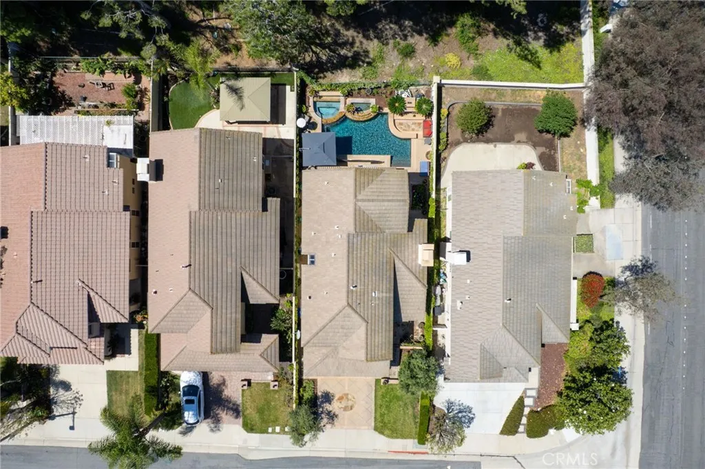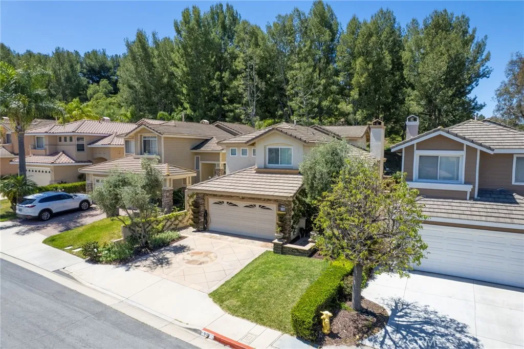 Tucked into the desirable Anaheim Hills community, this beautifully maintained three-bedroom, two and a half bathroom home blends timeless style with thoughtful upgrades and inviting indoor-outdoor living. A stained concrete driveway leads to a two-car garage, while ledgestone veneer accents and climbing vines give the exterior a warm, custom feel. Entry begins through a charming private courtyard filled with lush greenery and finished with natural rock flooring, an inviting introduction to what’s inside. Step through the front door and into a light-filled living room featuring soaring vaulted ceilings, rich hardwood floors, and a classic fireplace with mantle. Multiple windows surround the space, enhanced by plantation shutters that add both elegance and functionality. Just off the living room is a versatile open area currently used as a playroom or media space, along with a convenient downstairs guest bathroom. One of the true standout features of the home is the impressive wine cellar, designed to hold approximately 450 bottles, an unforgettable conversation piece and a dream for collectors and entertainers alike. The formal dining room flows seamlessly into the kitchen, where travertine tile flooring, granite countertops, and white shaker cabinetry create a clean, timeless look. A bar seating area opens the space for casual dining or gathering, while newer stainless steel appliances complete the kitchen. The cohesive design continues throughout the home, with matching countertops in all bathrooms. Upstairs, the primary suite offers a peaceful retreat with its own private en suite bathroom. Highlights include an oversized double vanity with a large mirror, white shaker cabinetry, a private water closet, a spa-like steam shower and a large walk in closet with built-in shelving. A second upstairs bathroom is similarly upgraded with quality finishes. Step outside to a backyard designed for both relaxation and entertaining. Enjoy sunny days by the pool with an elevated spa, enhanced with its own waterfall and fountain features! Unwind around the built-in fire pit in the evenings. The space is both functional and visually stunning, perfect for gatherings or quiet nights at home. Additional features include central heating and air conditioning, plantation shutters throughout, and a garage with epoxy flooring and ample storage.