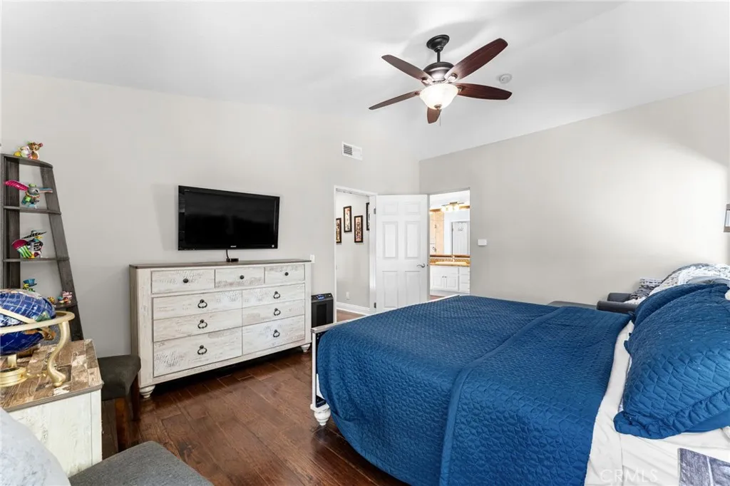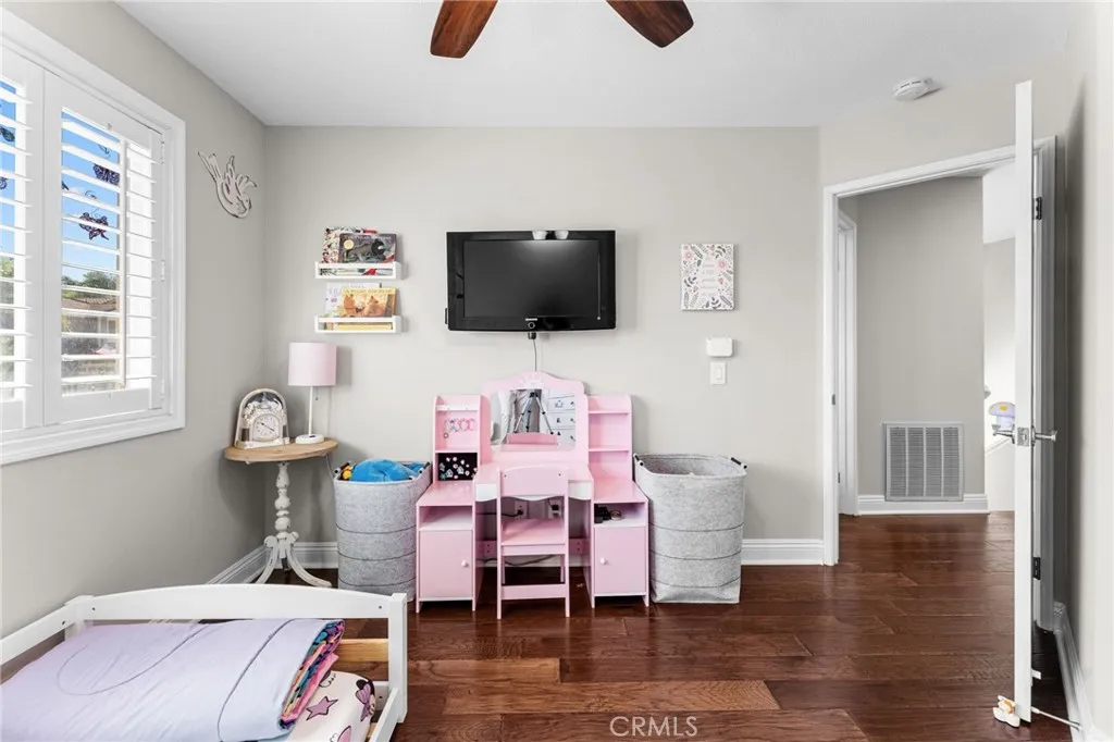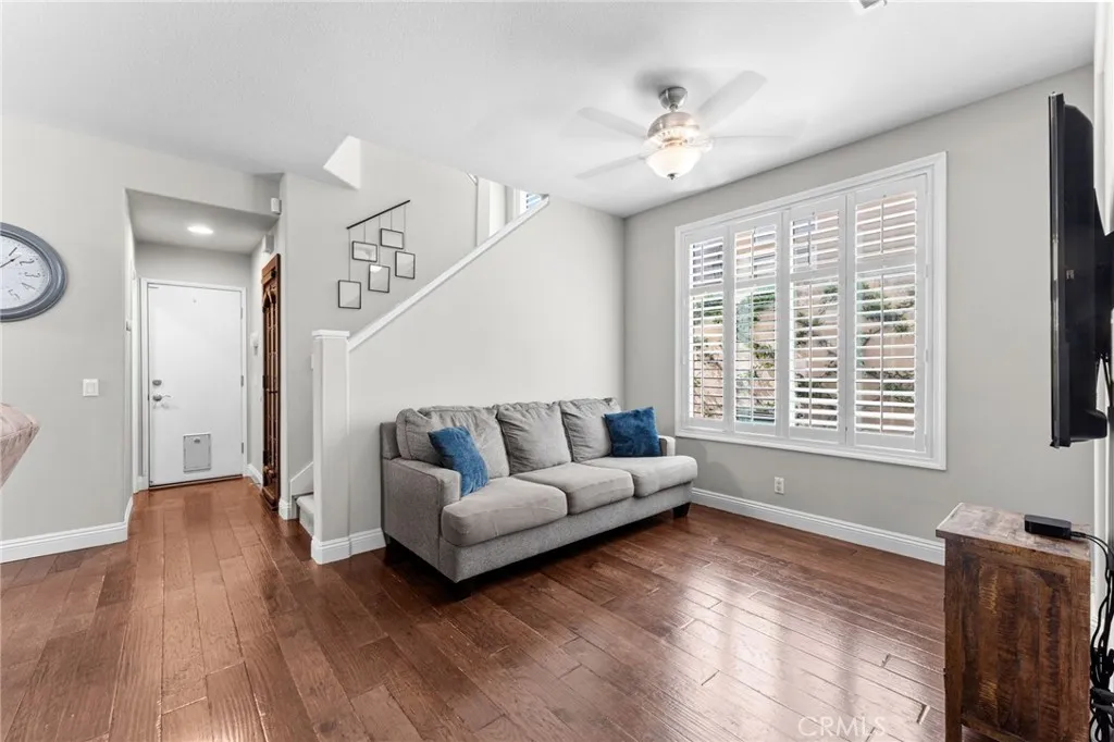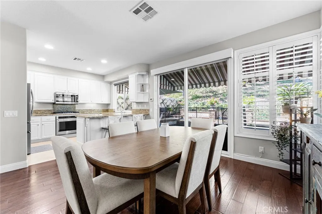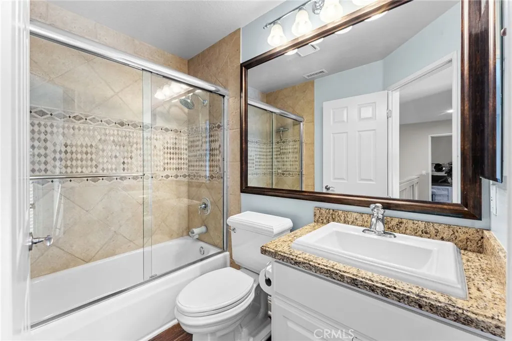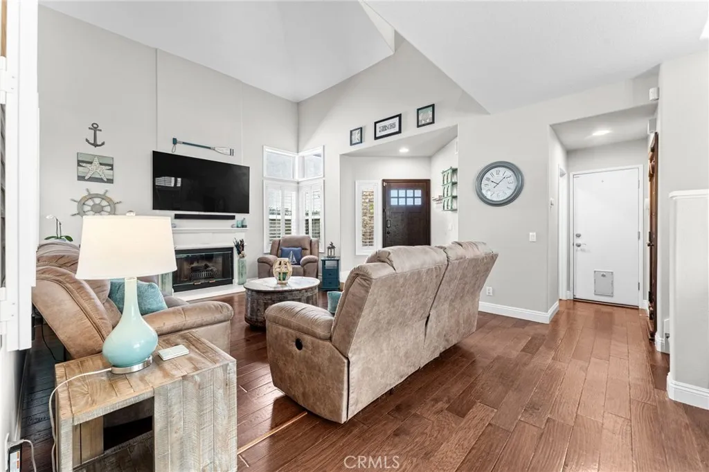 Tucked into the desirable Anaheim Hills community, this beautifully maintained three-bedroom, two and a half bathroom home blends timeless style with thoughtful upgrades and inviting indoor-outdoor living. A stained concrete driveway leads to a two-car garage, while ledgestone veneer accents and climbing vines give the exterior a warm, custom feel. Entry begins through a charming private courtyard filled with lush greenery and finished with natural rock flooring, an inviting introduction to what’s inside. Step through the front door and into a light-filled living room featuring soaring vaulted ceilings, rich hardwood floors, and a classic fireplace with mantle. Multiple windows surround the space, enhanced by plantation shutters that add both elegance and functionality. Just off the living room is a versatile open area currently used as a playroom or media space, along with a convenient downstairs guest bathroom. One of the true standout features of the home is the impressive wine cellar, designed to hold approximately 450 bottles, an unforgettable conversation piece and a dream for collectors and entertainers alike. The formal dining room flows seamlessly into the kitchen, where travertine tile flooring, granite countertops, and white shaker cabinetry create a clean, timeless look. A bar seating area opens the space for casual dining or gathering, while newer stainless steel appliances complete the kitchen. The cohesive design continues throughout the home, with matching countertops in all bathrooms. Upstairs, the primary suite offers a peaceful retreat with its own private en suite bathroom. Highlights include an oversized double vanity with a large mirror, white shaker cabinetry, a private water closet, a spa-like steam shower and a large walk in closet with built-in shelving. A second upstairs bathroom is similarly upgraded with quality finishes. Step outside to a backyard designed for both relaxation and entertaining. Enjoy sunny days by the pool with an elevated spa, enhanced with its own waterfall and fountain features! Unwind around the built-in fire pit in the evenings. The space is both functional and visually stunning, perfect for gatherings or quiet nights at home. Additional features include central heating and air conditioning, plantation shutters throughout, and a garage with epoxy flooring and ample storage.