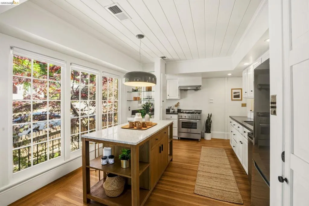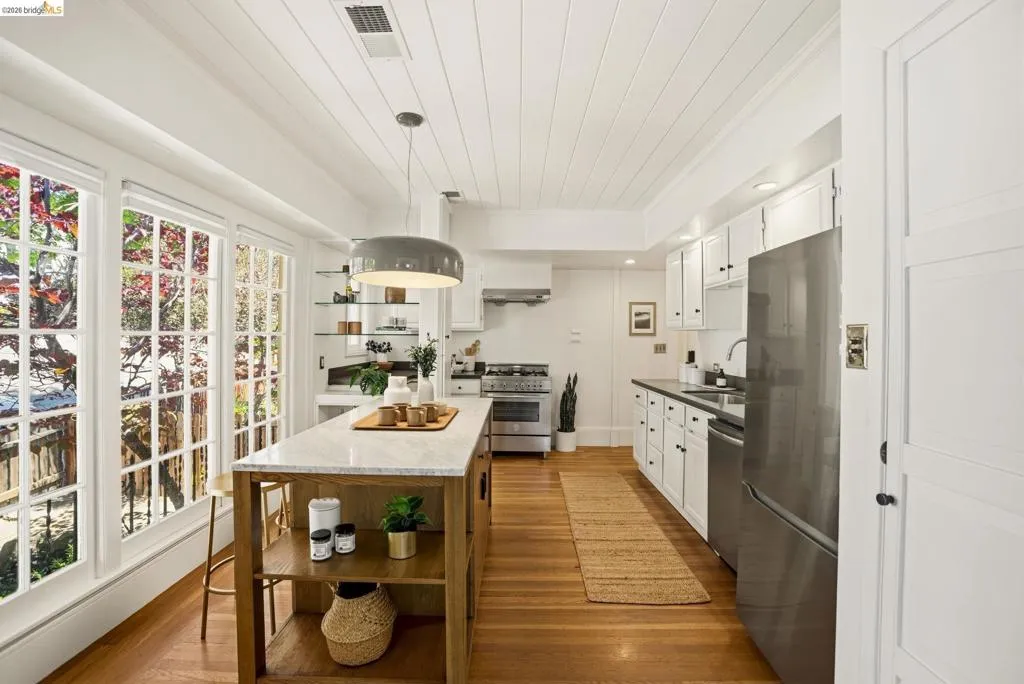 Charming Cottage in the Heart of Glenview. Tucked into the heart of Glenview, this Cozy Cottage blends classic charm w/ thoughtful updates, ideal for first time buyers or empty nesters. Updated electrical & seller owned NEM 2.0 solar panels add efficiency & long term value. Sunlight fills the home through vintage multi pane windows, creating bright, inviting spaces. The living room features a fireplace & timeless details, while the eat in kitchen stands out w/ wood clad ceilings, marble top island & Bertazzoni gas range. Designer lighting adds a modern touch throughout. The main level offers 2 bedrooms & 1 bath, maximizing comfort & livability. Below, a bonus flex space w/ separate access is ideal for a home office, gym, or creative studio. Enjoy a private patio & rare parking w/ an attached 1 car garage + 2 car side by side off street parking. Just blocks from best of Glenview including, Marzano, Bellanico, Park Burger & Paulista Brazilian Kitchen, & minutes to the Bay Bridge to SF.