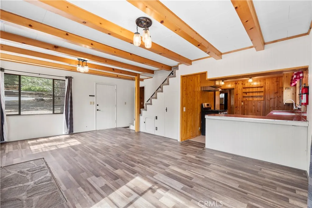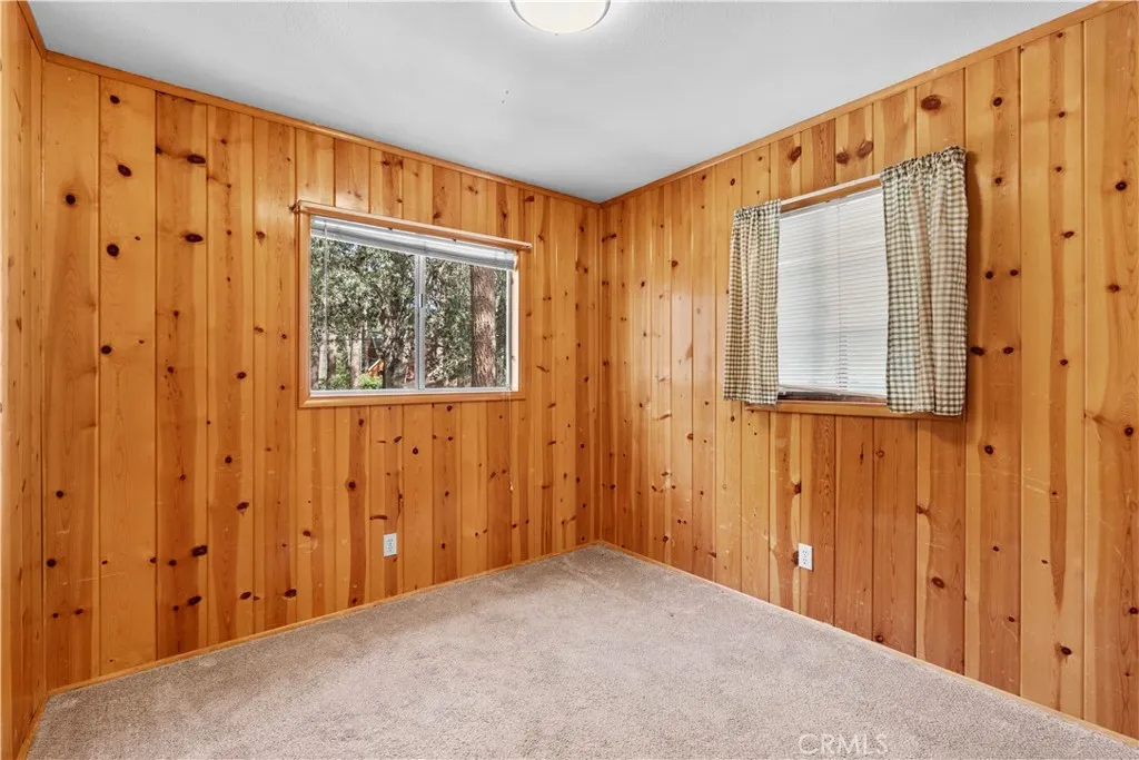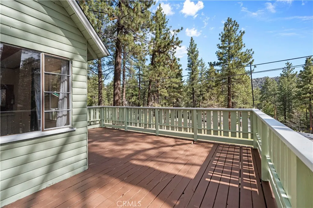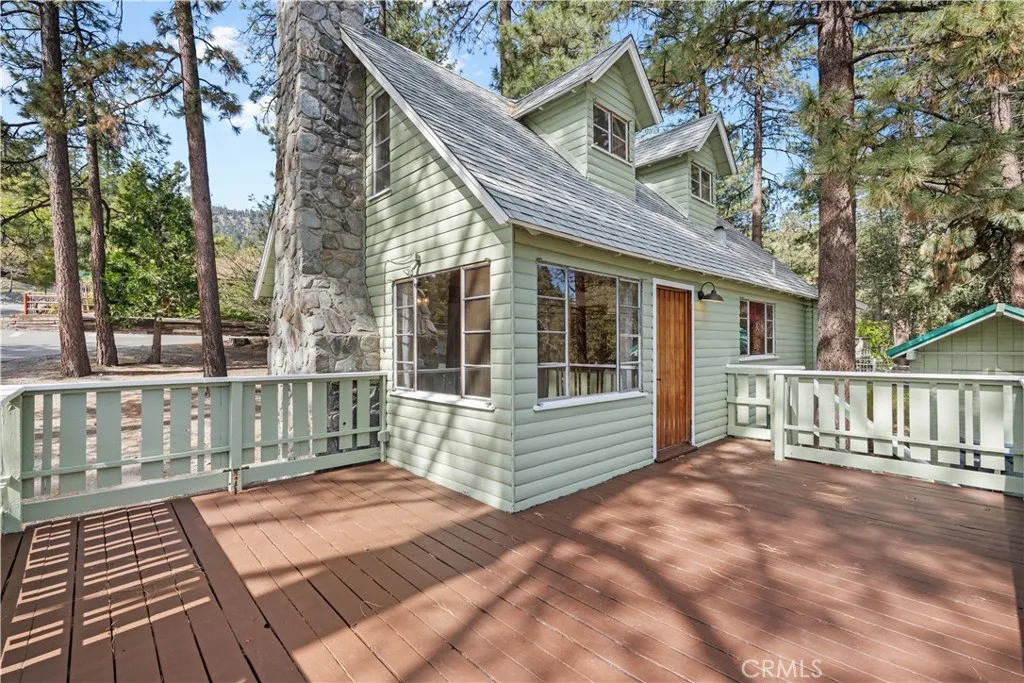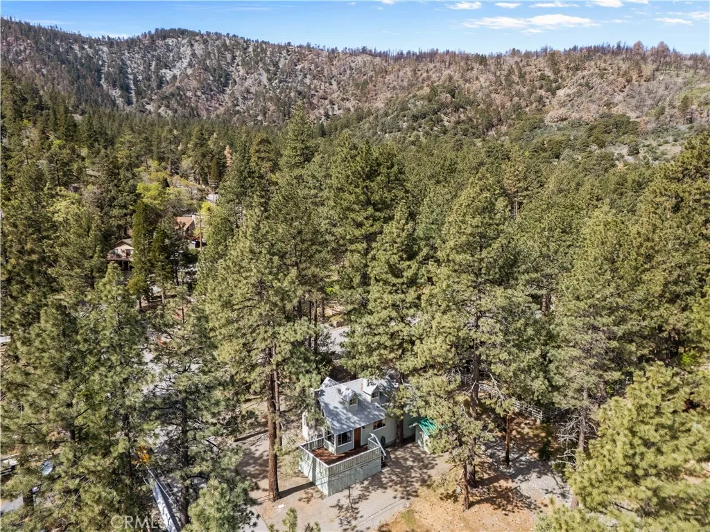 Tucked away in a true forest setting, this charming Wrightwood cabin sits on a spacious 10,000 sq. ft. wooded lot—offering the perfect blend of privacy, nature, and comfort. This custom 3-bedroom, 2-bath home features a warm and inviting open floor plan, highlighted by a classic Wrightwood stone fireplace and beautiful knotty pine throughout—creating an ideal gathering space for family and friends. Large windows facing south, north, and east fill the home with natural light and scenic views. The main level includes a primary bedroom with its own bath, a separate laundry room, and an evaporative cooling unit. The cozy kitchen opens directly to the living area, making it perfect for entertaining—whether you're cooking a quiet meal or hosting a cabin-style buffet. Upstairs, you’ll find two additional bedrooms and a full bath featuring a charming clawfoot tub/shower. A barn-style door allows you to close off the upper level for added privacy or peaceful relaxation away from the main living space. Step outside onto the spacious deck, accessible from the living room, where you can enjoy beautiful views, weekend BBQs, and serene evenings. There’s plenty of room for kids and pets to play while you take in the surrounding forest and sunset skies. Whether you’re looking for a full-time residence or a peaceful mountain retreat, this cabin offers the best of Wrightwood living.