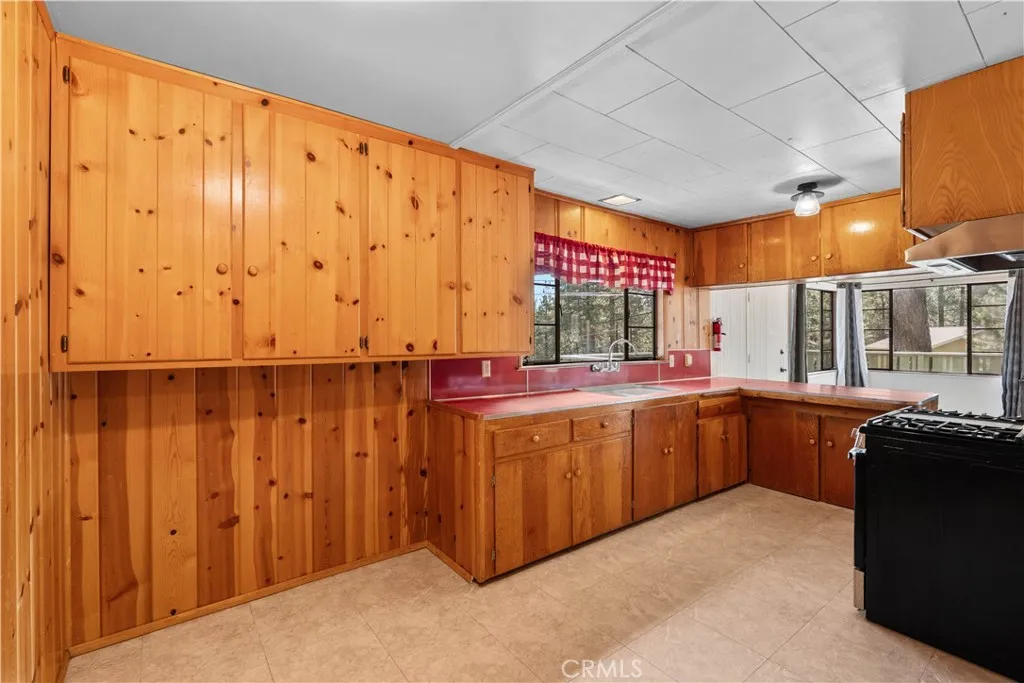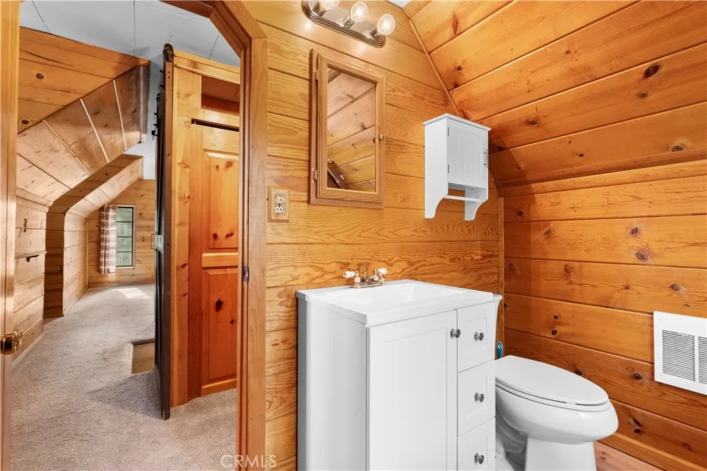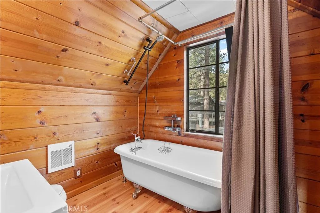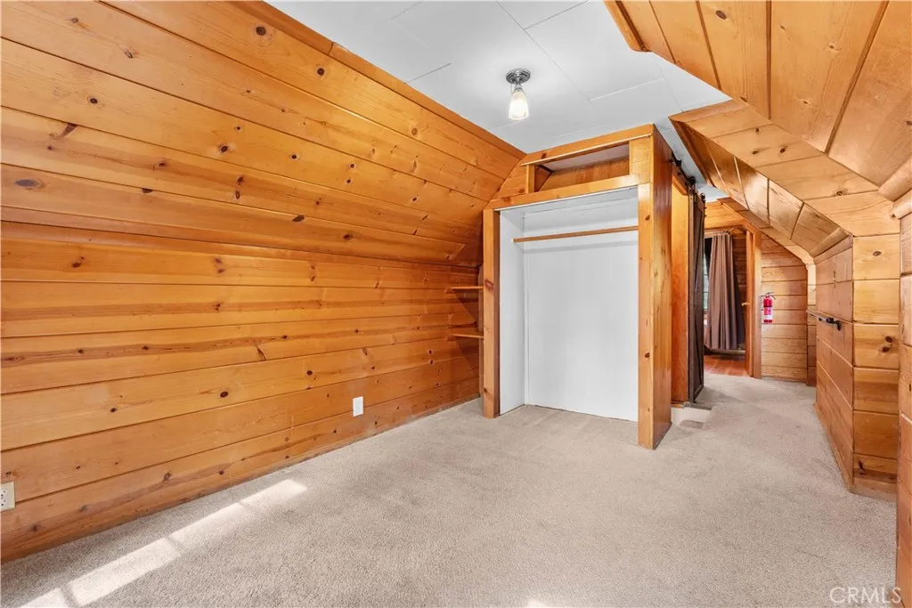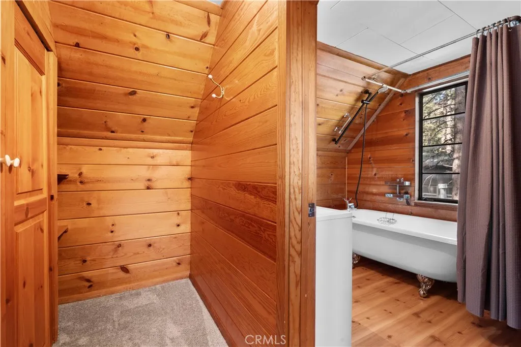 Tucked away in a true forest setting, this charming Wrightwood cabin sits on a spacious 10,000 sq. ft. wooded lot—offering the perfect blend of privacy, nature, and comfort. This custom 3-bedroom, 2-bath home features a warm and inviting open floor plan, highlighted by a classic Wrightwood stone fireplace and beautiful knotty pine throughout—creating an ideal gathering space for family and friends. Large windows facing south, north, and east fill the home with natural light and scenic views. The main level includes a primary bedroom with its own bath, a separate laundry room, and an evaporative cooling unit. The cozy kitchen opens directly to the living area, making it perfect for entertaining—whether you're cooking a quiet meal or hosting a cabin-style buffet. Upstairs, you’ll find two additional bedrooms and a full bath featuring a charming clawfoot tub/shower. A barn-style door allows you to close off the upper level for added privacy or peaceful relaxation away from the main living space. Step outside onto the spacious deck, accessible from the living room, where you can enjoy beautiful views, weekend BBQs, and serene evenings. There’s plenty of room for kids and pets to play while you take in the surrounding forest and sunset skies. Whether you’re looking for a full-time residence or a peaceful mountain retreat, this cabin offers the best of Wrightwood living.