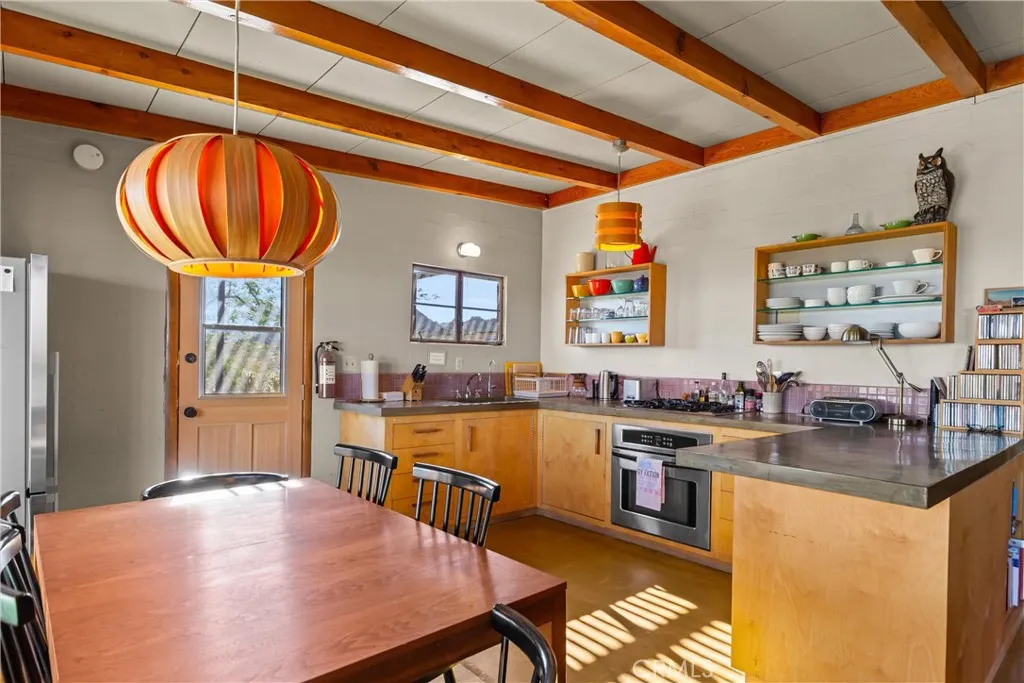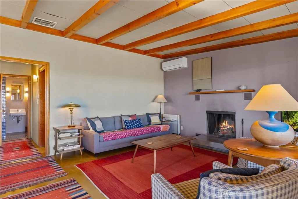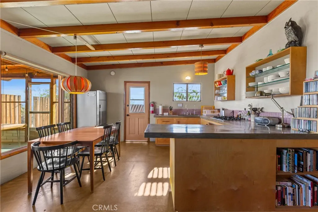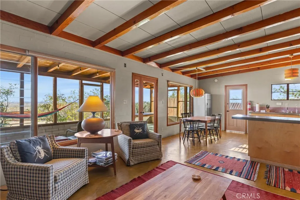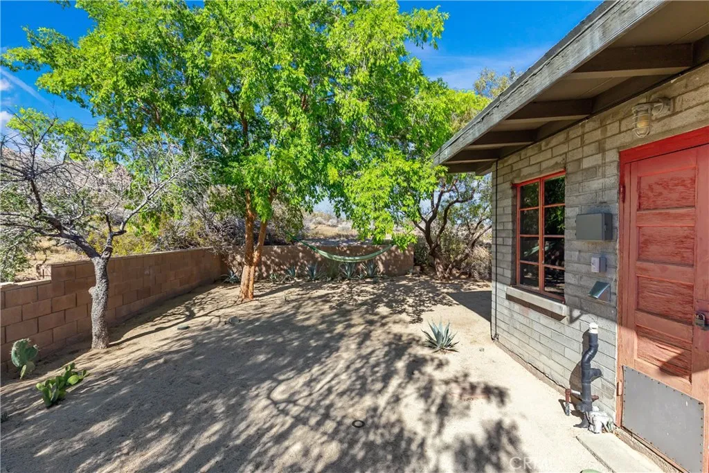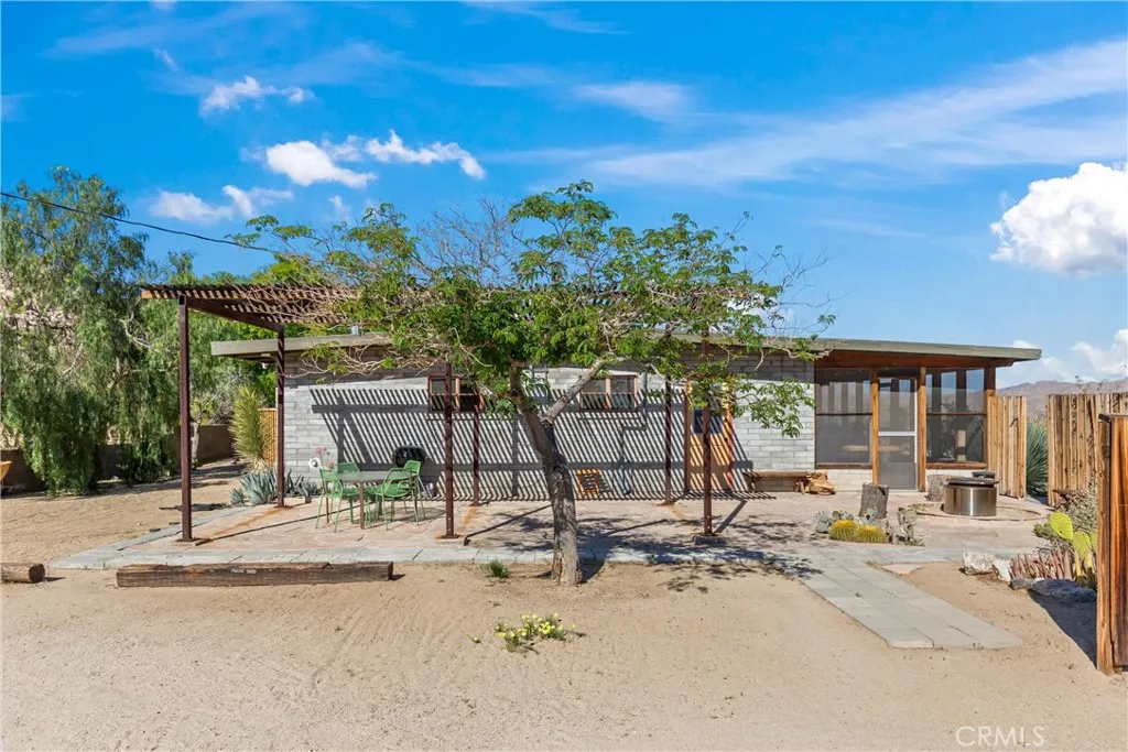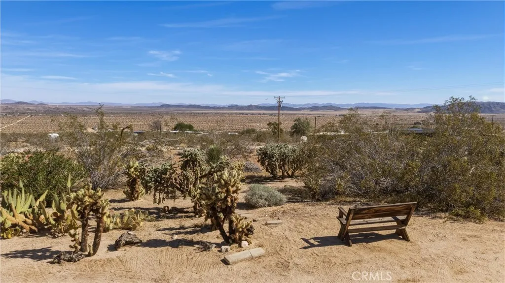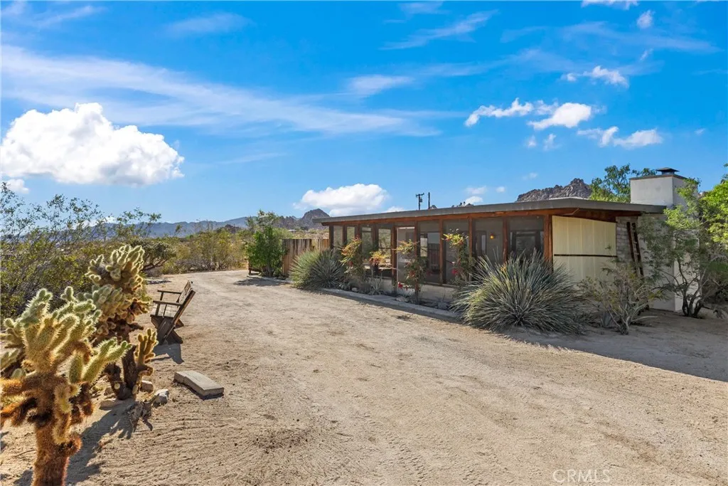 A rare offering in the highly sought-after south Joshua Tree area, this beautifully updated bungalow captures the essence of desert living with style, comfort, and unforgettable views. Set on 5 serene acres in an established and exceptionally quiet neighborhood, the property sits near the park boundary, showcasing the iconic boulder formations of Joshua Tree National Park and sweeping, unobstructed vistas stretching endlessly to the north. This thoughtfully upgraded two-bedroom, one-bath home blends classic charm with modern touches. Inside, a cozy fireplace anchors the living space, creating a warm and inviting atmosphere, while the stylish kitchen offers both functionality and design for everyday living or entertaining. A screened porch extends the living area outdoors, providing a perfect vantage point to take in the breathtaking landscape year-round. The grounds are equally compelling, with curated gardens, multiple seating areas, and a mix of covered and open-air spaces designed to embrace the desert’s natural beauty. Ideally located just outside the downtown Joshua Tree area, the home offers easy access while maintaining a sense of privacy and retreat. Whether as a full-time residence, weekend escape, or investment opportunity, this property delivers a quintessential high-desert experience in one of the region’s most desirable settings.