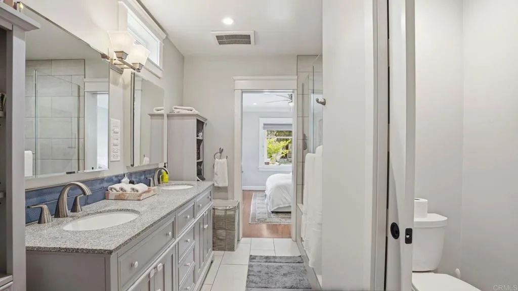 Welcome to The Patterson House, this gorgeous, rare, historically accredited, fully restored and remodeled 1915 Mission Hills gem from the Arts and Crafts movement, sits quietly in one of the finest communities in San Diego. With a family friendly neighborhood, this 4 bedroom with Loft (optional bedroom) Craftsman house is in pristine turn key condition. Original stunning deep hardwood floors, warm and cozy fireplace in great room with adjoining dining room and open floor plan letting in cool breezes and tons of natural light. Fully remodeled kitchen, gas appliances, wine fridge and storage, walk in pantry, walk in laundry, pass through buffet, spacious kitchen island, and custom crafted cabinetry. Whole house heated and air conditioning. Master bedroom, master bath with dual sinks, stone shower, private water closet, linen storage, heater/fans, and walk in closet. Proceed upstairs to 3 bedrooms and a converted bedroom/ entertainment room overlooking the city and park. Go past a stunning chandelier to plenty of light via windows, vaulted ceilings, and skylight, a large bathroom with dual sinks, private shower/tub. Quiet loft bedroom with a cozy reading nook and beautiful sunsets, and plenty of sunshine from 8 clerestory windows that open to a western ocean cool breeze. Enormous walk in attic storage with dual entry, expansive closets in each bedroom and an upstairs linen. Outside includes an open porch with an Amish crafted swing and built in speakers and fan. Porch decks, and french doors open to a stone patio with outdoor audio for morning coffee and cool evenings enjoying the fresh air or entertaining family or friends. BBQ/water hookup, in car garage with extra storage, dual electric vehicle charging, utility sink, fridge hookup, and electric scooter charging. Fully contemporary audio/data/visual wiring and wireless with Ring security setup throughout. Long driveway will accommodate 3+ cars. Landscaping with outside lighting, basic pest control and hvac maintenance services included. Nestled on a quiet cul-de-sac and just blocks from the thriving village, parks, and some of San Diego's best restaurants. Outstanding schools both private and public walking distance. Perfect for families. 10 mins from the Beach, Downtown, Balboa Park, and the Airport. In addition to the main house, there is a 1928 historic and fully refurbished ADU in the back with a 1/1 on top and studio on the bottom, with tenants that are quiet and respectful of your privacy.