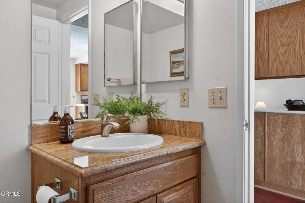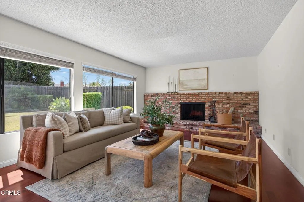 Come for the House. Stay for the Backyard... and the Way Life Feels Here. Step inside and this 4 bedroom, 2.5 bath home unfolds with a sense of openness and scale. The living and dining areas flow together beautifully, ideal for movie & game nights, celebrations, or simply enjoying the light that pours in throughout the day. Beautiful wood floors bring warmth to the lower level, while the layout feels both functional and welcoming.The kitchen is spacious, filled with sunshine, and offers a timeless feel with its wood cabinetry and upgraded appliances--comfortable as-is, with plenty of room to reimagine over time. Just beyond, the family room makes a statement: a dramatic, full-wall brick fireplace creates a cozy focal point for evenings at home. Sliding doors open to a backyard with a lush lawn and skyline of trees.Spacious, private, and park-like, this nearly 7,000 sq ft lot offers room to breathe. Behind the property, a walking and biking path quietly weaves through the neighborhood--perfect for morning coffee strolls with the dog, sunset walks, or an easy ride that connects you to Ventura's wider trail network.Upstairs, four generously sized bedrooms provide flexibility and comfort. The primary suite is especially spacious, complete with classic plantation shutters and an ensuite bath. A hallway bathroom serves the additional 3 bedrooms, while a convenient half bath is located downstairs.With approximately 2,334 sq ft of living space, air conditioning for those warm Ventura days, and a two-car garage, the home checks all the boxes--while still leaving room to make it your own.Beyond the front door, Ventura unfolds in every direction. Ideally positioned near Petit Park, Citrus Glen Elementary and neighborhood shops, with everyday conveniences just minutes away. Enjoy the Ventura Aquatic Center, Ventura's beaches and to the trailheads of Harmon Canyon Preserve--offering miles of hiking with sweeping viewsLoved and cared for by one family for decades, this is a home that offers space, light, and a connection to nature. A place to spread out, settle in, and enjoy the rhythm of Ventura living.