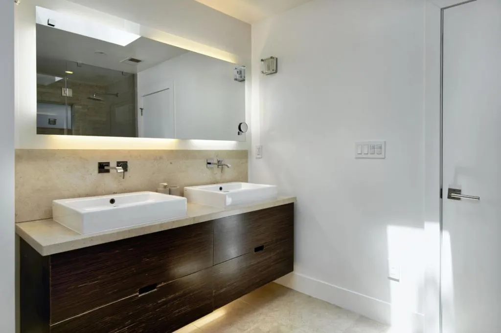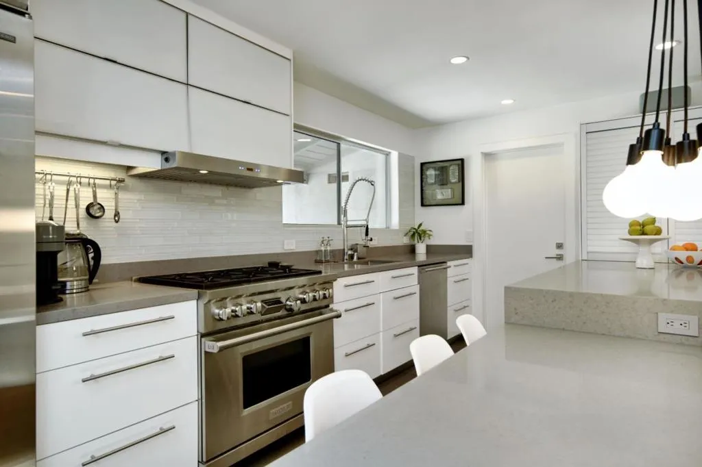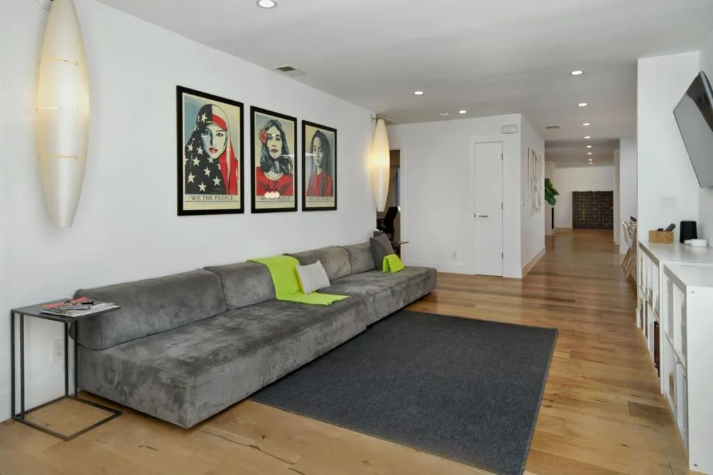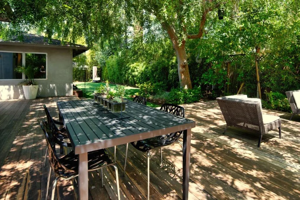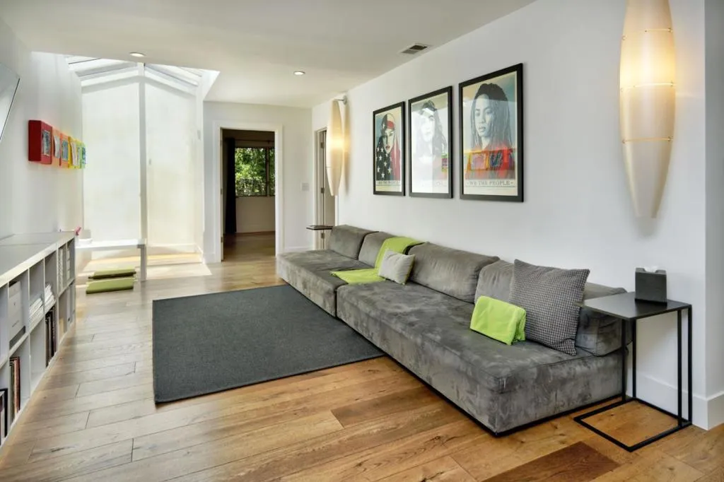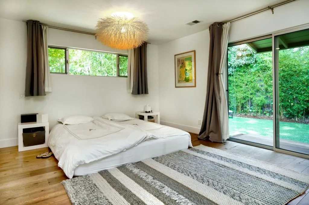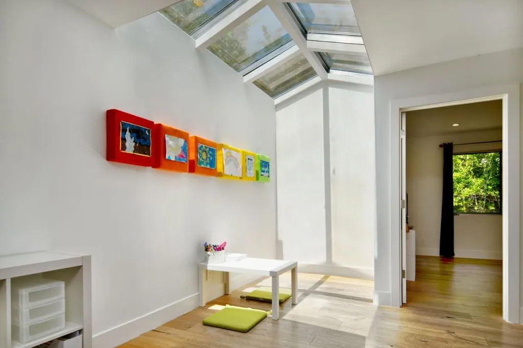 No Open Houses. Appointment only. Dramatic cedar wood concealed-hinge front door sets the contemporary tone of this five-bedroom residence. Designed to highlight clean architectural lines and abundant natural light, the home blends modern sophistication with suburban living. Open concept living and dining areas feature wideplank white oak floors, recessed lighting, built-in speakers, and a sleek dual-sided gas fireplace. Double sliding French glass doors and a 10foot living room ceiling create a seamless indoor-outdoor flow to a generous Ipe entertaining deck with built-in BBQ. The chef's kitchen offers a large island, SubZero refrigerator/freezer, Wolf gas range with integrated hood, premium dishwasher, ample cabinetry, skylight, plus adjacent pantry and mudroom with side-by-side laundry. The family room includes a reading nook beneath a six-pane skylight. The primary suite opens to the backyard and features custom closets and a spa-like bath with skylight, floating dual vanity, and a dual shower with stacked limestone walls and frameless glass door. Front and back play yards, an in-ground trampoline, and a coveted Central Menlo cul-de-sac location complete this private, walkable retreat.