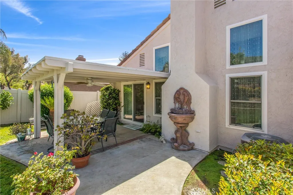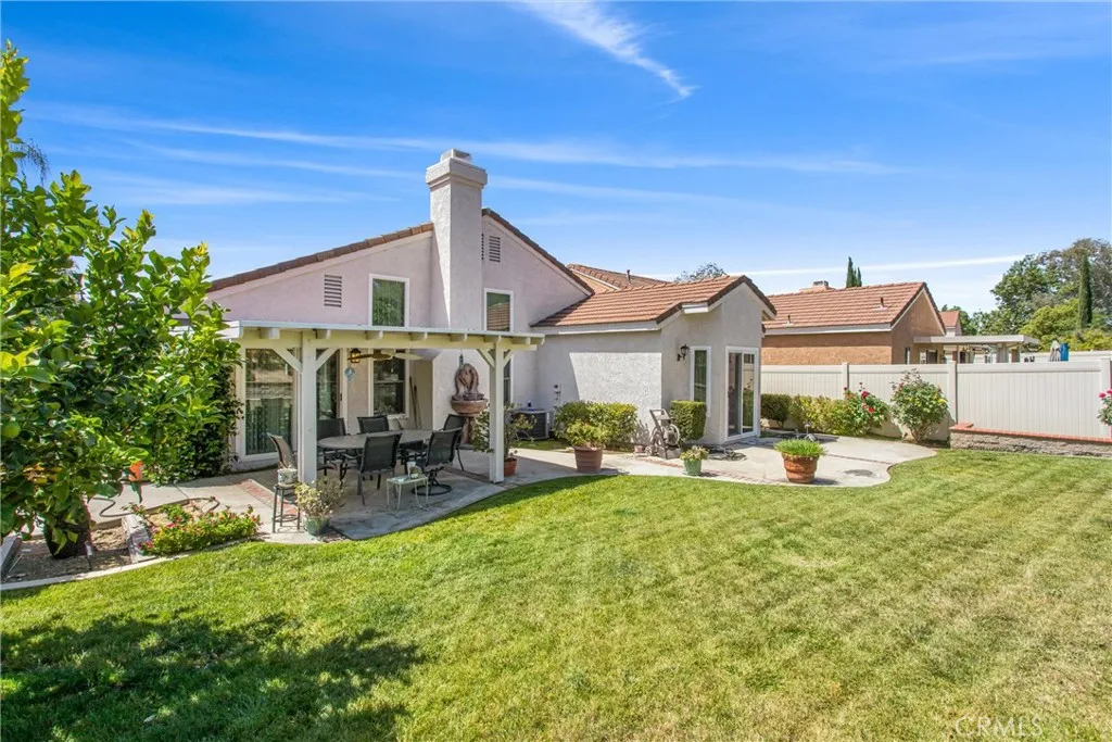 Welcome home. Nestled in the desirable East Highlands Ranch community, well maintained 3 bedroom, 2 bathroom home offers comfort, style, and convenience. Inside is a spacious living and dining area, with a fireplace, perfect for entertaining. The kitchen features modern appliances, granite counters, and a cozy breakfast nook. Outside is a beautifully landscaped backyard with a covered patio, well maintained lawn, fruit bearing trees, retaining wall, planters, wrought iron and vinyl fencing throughout —perfect for relaxing or hosting weekend barbecues. The 2-car garage features built- in cabinetries and a sink by the laundry area. Interior features include high ceiling in living room, tile flooring in key areas, granite counters in kitchen and bathrooms, renovated primary bathroom/shower, energy efficient sliding doors, ceiling fan, and mirrored closet doors. This home has easy access to East Highland Ranch amenities: pools, hiking/ walking trails, lake, picnic areas, sports courts and more. Conveniently near top-rated schools, shopping, dining and freeway access. Come and take this opportunity to make this lovely house your new home.
