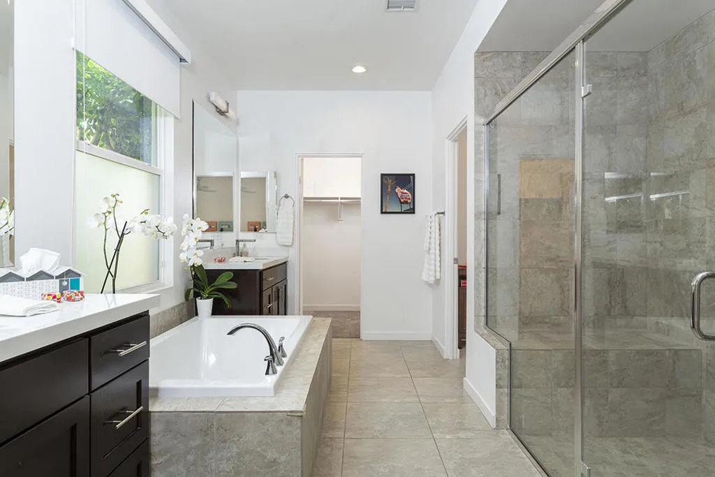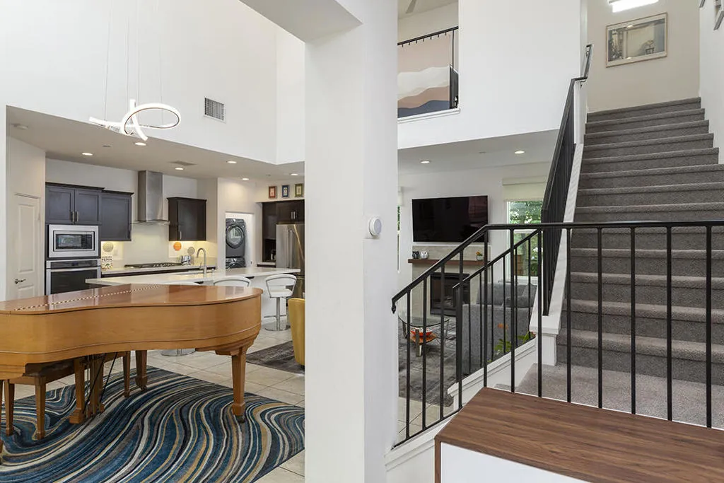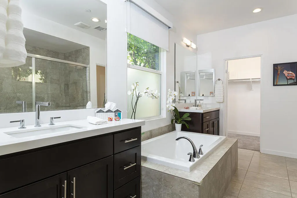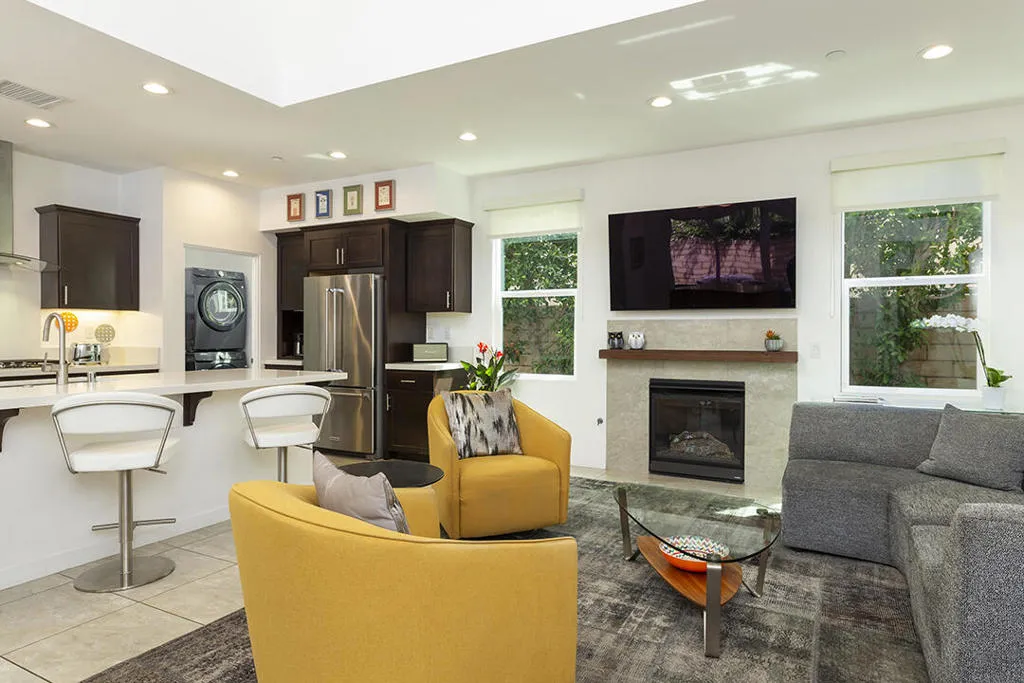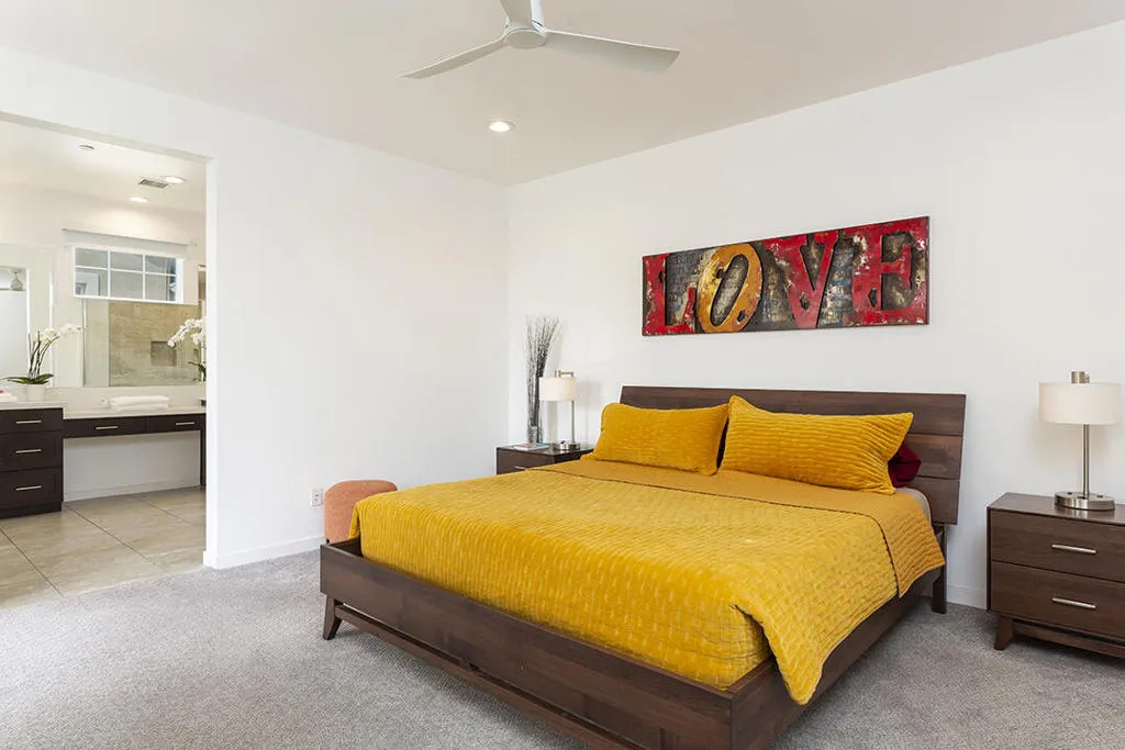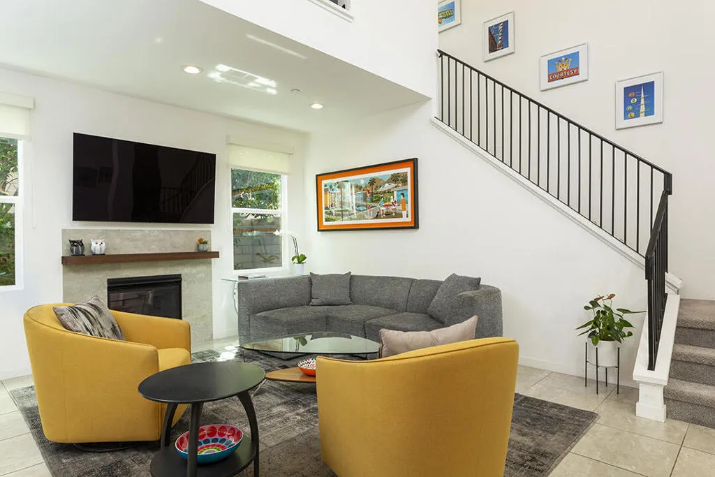 A detached 3-bedroom, 3-bath home just blocks from downtown Palm Springs for under $1 million is a rare find, and this free-standing condo in Village Traditions delivers. Blending contemporary design with traditional styling, the home features a soaring vaulted living space, dual primary suites on separate levels, and quality finishes throughout.A gated front entry leads to a private courtyard with a trellis-covered sitting area, accessible from the living room and main-floor primary suite. Inside, the open floor plan connects the living area, dining space, and chef's kitchen with prep island, while a dramatic staircase lines one wall, all beneath a two-story ceiling with upper windows that bring in natural light and mountain views.The kitchen offers dark wood cabinetry, stainless steel appliances, wine refrigerator, and granite countertops, with a nearby laundry room for convenience. The main-level primary suite opens to the entry courtyard and includes a spacious en-suite bath with soaking tub, glass-enclosed shower, dual vanities, separate water closet, and a large walk-in closet. A second bedroom and adjacent 3/4 bath on the main floor provide flexible space for guests or a home office.Upstairs, a loft overlooks the main living area, creating an ideal office or lounge. The second primary suite features two walk-in closets, dual patios with south and west mountain views, and a well-appointed en-suite bath.Village Traditions offers a clubhouse, fitness center, resort-style pool and spa, and beautifully maintained grounds with mature landscaping and a neighborhood park. Its close proximity to downtown Palm Springs makes it perfect as a full-time residence or seasonal retreat.Additional Items and Amenities Carpet replaced, bathroom fixtures and toilets upgraded, installed ceiling fans | 2021-2022 Front entry walkway and patio expanded | 2021-2022 All canister lighting was replaced with energy-efficient LED, dining room and bathroom lighting fixtures upgraded. Dimmer switches added | 2021-2022 Electric and remote shades added to upper windows, manual roller shades added upstairs in office and bathroom. | 2021-2022 Garage updates 2023 | Insulated garage door installed, epoxy floor finish, added lighting and HVAC In-line air purifier added to the main HVAC | 2023 | Air compressor upgrades in 2025 Entry courtyard pergola installed by Valley Patio | 2023, Wind cooler in 2023, W/D upgraded 2024, Dishwasher replaced 2025