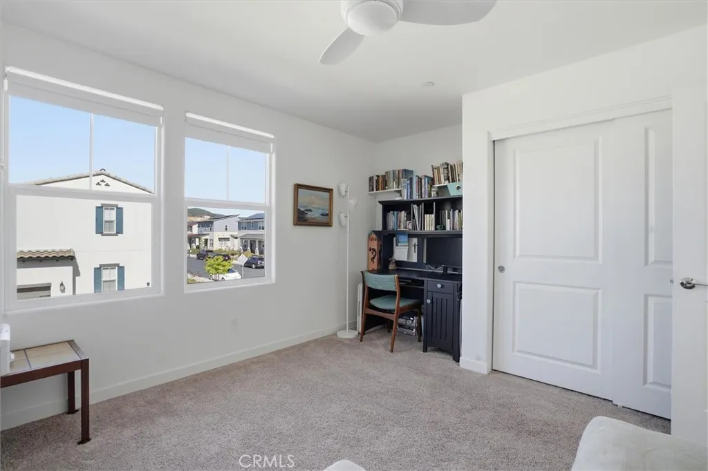 Welcome to 195 Tango Way, a standout residence in the sought-after Avila Ranch community of San Luis Obispo. Ideally situated on a premium corner lot, this beautifully upgraded Islay Plan 3 offers 1,708± square feet of thoughtfully designed living space with 3 bedrooms and 2.5 bathrooms. From the moment you arrive, you’ll appreciate the home’s elevated curb appeal, highlighted by a custom metal front gate and two fully enclosed yards—both finished with low-maintenance artificial turf, perfect for relaxing, entertaining, or pets. The upgraded two-car garage is equally impressive, featuring a Tesla car charger and additional bike storage to complement the Central Coast lifestyle. Inside, the airy open-concept main level creates a seamless flow between the great room, dining area, and kitchen. The chef-inspired kitchen is outfitted with stainless steel appliances, upgraded cabinetry, and a spacious center island with sleek quartz countertops—ideal for both everyday living and hosting. Upstairs, the primary suite serves as a peaceful retreat, complete with solar-powered, remote-controlled shades, a generous walk-in closet, and a dual-sink vanity. Enjoy beautiful views of Cerro San Luis (Madonna Peak) and the Islay hills right from your private sanctuary. All three bedrooms are equipped with remote-controlled Minka Aire ceiling fans, ensuring comfort and convenience throughout the upper level, along with a well-appointed guest bathroom. This home is loaded with thoughtful upgrades, including a water filtration system in the kitchen with reverse osmosis option, solar power, and air conditioning for enhanced efficiency and year-round comfort. Ideally located just three doors from a path leading to a toddler-friendly park, directly across from a multi-use trail, and within close proximity to three additional parks, this home offers an exceptional blend of convenience, lifestyle, and natural beauty. 195 Tango Way is a rare opportunity to enjoy modern living in one of San Luis Obispo’s most vibrant neighborhoods.