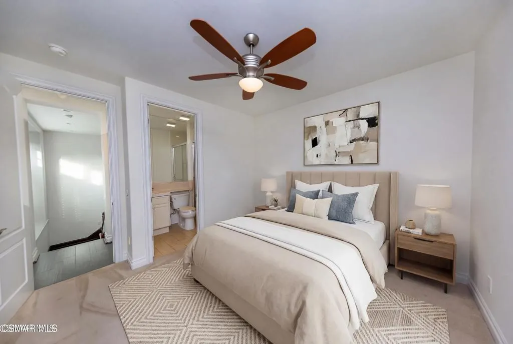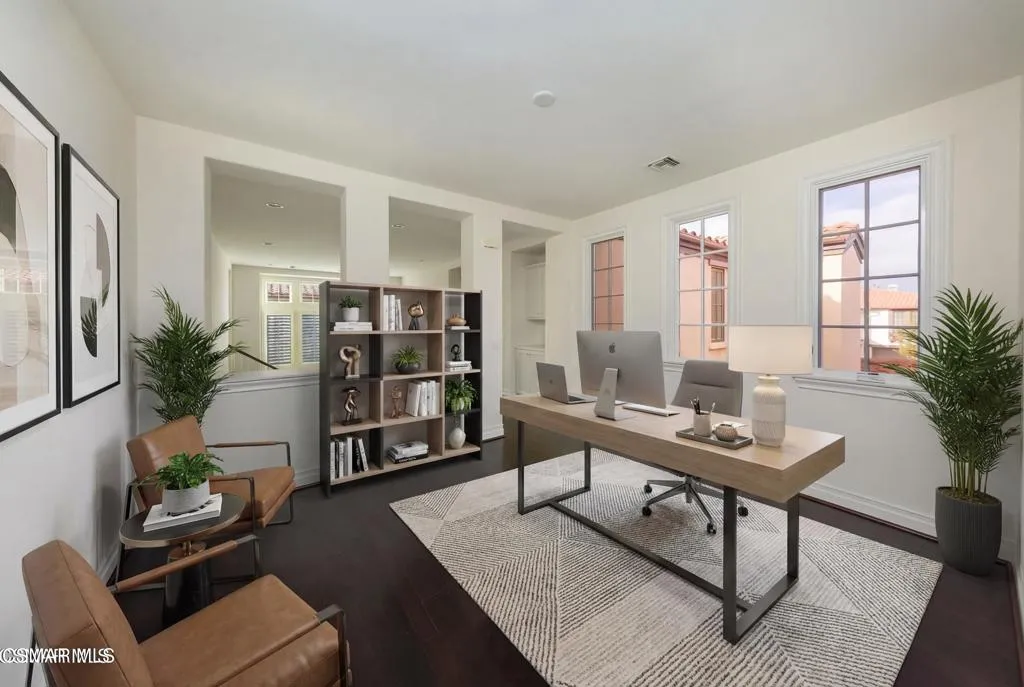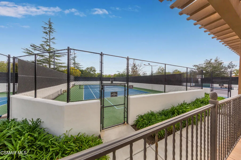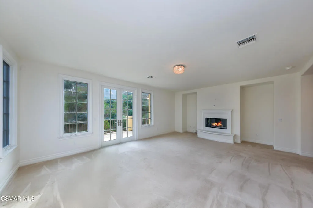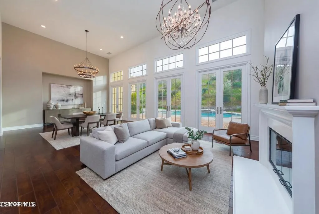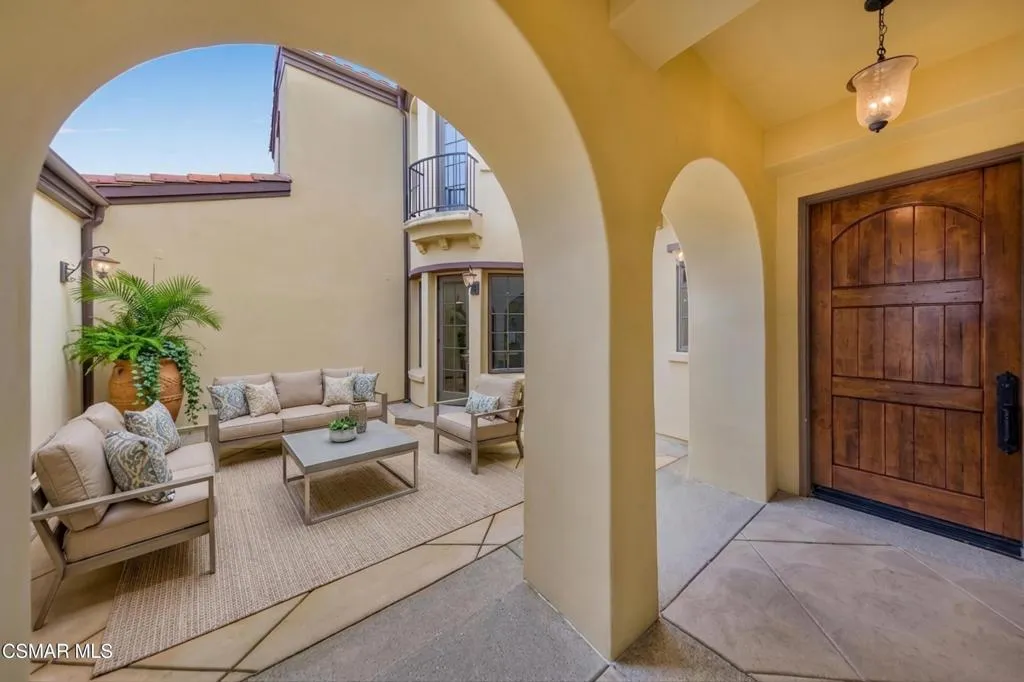 The Oaks at Calabasas is a guard gated community that redefines luxury. This home makes a strong first impression starting with the curb appeal showcasing lush and colorful landscape. Set behind a private wrought iron security gate, the sizeable open-air courtyard allows you to bask in the natural sunlight and is ideal for the 'green thumb' atrium lover. Upon entering, the main living space is a standout, with soaring ceilings, bright natural light, fireplace and French doors that span the entire length of this massive space that opens to the backyard--creating seamless indoor-outdoor living. The kitchen is both functional and inviting, featuring generous counter space, a large center island, stainless steel appliances, walk-in pantry, ample storage and opens to the family room with a cozy fireplace. Every room facing the backyard has access to the outdoors and every bedroom has its own private bathroom. A desirable downstairs bedroom offers added flexibility for guests, multi-generational living or a private home office. Enjoy a spacious media room with French doors opening to the front patio and the front courtyard, providing a flexible secondary living space. Take the bifurcated staircase with rich wood detailing and crisp white balusters up to the second floor. The second story has a thoughtful layout with 'one-bedroom split' offering privacy and versatility. The dedicated hallway introduces the laundry room(featuring plenty of storage, counter space, and a utility sink) in addition to two well-spaced bedrooms. Located off the upper-level landing, a loft serves as a transition space to the fireside primary suite--an inviting retreat featuring a private balcony, a charming turret (perfect for natural light while getting ready or as a reading nook), a spacious bath, and an impressive walk-in closet. The backyard is designed for both entertaining and everyday enjoyment, featuring a sparkling pool and spa, generous patio space, multiple areas to relax or gather, and a mature lemon tree adding charm and a touch of garden-to-table living.'