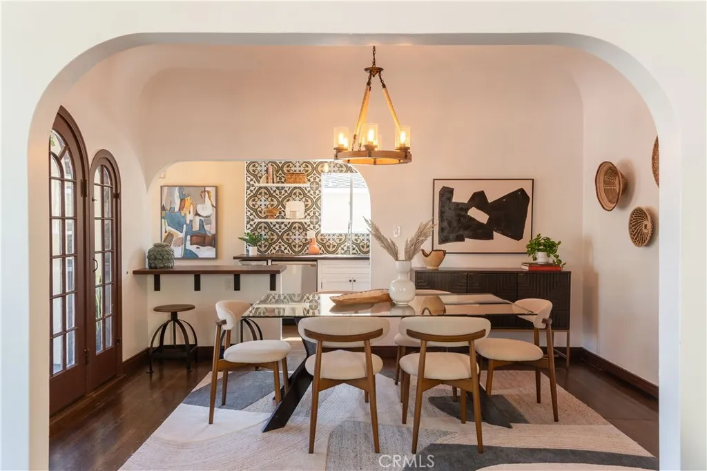 DESIGNER PERFECT SPANISH COMPOUND - HUGE DETACHED GUEST RETREAT WITH PRIVATE ENTRANCE/PARKING. LAYERED ENTERTAINING ZONES. ABBOT KINNEY ADJACENT Scarcely does a fully restored architectural Spanish compound of this caliber come to market, offering a rare combination of authenticity, design, and flexible living. Completely reimagined from the roof down, the main residence preserves its original character, while introducing elevated finishes and craftsmanship rarely found in homes of this era. All this only steps from Abbot Kinney, yet tucked into the quiet and highly sought-after Golden Triangle, where larger lots and easy parking are the norm. A lush, private courtyard anchored by a cascading bougainvillea draping the portico sets the tone—leading to a series of curated indoor–outdoor environments, including a curtained dining pavilion, a tranquil lounge with fountain, firepit, and ambient string lighting—all creating a layered living experience that extends well beyond the interior. Inside, soaring coved ceilings and a bright, open, airy flow—without typical hallway constraints—expands one's sense of space and livability. Rich espresso oak flooring, hand-troweled plaster walls, imported Spanish tile, bespoke vanities sourced from Mexico for authenticity, and hand-blown glass lighting fixtures define the interiors. The chef’s kitchen is both functional and refined, featuring stainless steel appliances and thoughtful detailing throughout. At the rear, a detached architectural retreat offers a completely separate living or entertaining hub, featuring dramatic two-story volume, lofted sleeping area, fireplace, and a beautifully designed kitchen and large open space. French doors open to the twinkle-lit firepit area-perfect for enjoying cool coastal evenings under the stars. With its own private entry and dedicated parking, this space provides exceptional flexibility for guests, creative use, or extended living. Additional finished space includes an approximately 250sf wine cellar or simply additional storage. Set on a 4,040 sq ft lot and located within close proximity to the campus at Playa Vista, LAX and the freeway, the property offers both convenience and a distinctly quiet/private lifestyle. A rare opportunity to own a fully realized Spanish compound—thoughtfully restored, beautifully designed, and uniquely suited for modern Venice living.
