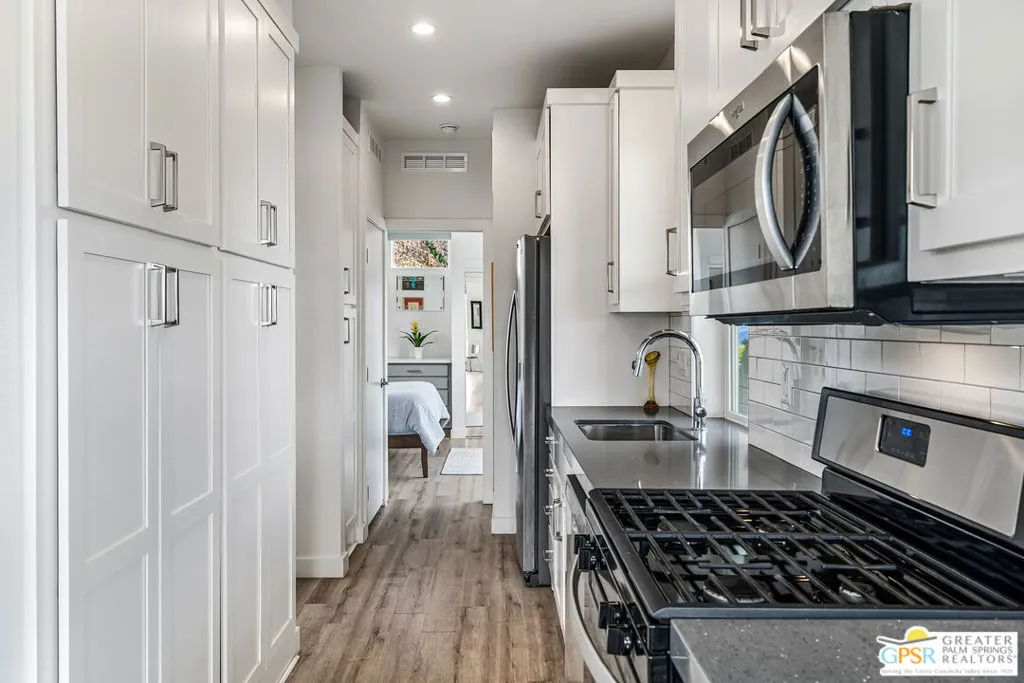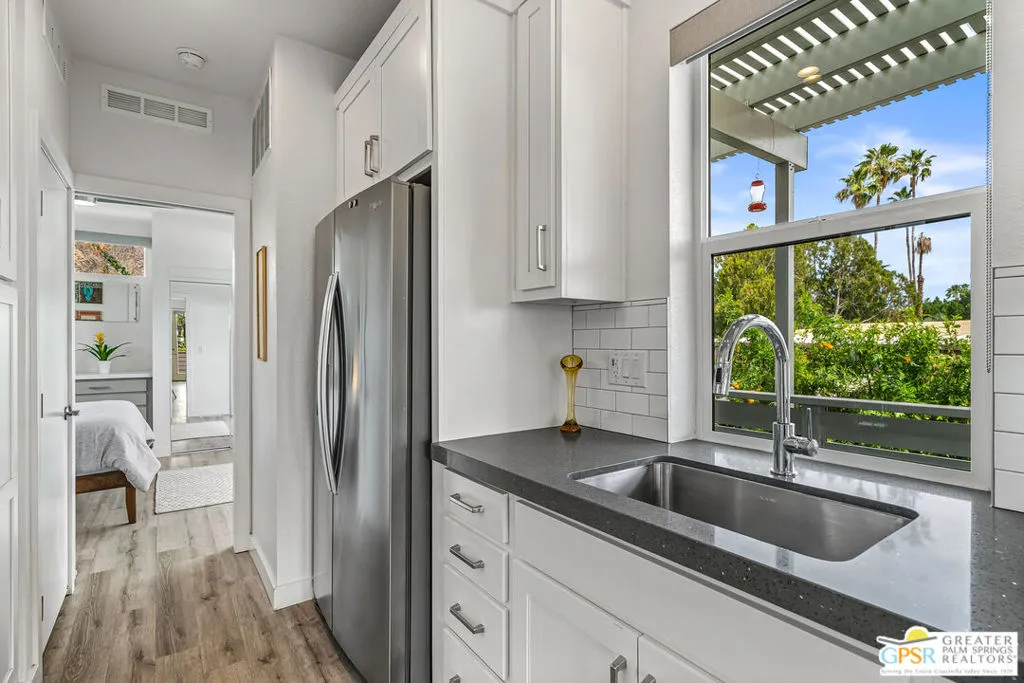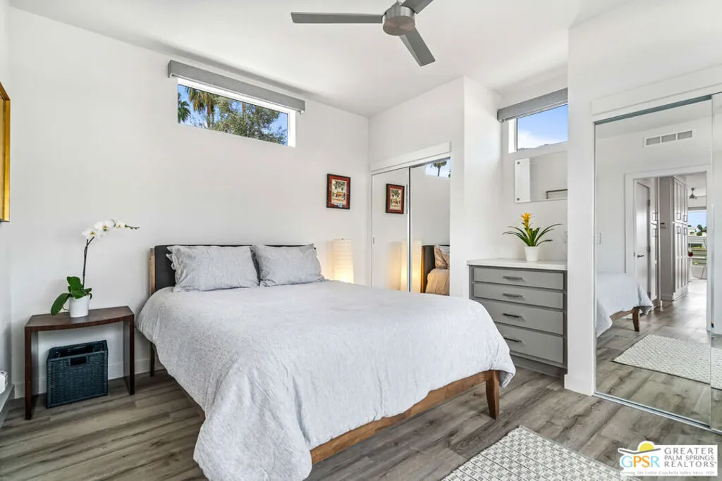 This contemporary move in ready manufactured home was built in 2021 and is waiting for your arrival. Desirable South Palm Springs location at the Palm Canyon Mobil Club. Enjoy Resort style living in this premier community. Seamless indoor / outdoor living in this quality home with sliding glass doors to the large deck and lush landscaping with an automatic irrigation system. Beautiful Mountain views to the west and east. Ginger has nine foot ceilings, a modern kitchen, walk in shower, blinds and clerestory windows for natural light. There is a new storage shed on a concrete pad and a two car tandem carport. This sweet getaway or permanent home has an Owned Solar System. The park includes a clubhouse, fitness center, heated pool and spa, BBQ area, fire pit and two dog parks. Close to shopping, restaurants, hiking and all the lifestyle perks Palm Springs has to offer. Step into a this beautiful, gated, sought after community and enjoy Palm Springs living.