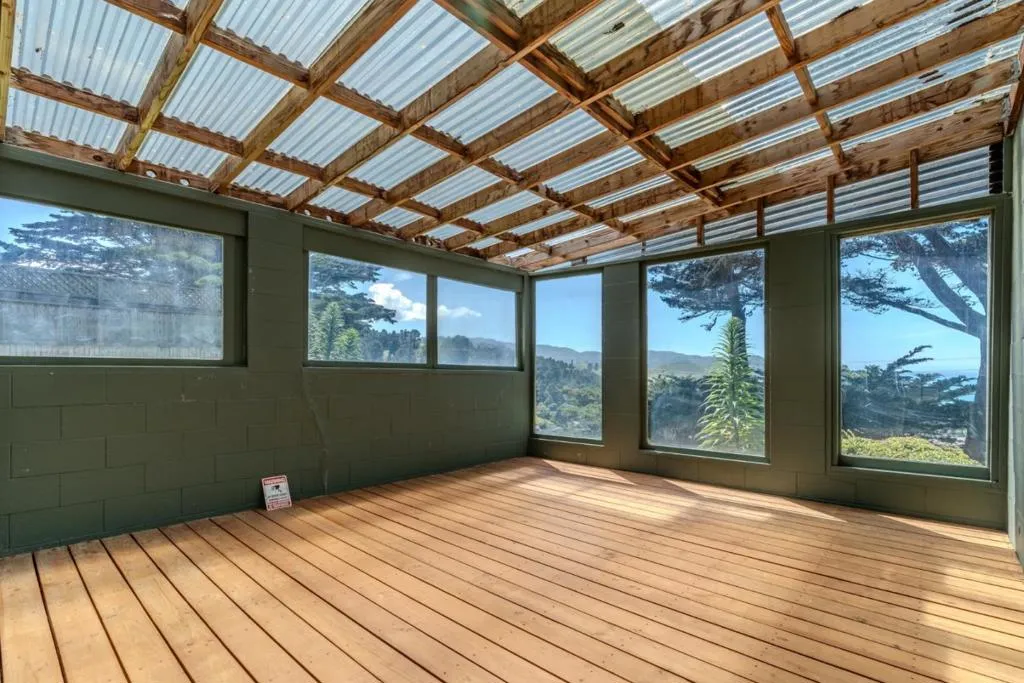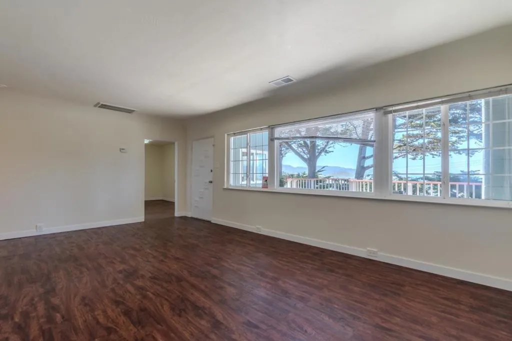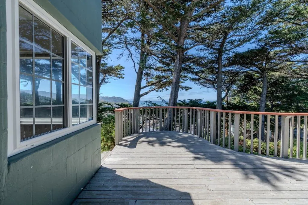 Ocean View Home for rent. Set up high in Sharp Park at the corner of Talbot and Griffin. Woodsy setting. Flat usable yard. Large driveway and 2 car garage. Updated kitchen and 2 full baths. Laundry inside the house. 2 Bedrooms. There is a third room that could be used as a large bedroom, family room or office. Off of this room is a enclosed sun room facing the ocean.
