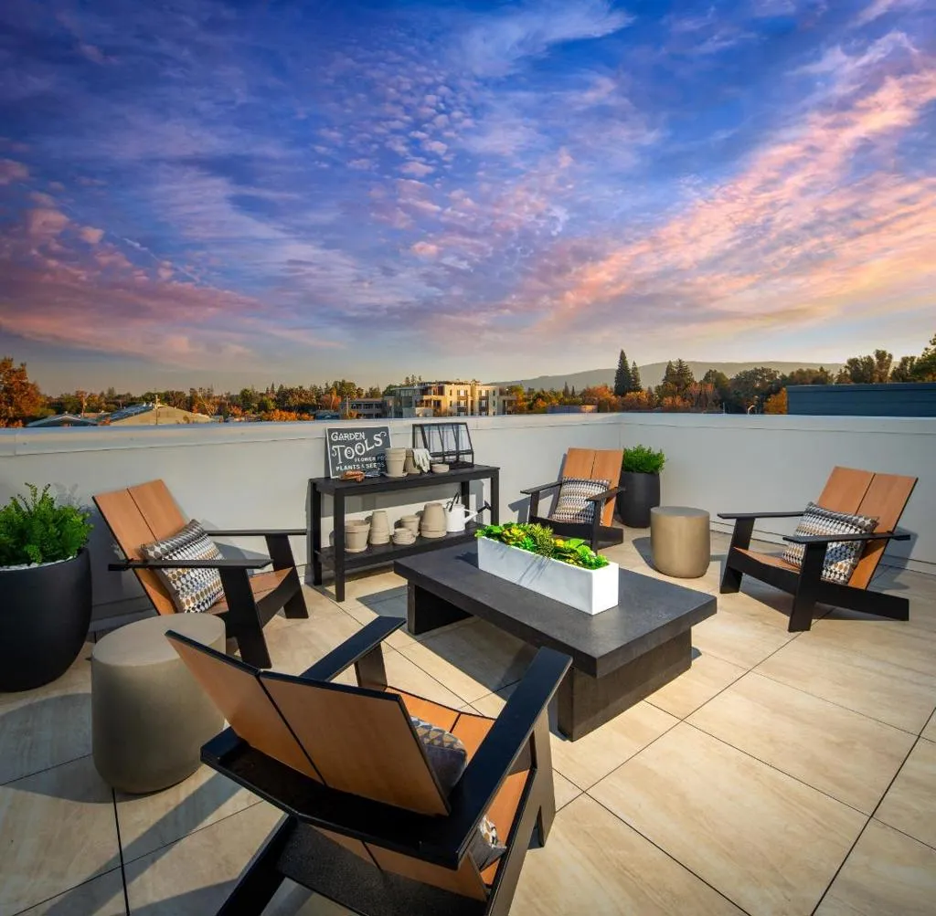 Homesite 1, Plan 4 at Acacia by Dividend Homes Desirable corner homesite featuring Plan 4 with 3 bedrooms + den and 2.5 baths, offering approx. 1,9782,040 sq ft. Bright, open-concept living with a spacious kitchen, large island, quartz countertops, pantry, and premium all-electric appliances. Upper level includes a private primary suite with walk-in closet, plus two additional bedrooms. Ground-level den provides flexible space for office or gym. Expansive rooftop deck (approx. 283345 sq ft) ideal for outdoor living and entertaining. Features include 2-car garage, solar, EV prewire, smart home system, and energy-efficient design. Located in Palo Alto Unified School District near parks, shopping, and major commute routes.