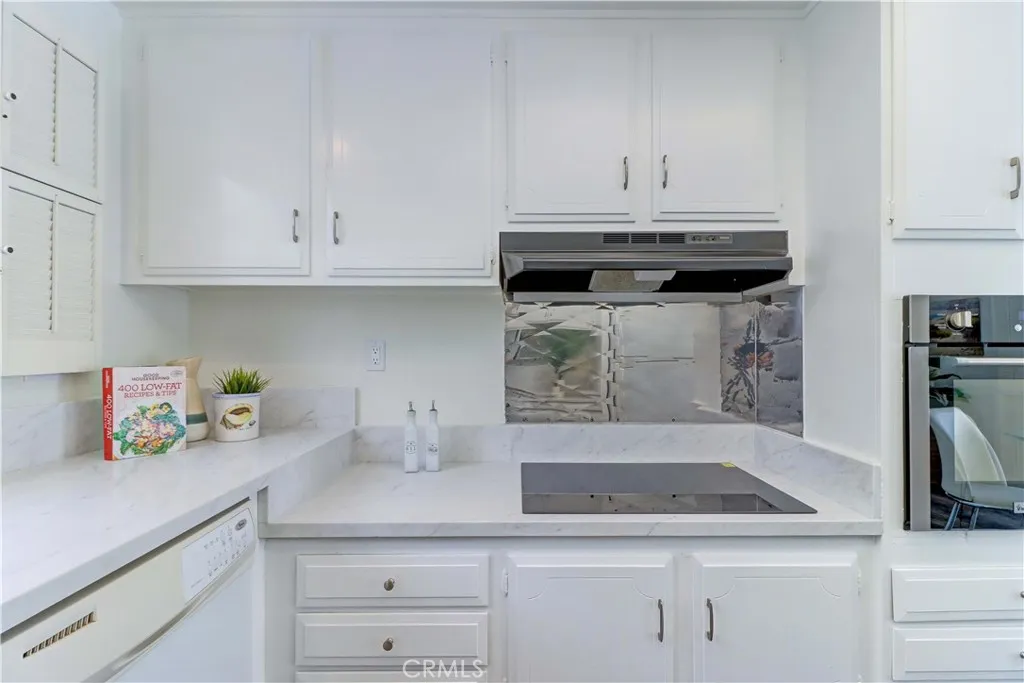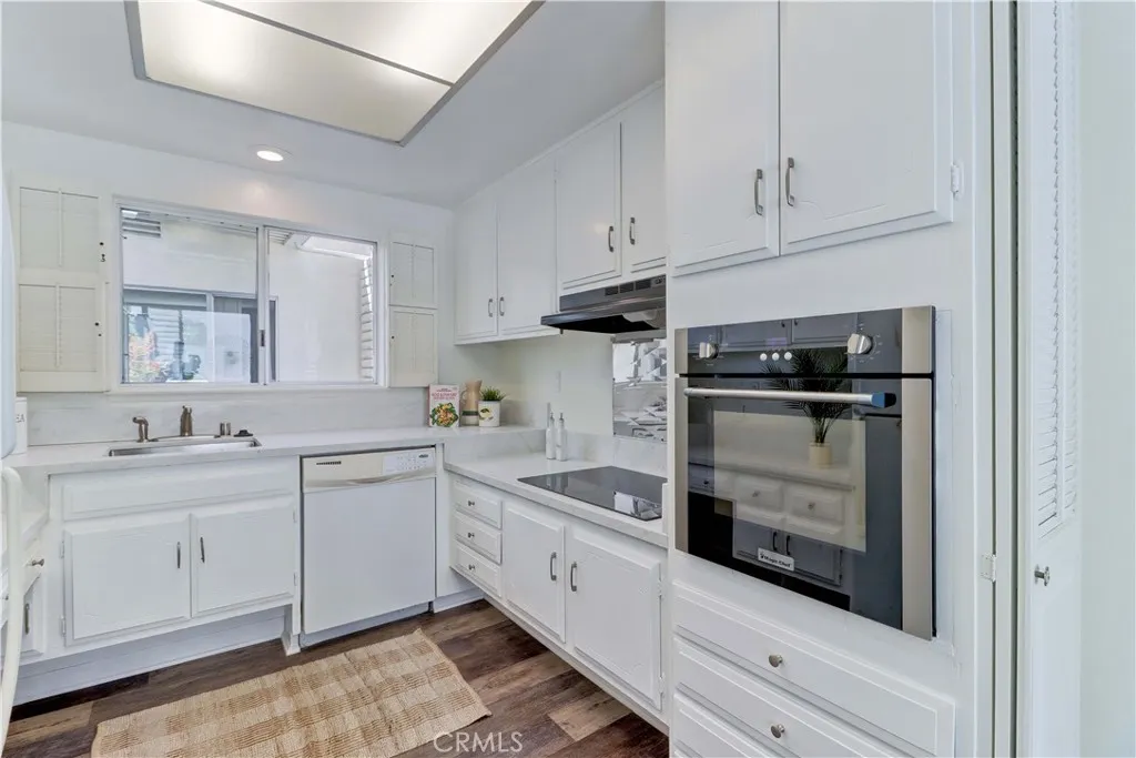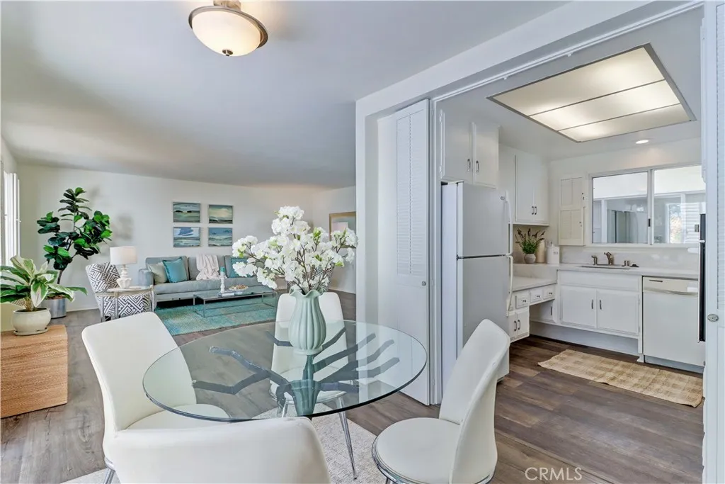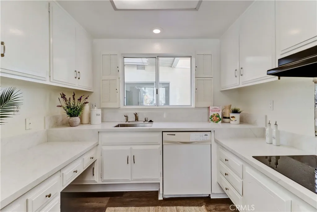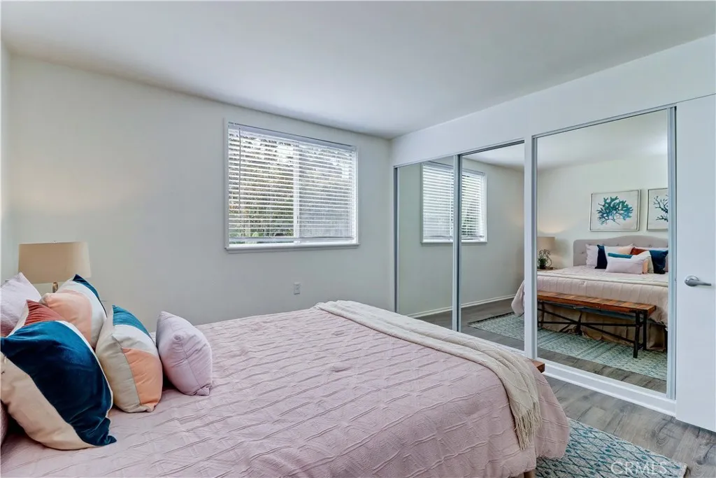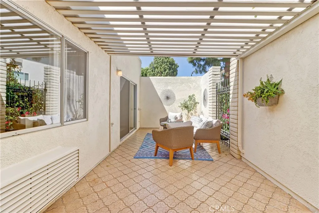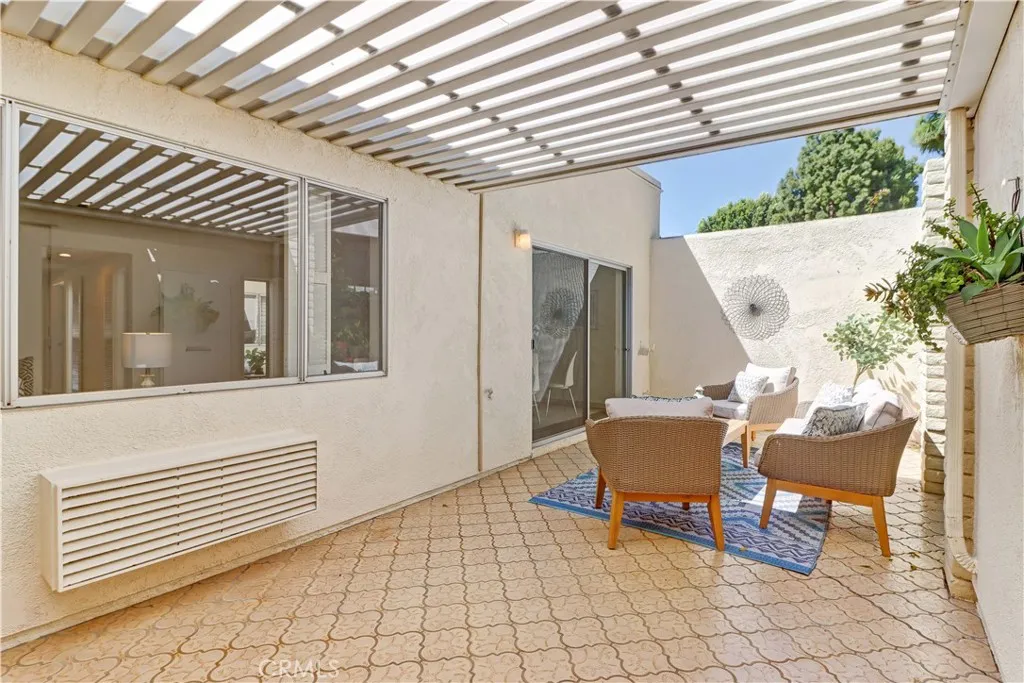2BD/2BA updated, end unit "Cordoba" CONDO conveniently located in a quiet area on the western side of Gate 5/6 with easy access to the gates and Clubhouse 4 - the arts and crafts center of Laguna Woods with its own pool/spa. This is one of the largest single level cottage-type floorplans with room to expand into 2 patio areas. Enter through the partially covered front patio with rod iron gate. Interior features smooth ceilings, laminate flooring, fresh paint and shutters on most windows. Spacious living room and adjacent dining area lead out to the large, partially covered back patio with nice sized storage closets - plenty of room for outdoor living, gardening bench and BBQ. Living/dining and kitchen windows all face onto private patios so no neighbors walking by. Back inside, the kitchen has brand new quartz counters and window that looks out to the front patio area. 2 remodeled bathrooms with newer vanities and fixtures. Guest bathroom has tub/shower combo with tiled surround and curved glass enclosure. Primary bath houses tiled walk-in shower. 2 good sized bedrooms with lots of closet space behind the mirrored closet doors and west-facing windows for afternoon sun. The primary bedroom also has a window facing into the front patio. Comfortable home with space to spread out plus 2 patios! Carport and guest parking right in front. Residents enjoy access to an unparalleled array of amenities, including championship and executive golf courses, multiple swimming pools, fitness centers, pickleball and tennis courts, lawn bowling, equestrian facilities, gardening centers, art studios, computer labs, classes, and over 200 clubs and social organizations. See Virtual walk-through tour!