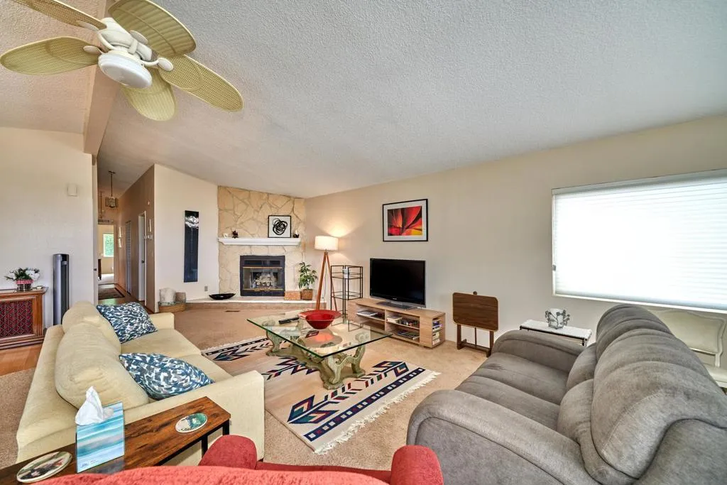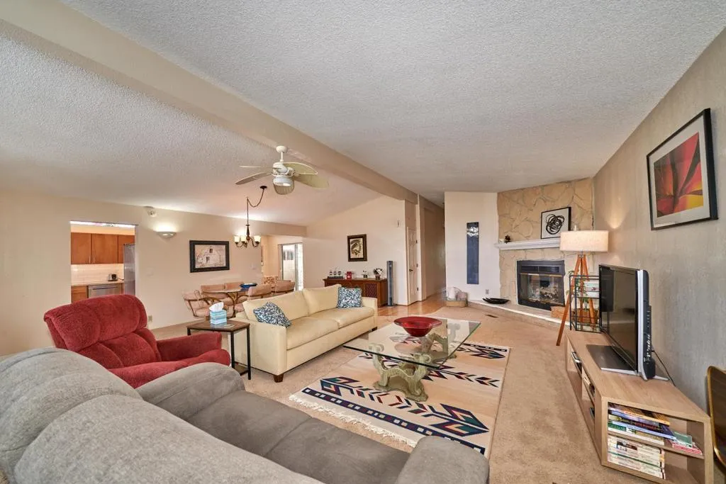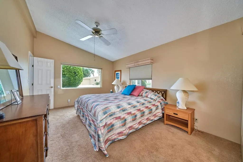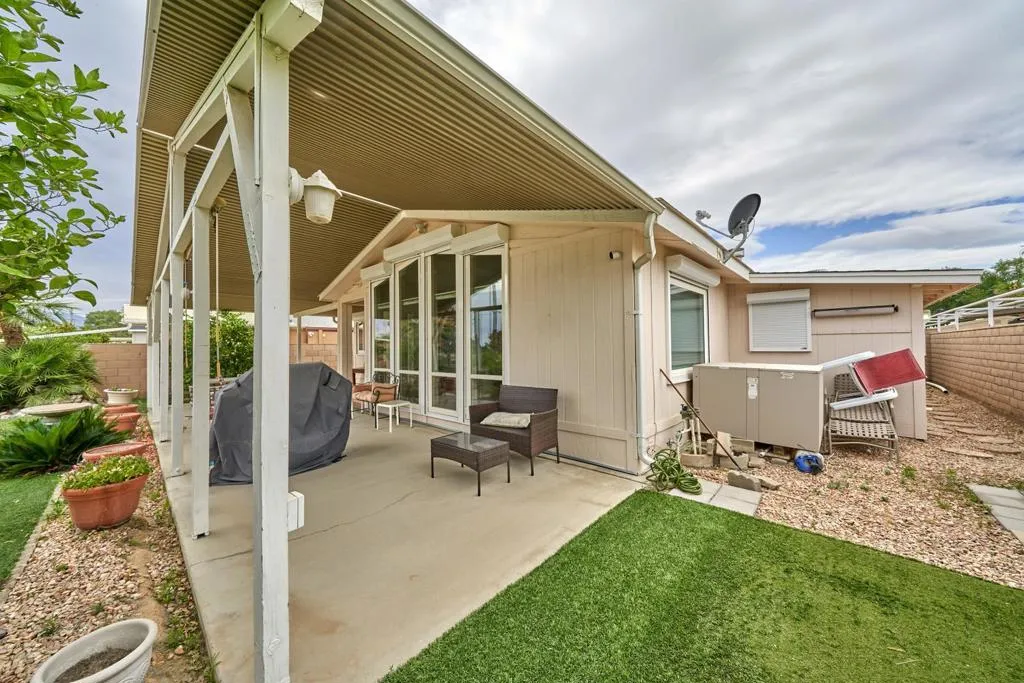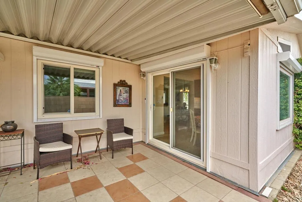 Contemporary, updated golf course home in Tri Palm Estates & Country Club! Perfectly positioned on the 6th fairway of the 18-hole course, this spacious newer triple-wide home offers stunning panoramic mountain and fairway views from its prime location on quiet Bell Rd in one of the community's newest sections. Inside, you'll find a bright, open ''great room'' layout with vaulted ceilings and expansive picture windows that capture the scenery. The inviting living area features a cozy gas fireplace with a stone hearth, while the updated kitchen showcases quartz countertops, newer cabinetry, and stainless steel appliances--ideal for both everyday living and entertaining. This home offers 3 bedrooms, 2 beautifully remodeled bathrooms with step-in showers, plus a versatile bonus room perfect for an office, hobby space, or guest overflow. Updated flooring throughout includes luxury vinyl plank and carpet. Additional features include central vacuum and electric security shutters on all windows. Enjoy outdoor living on the wrap-around covered deck, perfect for relaxing or hosting guests. Covered parking includes two carports, one with secure gated space for your golf cart. And the best part? THIS HOME MAY QUALIFY FOR THE INSTALLATION OF THE PERMANENT FOUNDATION AND FORM 433A REQUIRED BY MOST LENDERS FOR EASE OF FINANCING!Located in Tri Palm Estates & Country Club, a vibrant 55+ community where you own the land. Ownership includes unlimited golf for two on both the 18-hole and 9-hole courses, plus access to pools, spas, tennis, pickleball, shuffleboard, clubhouse, restaurant, and more. Conveniently located near shopping, dining, entertainment, and medical facilities, with easy access to I-10 and just minutes from Rancho Mirage, Palm Desert, and Palm Springs. Don't miss this opportunity--schedule your private showing today and start enjoying the desert lifestyle at its finest!