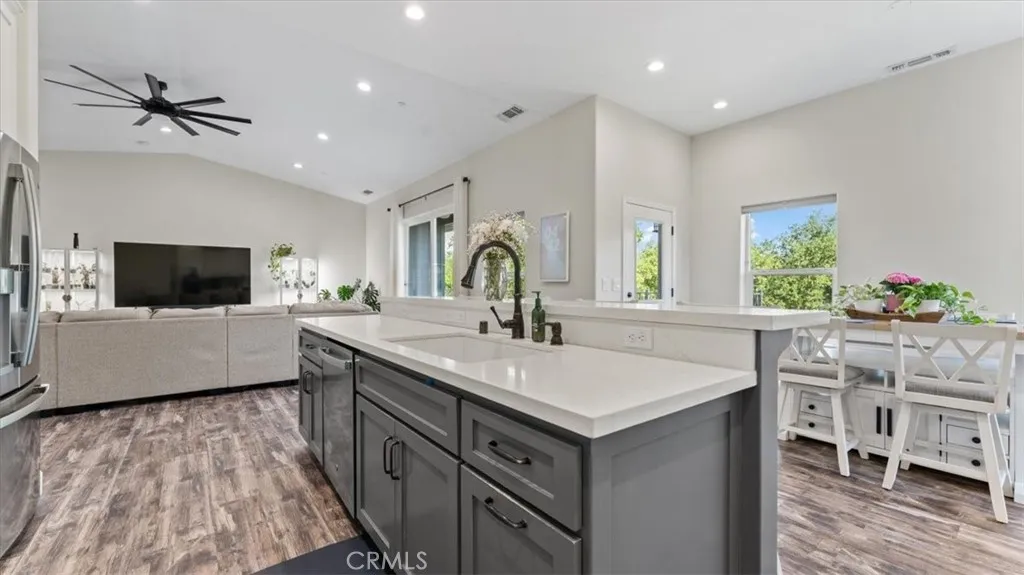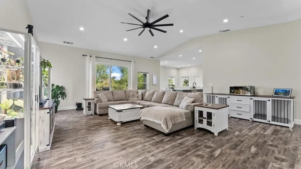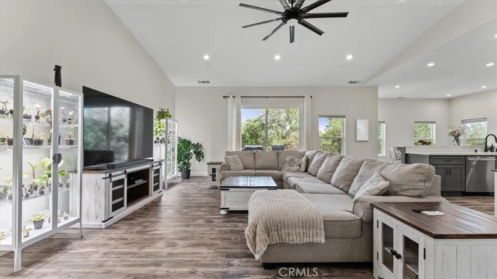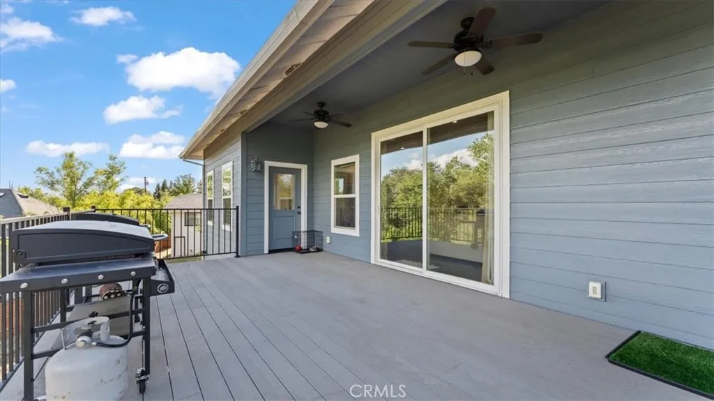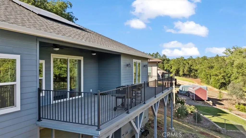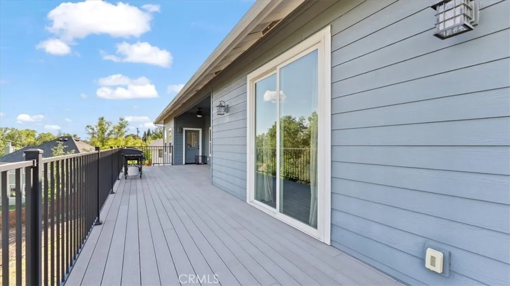 Welcome to this stunning newer home in the East Foothills with owned solar! Built in 2020, this 3 bed, 2.5 bath home sits on nearly half an acre and offers modern style with an open, airy layout. Step inside to a bright great room with vaulted ceilings, abundant natural light, and a seamless flow into the chef’s kitchen featuring a large gray island, white cabinetry, granite countertops, tile backsplash, stainless steel appliances, and a walk-in pantry. The spacious primary suite includes coffered ceilings, a walk-in closet, and private balcony access. The en-suite bath features dual sinks, a soaking tub, and a large tile walk-in shower. Enjoy outdoor living with a covered composite deck and peaceful backyard setting. Seller is paying off the solar—so you’ll have OWNED SOLAR for energy savings. Additional features include an oversized 2-car garage, indoor laundry/mud room with sink and storage, and expansive under-home space with a finished room offering endless potential. Located on a cul-de-sac near Lake Oroville, with easy access to trails, recreation, and town—this home truly has it all.