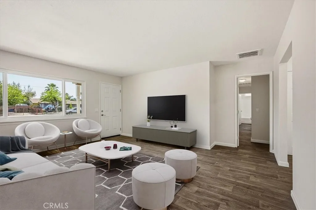 This home is nicknamed by the owners as "Mountain View" because of its glorious mountain views. Beautiful 4-bedroom, 2 bath family home situated in one of the most well established neighborhoods in ALL of Hemet. This home is a real charmer. Recently completely remodeled. Simply wonderful inside & out. Interior features 4 large bedrooms and 2 bathrooms. Great open floor plan. Large living room with big(NEW) windows to let in the natural light. Great family dining room and kitchen that are all connected. Excellent for entertaining and for family living. Other interior notables: new oven/range, new windows, new upgraded vinyl flooring in halls kitchen and dining room, new carpet in bedrooms, upgraded kitchen & bathrooms. New central HVAC system with 4-ton condensing unit. This home is SUPER efficient with heating & cooling. Backyard & front yards are spacious & private. BEAUTIFULLY landscaped front yard that gives the home a wonderful curb appeal. Plenty of room on each side of the yard to use as you like. RV/car parking in front oversized driveway. ***GREAT backyard to add an ADU (Accessory Dwelling Unit)***. The condition of this home is excellent. This home has been completely rehabilitated; including a brand new roof. A TRUEl turnkey home with all of the main features having been completely upgraded to new. Clearly shows pride of ownership. Come add your own touches to it and make it your own. **Close to Park**, Shopping, Schools, Churches. Once you put your feet on this property, you will want to become it's new owner.