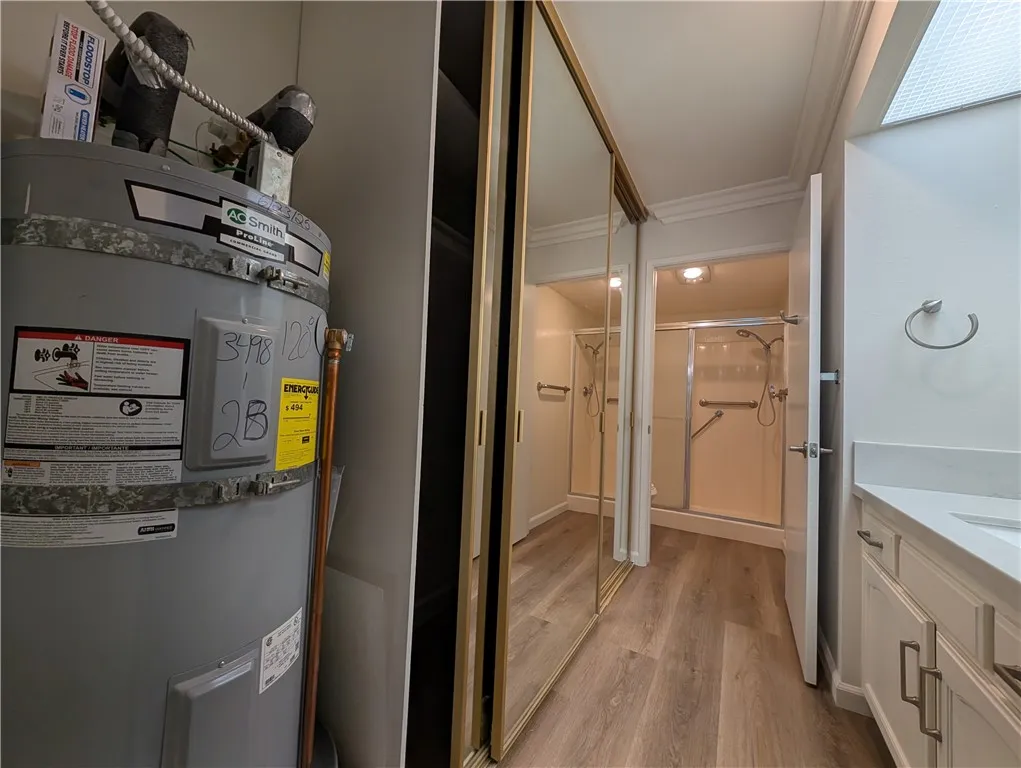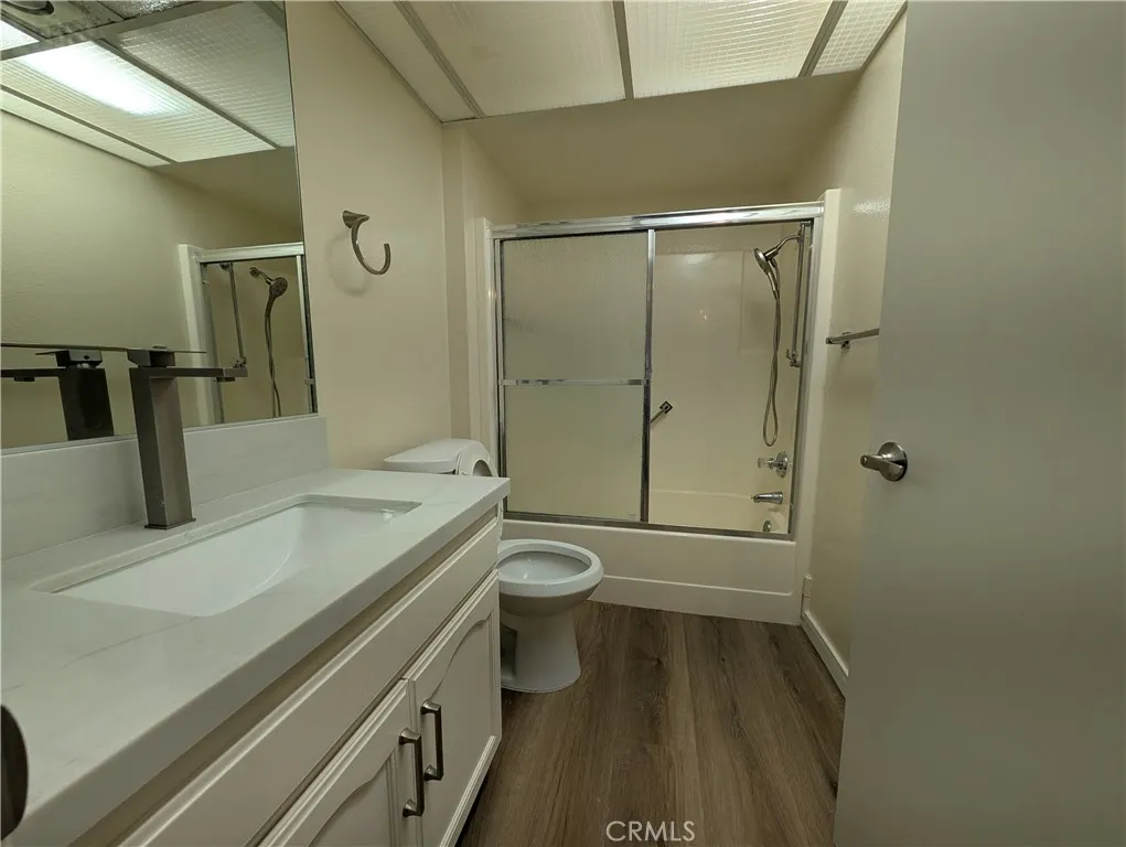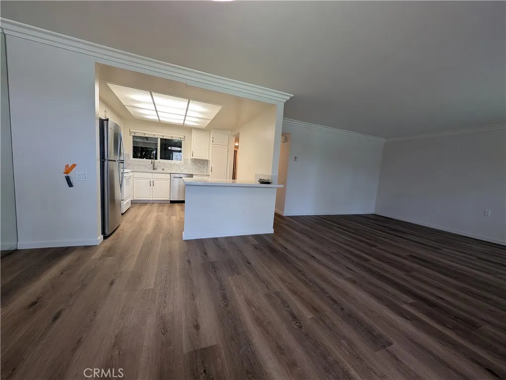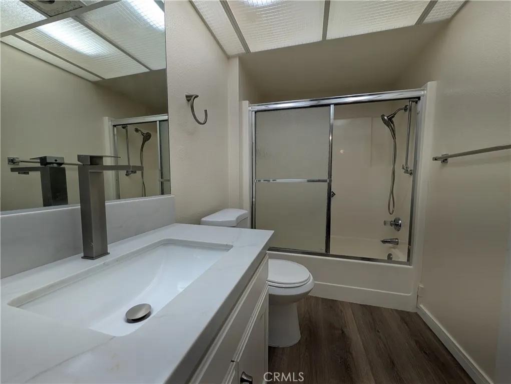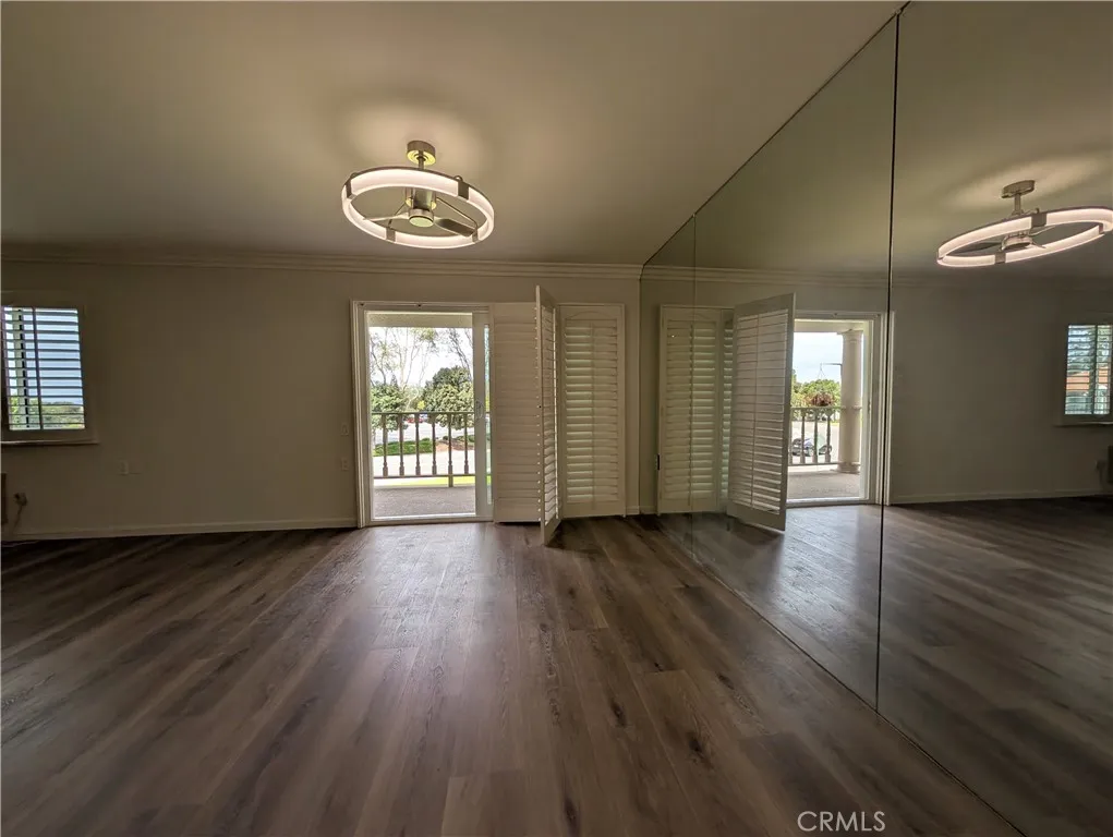 Welcome to this spacious and light-filled Villa Nueva model condo, ideally situated just steps from the popular Clubhouse 5. From the moment you step inside, you'll be drawn to the sweeping views of a beautiful, expansive greenbelt framed by mature trees — a tranquil backdrop enjoyed from both the living room and dining room. Designed for year-round comfort, the home features an efficient heat pump in the living room for economical heating and cooling, along with exceptional cross ventilation — simply open the front door and balcony doors to enjoy a natural, refreshing breeze flowing through the entire unit. The thoughtfully upgraded interior showcases an open-concept living area with modern LED lighting, elegant plantation shutters, and a striking mirrored wall that enhances the sense of space. Premium flooring flows throughout, and the updated bathroom features chic fixtures with safety-conscious accents. Step outside to your balcony and soak in the serene greenbelt views in complete privacy. Monthly HOA fees are covered by the landlord, granting full access to all of Laguna Woods Village's world-class amenities, including two championship golf courses, multiple swimming pools, tennis and fitness centers, equestrian facilities, scenic walking trails, and over 250 social clubs. A complimentary community shuttle bus provides convenient access to local shops, medical centers, and nearby attractions.