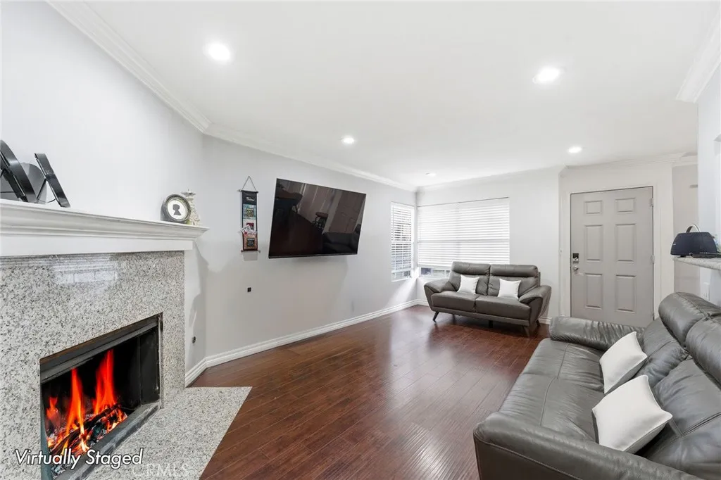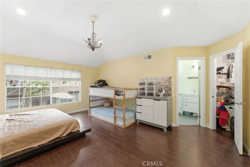 Beautifully maintained townhouse located in one of Anaheim’s best-kept hidden communities—quiet, private, and surrounded by mature trees, while still being only a few minutes away from the heart of the city.This bright and spacious home offers an exceptional floor plan featuring 2 oversized primary suites upstairs, each with its own private bathroom, large walk-in closet, and soaring cathedral ceilings that create an open, airy, and luxurious feel. The main floor offers a seamless open-concept layout connecting the living room, dining area, and kitchen—perfect for both comfortable everyday living and entertaining guests. Natural light fills the home, highlighting the rich dark coffee-colored hardwood flooring, recessed lighting throughout, and the warm, clean interior design. Step outside to your private front patio, for relaxing, weekend BBQ gatherings with family. The attached 2-car garage provides direct access into the home and includes built-in cabinets for extra storage with recess lights ..The community offers resort-style amenities including a pool, spa, and tennis courts, while maintaining a peaceful “hidden in the forest” atmosphere right in the middle of Anaheim. With plenty of guest parking and low HOA dues, everyday living here is both convenient and affordable and just minutes from major freeways /5.57.22 , Disneyland, Downtown Disney, Anaheim Convention Center, Angel Stadium, Honda Center, and UCI Medical Center—offering daily living and long-term value. Surrounded by shopping, dining, parks, and entertainment, yet tucked inside a quiet residential community, it truly offers the perfect balance of city access and peaceful neighborhood charm. Do not miss this home !