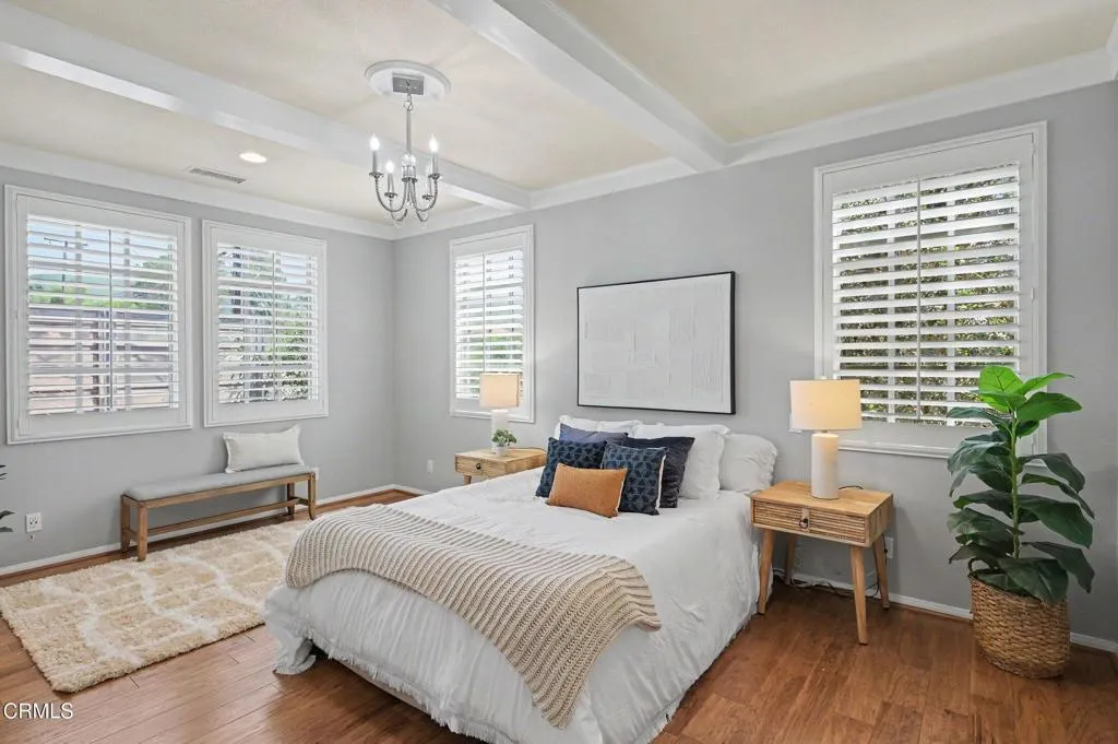 Nestled in the heart of Santa Barbara, this exceptional end-unit residence at 160 Via Lee presents a rare opportunity to own a slice of coastal luxury in one of the area's most desirable communities. Ideally positioned in the best location within the complex, this home captures breathtaking mountain views while offering privacy, tranquility, and convenience.Spanning approximately 2,299 square feet, this beautifully designed 4-bedroom, 3.5-bath residence showcases a seamless blend of modern sophistication and thoughtful craftsmanship. The open-concept floor plan is enhanced by soaring ceilings, engineered wood flooring, crown molding, and expansive windows that flood the home with natural light--creating a bright and inviting atmosphere throughout.At the heart of the home, the chef's kitchen is both functional and updated, featuring high-end appliances, abundant cabinetry, and generous counter space--ideal for both everyday living and entertaining. The adjoining living and dining areas flow effortlessly, perfect for hosting gatherings or enjoying quiet evenings at home.Each bedroom is generously sized, offering comfort and versatility, while the primary suite serves as a private retreat complete with a spacious walk-in closet and a spa-inspired ensuite bathroom featuring dual vanities and a soaking tub.Step outside to your own private oasis, where meticulously landscaped grounds, lush greenery, and a serene patio create the perfect backdrop for outdoor dining, relaxation, and entertaining. Enjoy stunning sunsets and embrace the quintessential Santa Barbara indoor-outdoor lifestyle.Additional highlights include a spacious two-car garage and ample guest parking.Located just minutes from downtown Santa Barbara and the iconic Pacific Ocean, this home offers unparalleled access to world-class dining, shopping, and recreation.Don't miss this rare opportunity to experience the very best of Santa Barbara living at 160 Via Lee--where elegance, comfort, and coastal beauty come together in perfect harmony.