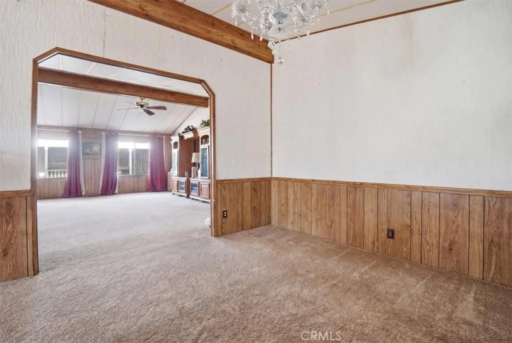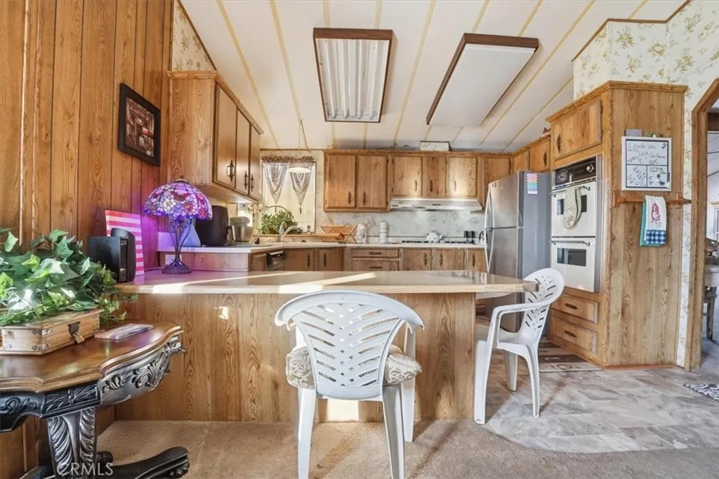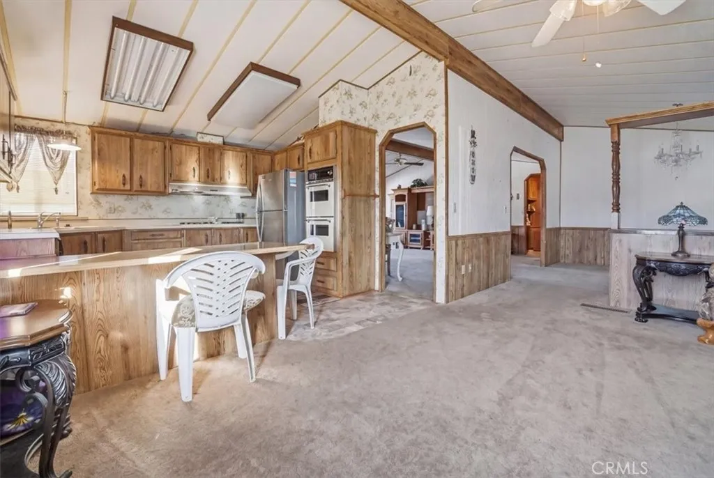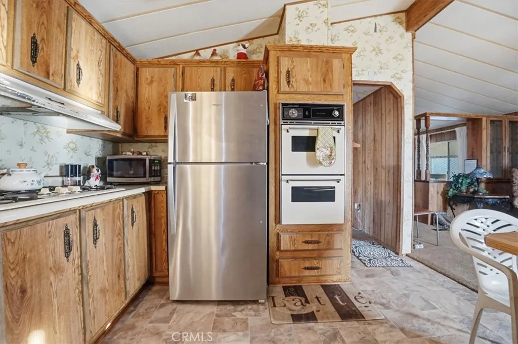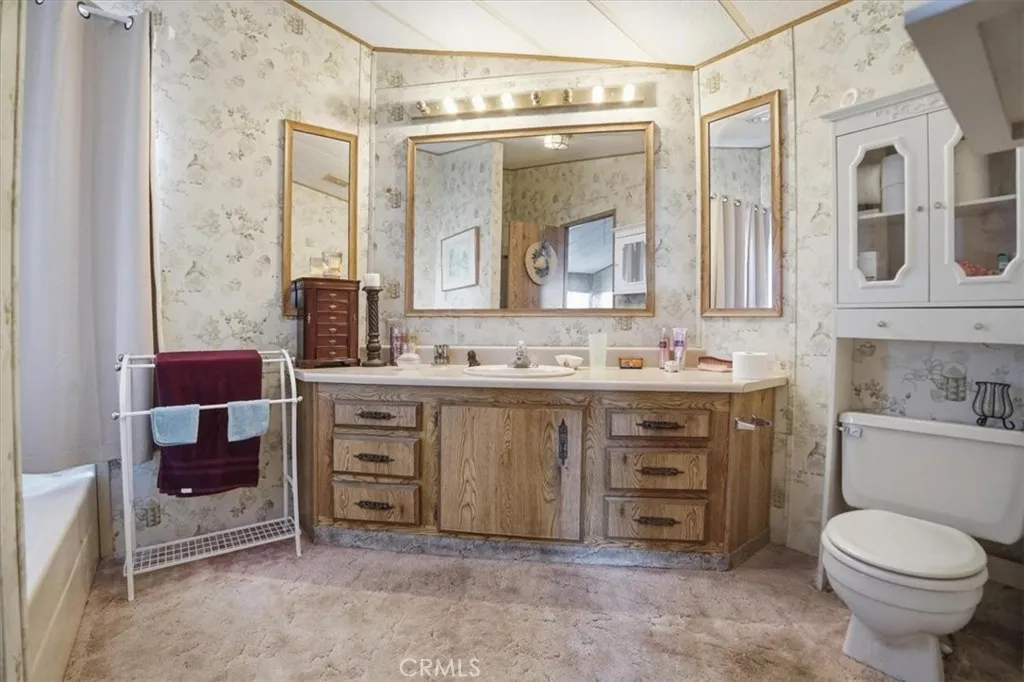 Spacious triple-wide manufactured home offering approximately 1,824 sq ft in the desirable 55+ gated community of The Lakes at Hemet West. One of the larger homes in the community, this 2-bedroom, 2-bath residence features vaulted ceilings, expansive living areas, and a functional layout ideal for comfortable living and entertaining. The kitchen includes a center island with bar seating, double oven, gas cooktop, and ample cabinetry, opening to generous dining and living spaces. The separate laundry room offers added convenience with a utility sink. The primary suite features a double sink vanity along with a separate tub and shower, providing a spacious and practical layout. Situated toward the perimeter of the community with no direct rear neighbors, adding additional privacy. Enjoy resort-style living in The Lakes at Hemet West, a guard-gated 55+ community featuring a private golf course, multiple lakes with fishing, clubhouse, pool and spa, fitness center, pickleball, and a full calendar of social activities. Conveniently located near shopping, dining, and medical facilities. A rare opportunity to own one of the larger homes in the park—priced to reflect condition and ready for your personal touch.