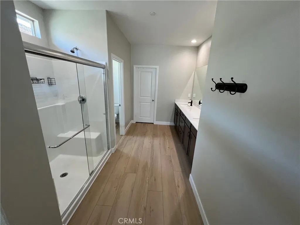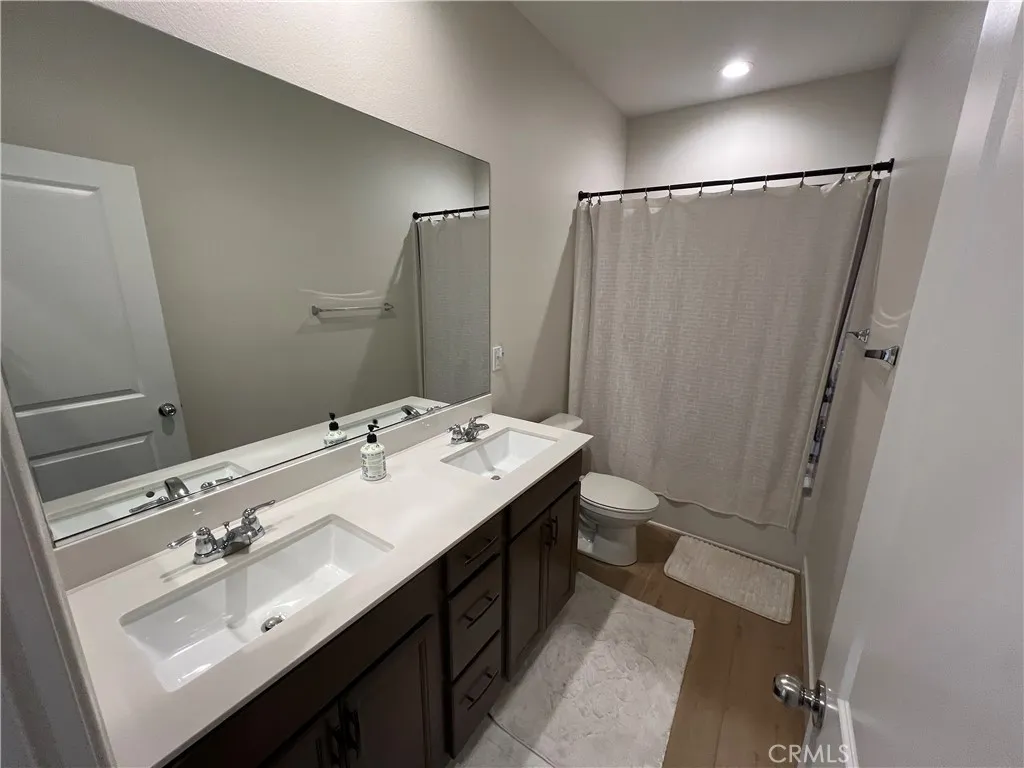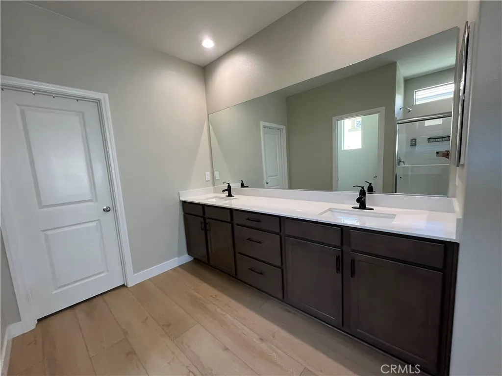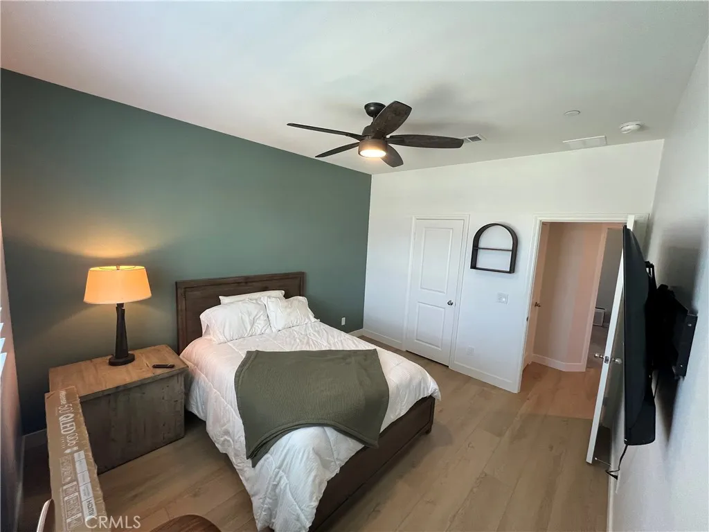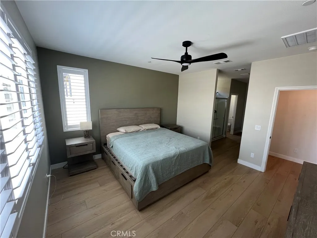 Beautiful single-story home for lease in a newer Menifee neighborhood, ideally located near Menifee Lakes Golf Course. Situated on a desirable corner lot within a quiet cul-de-sac, this property offers excellent curb appeal with low-maintenance landscaping, including artificial turf, decorative concrete, and drip-irrigated planters. A charming paver walkway leads to the inviting front entrance. Inside, the home features 9-foot ceilings, creating a spacious and open feel. Upon entry, two guest bedrooms and a full bathroom are conveniently located to the left. Further down the hallway, an additional en-suite bedroom offers its own private bathroom—perfect for guests or multigenerational living. A dedicated office with double doors provides a functional workspace, along with a nearby powder room for added convenience. The rear of the home opens to a bright and expansive great room with an open-concept layout, ideal for everyday living and entertaining. The oversized kitchen is equipped with a large center island, stainless steel appliances, ample cabinetry, and upgraded wood flooring that flows throughout the home. Plantation shutters enhance both style and privacy in every room. The primary suite offers a relaxing retreat with a double vanity, walk-in shower, and an oversized walk-in closet. Step outside to enjoy a private backyard designed for entertaining, featuring a covered patio, extensive concrete hardscaping, and artificial turf for easy upkeep. Additional highlights include a solar system for energy efficiency, proximity to multiple parks, and convenient access to the 215 freeway via Newport Road. Located near shopping, dining, and within a family-friendly community, this home combines comfort, functionality, and a prime Menifee location.