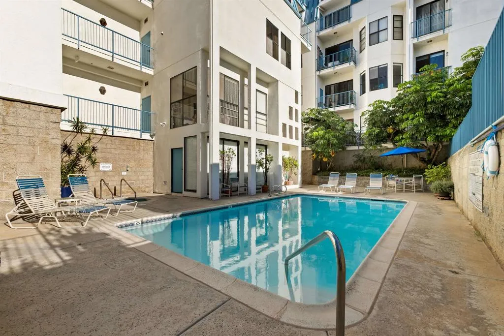 Looking for an urban oasis? Le Parc Chateau sits in a highly desirable area conveniently located near Balboa park, Bankers Hill and Hillcrest. This 2 bedroom 2 bath, 1,171 square foot home has high ceilings throughout which provide an open feeling and lots of light. The upgraded kitchen features quartz countertops, stainless steel appliances and a breakfast bar. The large living room has a fireplace and opens to a balcony with additional storage. The dining room is open to both the kitchen and living rooms making for a great room feel. The bedrooms are separated by the living space and both have 2 closets and their own full size bathrooms. A hallway closet has side by side washer & dryer with storage above and there is yet another linen closet. Building amenities include an elevator, pool and hot tub, community bike storage and another community storage in the garage. 2 reserved tandem parking spots come with this unit. This is a must see property in a wonderful and walkable neighborhood!