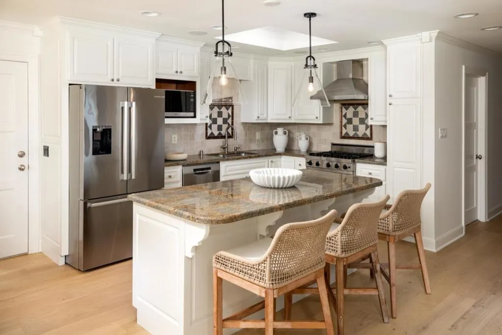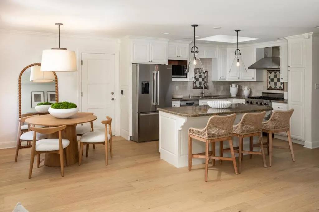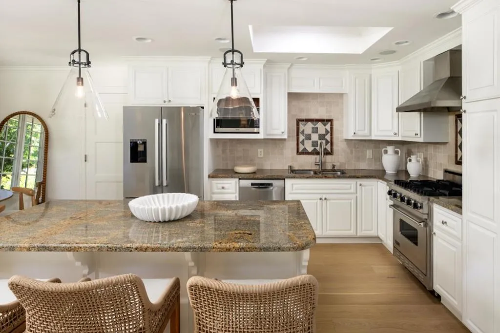 Located in the highly desirable Flood Park neighborhood, this beautifully updated home combines classic design with modern comfort. A welcoming front porch opens to a light-filled great room with wide-plank hardwood floors and a wood-burning fireplace. The remodeled kitchen features white cabinetry, granite countertops, counter seating, a nicely sized breakfast area, and access to the garage, along with premium stainless steel appliances including a Viking gas range and Bosch dishwasher. The home offers four bedrooms, highlighted by a spacious primary suite with vaulted ceilings, a sitting area, and a luxurious bath with dual vanities, soaking tub, glass-enclosed shower, skylight, vaulted ceiling and a large custom walk-in closet. Bathrooms are thoughtfully designed for convenience and style and each with dual vanitiy. The private backyard is ideal for relaxing or entertaining, featuring an Ipe wood deck, vine-covered arbor with cafe lighting, multiple seating areas, privacy, and a generous lawn. Conveniently located near parks, Highway 101, and top-rated Menlo Park schools, this home offers comfort, style, and an exceptional location and neighborhood.