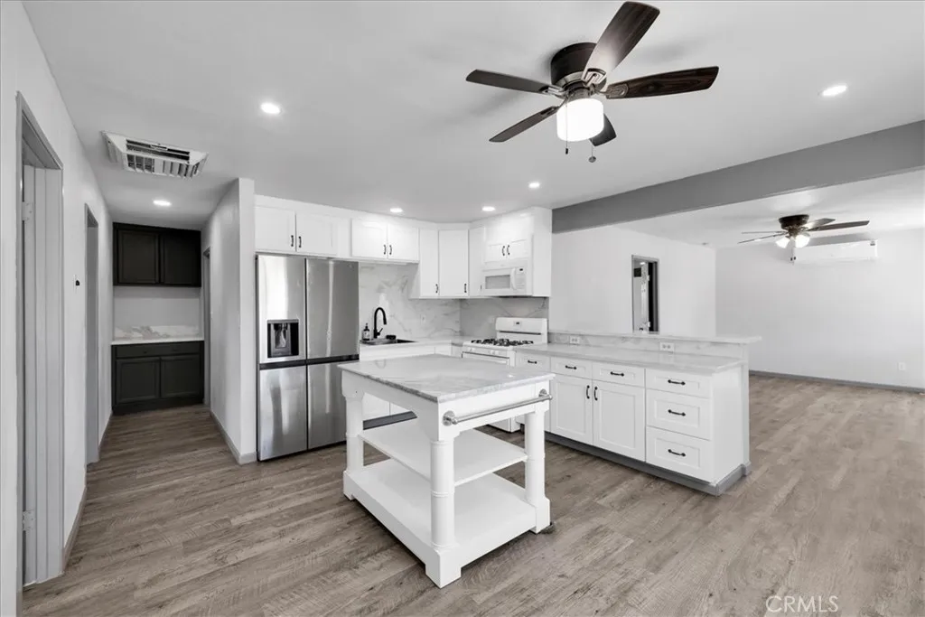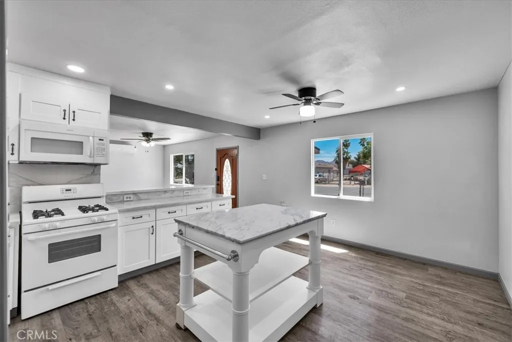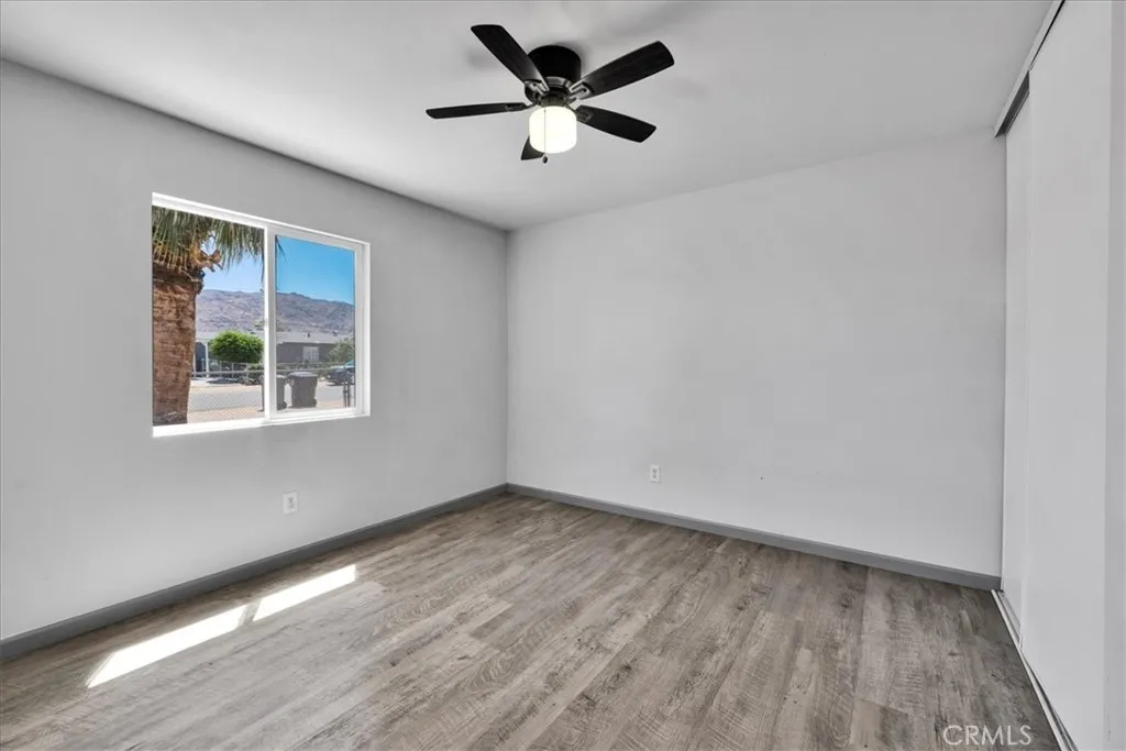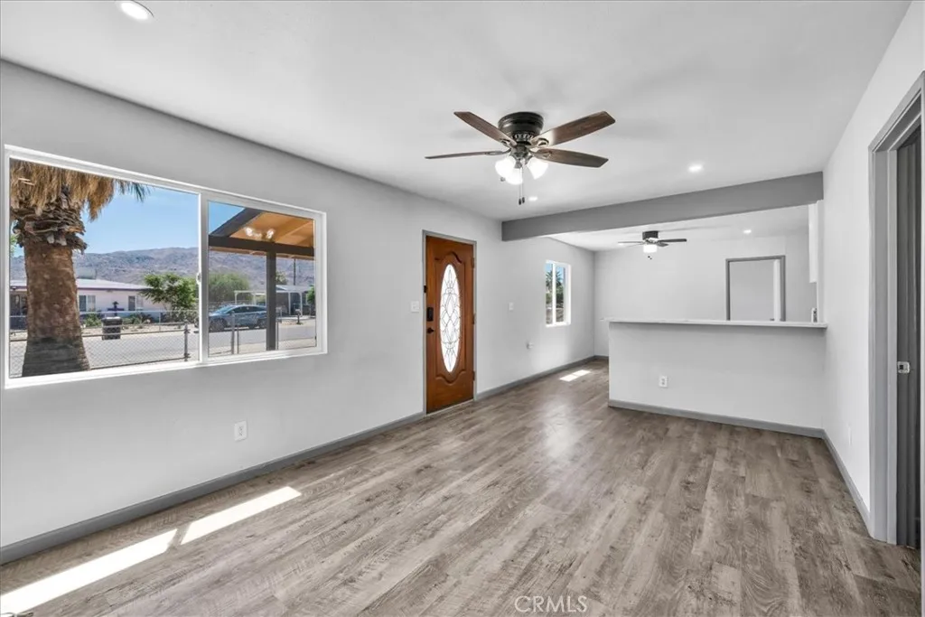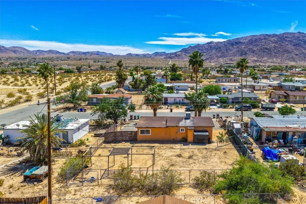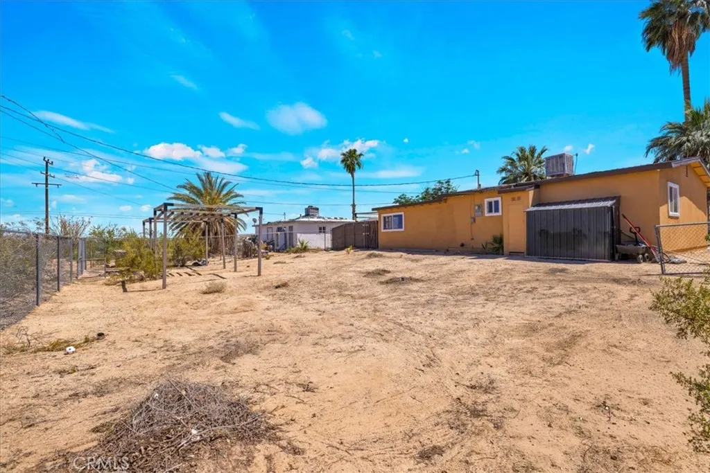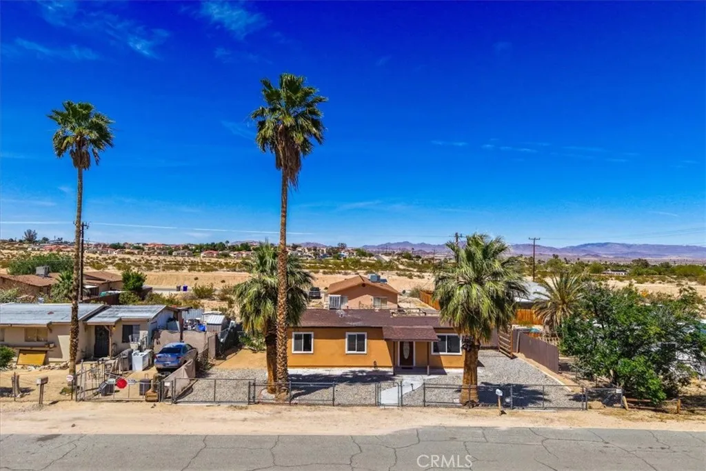 Beautiful three bedroom, two bath home, centrally located and recently remodeled and renovated with laminate flooring, quartz countertops, large primary bedroom and bath, spacious kitchen with island, indoor laundry, dual cooling and ductless heating. Also features a split A/C unit and swamp cooler for year round comfort and affordability. Excellent condition throughout and close proximity to downtown 29 Palms, Post Office, shopping, Joshua Tree National Park entrance, restaurants and USMC Base. Fenced in front and back yards, two drive-in gates for plenty of parking, mature palm trees and a storage shed in the back. Must be seen to appreciate all this sweet house has to offer. Come and fall in love with the High Desert!