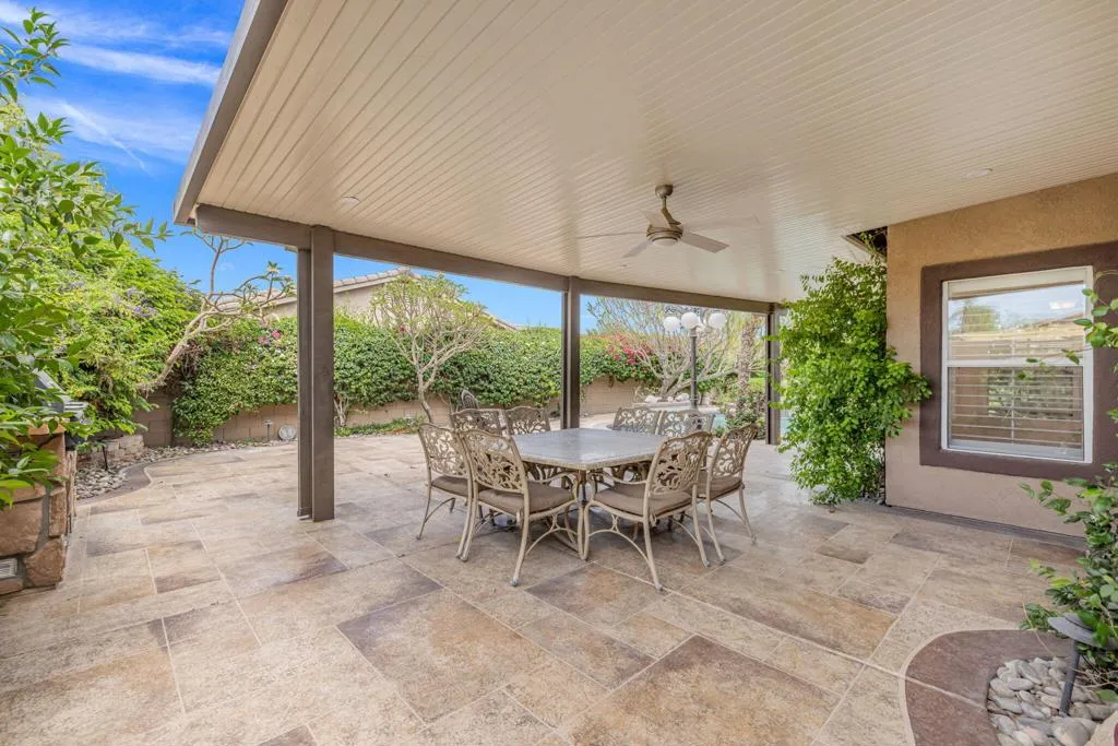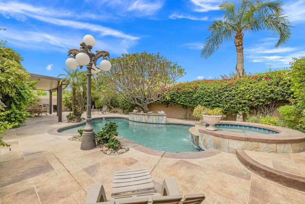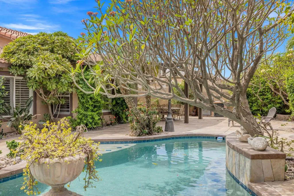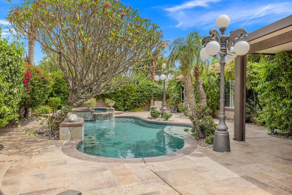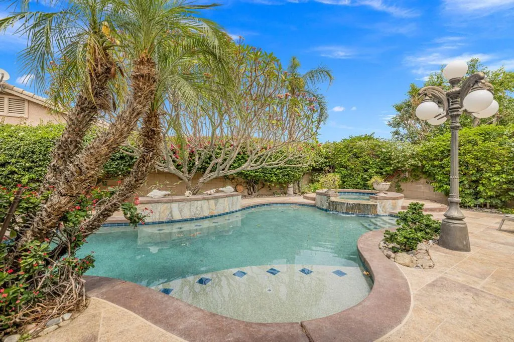 Welcome to this gorgeous and highly upgraded 5-bedroom, 2.5-bath home, offering exceptional space, comfort, and style. From the moment you arrive, you'll notice the beautifully landscaped front and back yards, complete with custom pavers that enhance the home's curb appeal and outdoor living.Step into a truly one-of-a-kind backyard designed for entertaining, featuring a custom pool and spa, mature shade trees, a large covered patio, and a built-in barbecue area with mini fridge--perfect for enjoying warm summer days and evenings with family and friends.Inside, the home boasts tile flooring throughout and a spacious open floor plan that includes a formal living room, family room, and dining area. The massive primary suite features elegant double-door entry, a large walk-in closet, and plenty of room to unwind.A huge bonus room with custom cabinetry offers incredible flexibility--ideal as a fifth bedroom, office, gym, or nursery. Additional highlights include plantation shutters, ceiling fans throughout, central A/C and heating, a cozy fireplace, and stylish double glass door entry. Secondary rooms feature glass sliding closet doors for a modern touch.The upgraded kitchen is a chef's dream with granite countertops, ample cabinetry, and all appliances included--plus refrigerator, washer, and dryer.Completing the home is a spacious 3-car garage and an unbeatable location in beautiful La Quinta, close to world-class golf courses, dining, shopping, entertainment, festivals, tennis, polo grounds, and Acrisure Arena.This is a rare opportunity to own a truly exceptional home in one of the desert's most desirable areas.