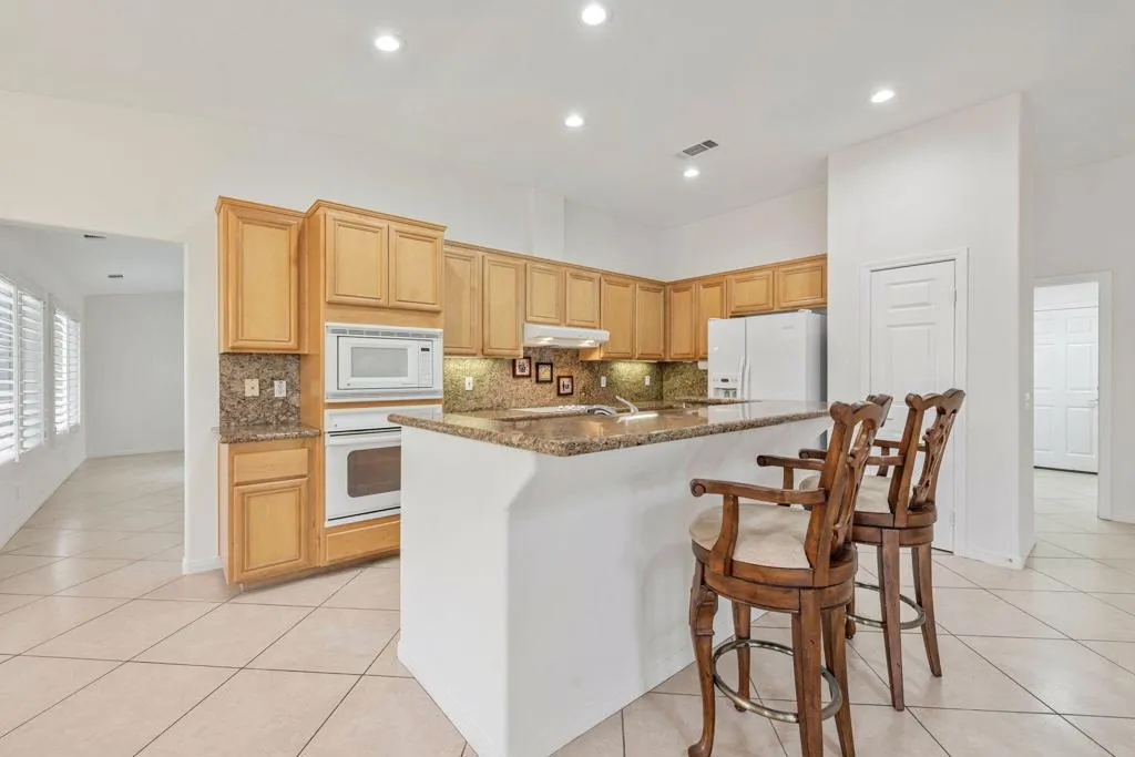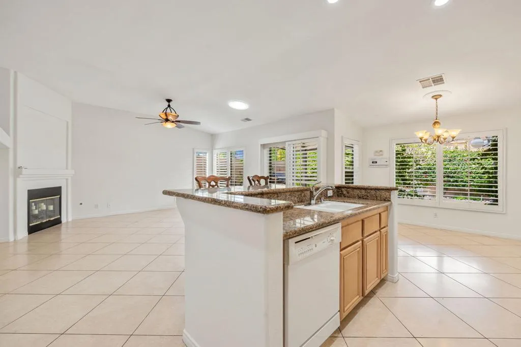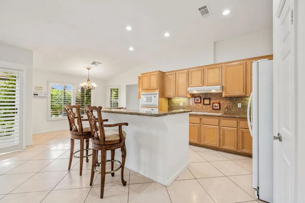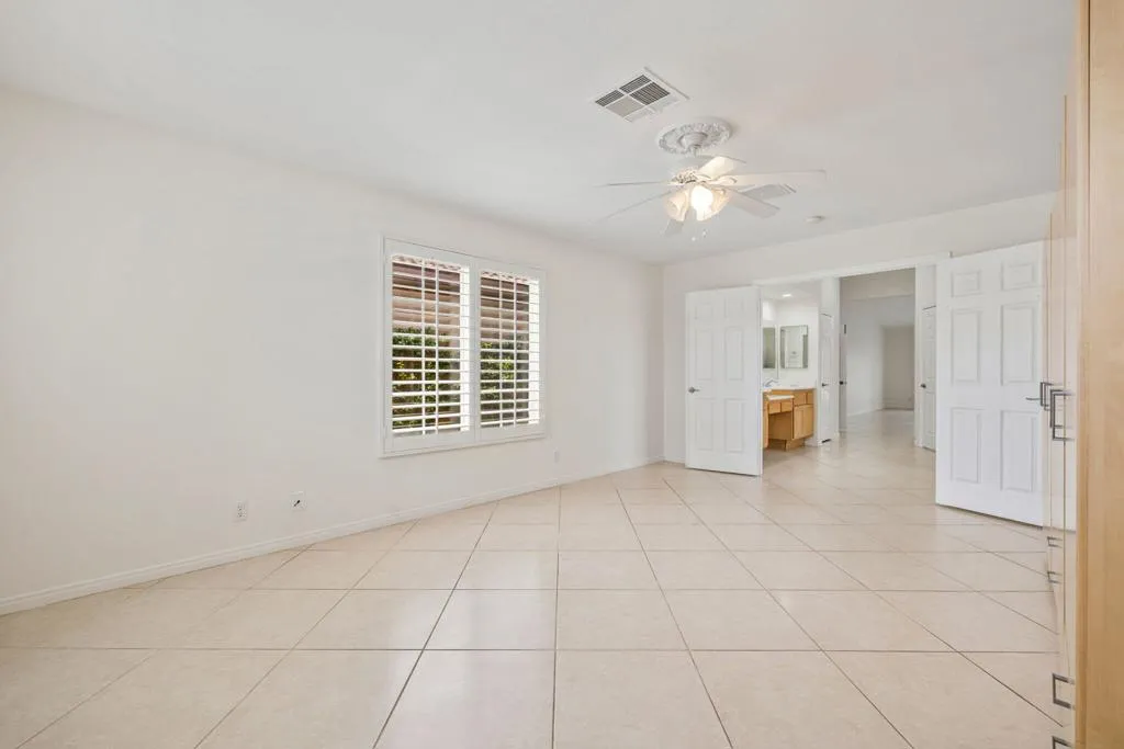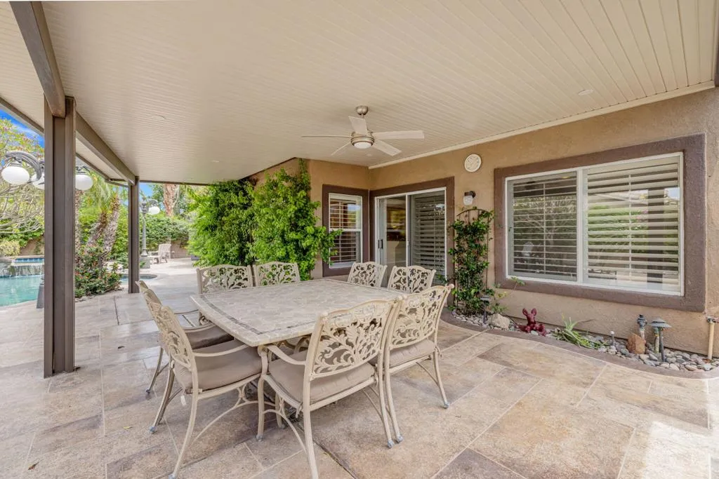 Welcome to this gorgeous and highly upgraded 5-bedroom, 2.5-bath home, offering exceptional space, comfort, and style. From the moment you arrive, you'll notice the beautifully landscaped front and back yards, complete with custom pavers that enhance the home's curb appeal and outdoor living.Step into a truly one-of-a-kind backyard designed for entertaining, featuring a custom pool and spa, mature shade trees, a large covered patio, and a built-in barbecue area with mini fridge--perfect for enjoying warm summer days and evenings with family and friends.Inside, the home boasts tile flooring throughout and a spacious open floor plan that includes a formal living room, family room, and dining area. The massive primary suite features elegant double-door entry, a large walk-in closet, and plenty of room to unwind.A huge bonus room with custom cabinetry offers incredible flexibility--ideal as a fifth bedroom, office, gym, or nursery. Additional highlights include plantation shutters, ceiling fans throughout, central A/C and heating, a cozy fireplace, and stylish double glass door entry. Secondary rooms feature glass sliding closet doors for a modern touch.The upgraded kitchen is a chef's dream with granite countertops, ample cabinetry, and all appliances included--plus refrigerator, washer, and dryer.Completing the home is a spacious 3-car garage and an unbeatable location in beautiful La Quinta, close to world-class golf courses, dining, shopping, entertainment, festivals, tennis, polo grounds, and Acrisure Arena.This is a rare opportunity to own a truly exceptional home in one of the desert's most desirable areas.