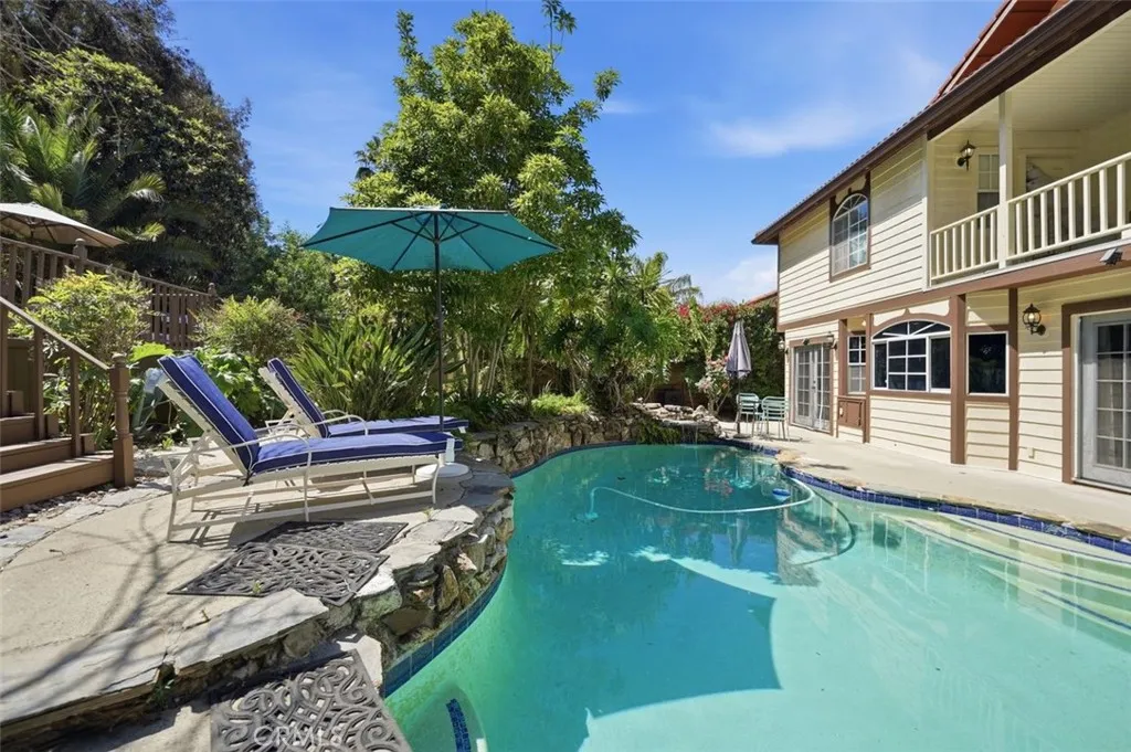 Exquisitely remodeled residence situated on a quiet cul-de-sac, offering exceptional privacy and a resort-style backyard retreat. Lush landscaping surrounds a sparkling pool and spa with cascading waterfall, creating a serene and sophisticated outdoor setting. The interior showcases refined finishes throughout, including designer flooring, upgraded recessed lighting, and two elegant fireplaces. The gourmet kitchen is beautifully appointed with Carrera marble countertops, rich oak cabinetry, double ovens, a center island with prep sink, and a sleek contemporary vent hood. Designed for seamless indoor-outdoor living, the formal dining room and expansive living room both open to the backyard through French doors. An impressive full-length verandah balcony spans the rear of the home, with access from three bedrooms, providing an elevated outdoor escape. The luxurious primary suite features a spacious walk-in closet and a spa-inspired bath with soaking tub and remodeled separate shower. All bedrooms are equipped with ceiling fans for added comfort. Outdoor entertaining is effortless with a covered balcony finished in designer wood flooring, a generous two-level sun deck, and a dedicated BBQ terrace. Additional highlights include a Level 2 EV charging station and location within the highly sought the award - winning Walnut school District. This exceptional home is a one-of-a-kind home. You will fall in love. Let's show and sell ! For 3 D tour- https://www.zillow.com/view-imx/07c33b05-cd84-4232-87e9-f207234b8e8e?setAttribution=mls&wl=true&initialViewType=pano&utm_source=dashboard