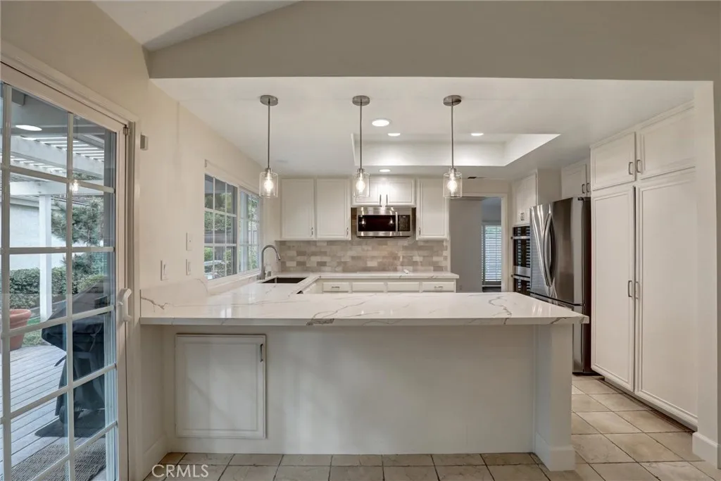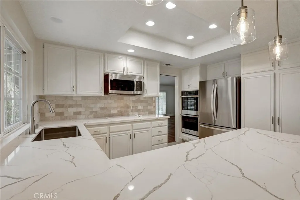 Spectacular single family 4 bedroom 2 ½ bathroom home in the coveted Turtle Rock Glen community of Irvine. Light and bright with spacious rooms and living areas. Newly remodeled with quartz countertops, new luxury vinyl floors, and new state of the art kitchen appliances that include new sink and faucet, dishwasher, refrigerator, double oven, microwave, stove top, a separate beverage cooler, air conditioning and a furnace. Neutral colors with abundant natural lighting from large windows and a skylight and newly painted with a soft white color. It contains two cozy brick fireplaces that showcases a two-way facing central fireplace open in both the living room and conversation pit areas. All new LED recessed lighting and drop-down pendant lighting with dimmer in the kitchen. The solid oak bookcase is a custom-made one-piece construction specifically designed and created for that space. The upscale wood shutters are installed throughout the house and slide to open in the living room and master areas. The windows are all double paned high quality environmental-proof glass windows and sliding doors. The floors include marble stone and new luxury vinyl rich brown durable flooring. The master bedroom is a spacious room on the downstairs level with its own sliding glass door leading into the backyard, huge bathroom and Roman bath as well as shower and bathroom areas. It also contains two large closets and living space. The other three bedrooms are located upstairs and contain ample windows with natural light and mirrored closet sliding doors. They share a newly renovated bathroom with double sinks, quartz counter, fixtures, flooring and a shower/tub. Large family room, living room, dining room and conversation pit. It also has a downstairs guest powder room with new fixtures and quartz countertop. It also has a dry bar with a quartz countertop and cabinets. The huge backyard has two decks with a fire pit and wraps around the house with entries from each room on the bottom floor. Spacious two-car garage with separate refrigerator, rafters, and shelving. The backyard has wooden decks with cover and beautiful landscape plants and flowers. Situated near the green belt which has tennis courts, pool, playgrounds, large fields, and walkways for running and walking. Very close to the nationally recognized and state distinguished Irvine school district schools, including Turtle Rock Elementary and University High School in walking distance from the house.