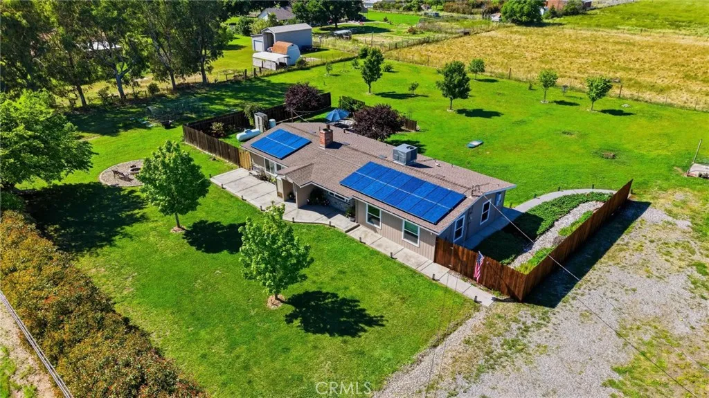 Here is the perfect country property you've been waiting for! This 3-acre ranchette is a homesteader's dream, offering all the comforts and amenities modern life has to offer while retaining it's rural charm. The home features custom upgrades in the kitchen and Master bathroom with fresh paint inside and out. The front door opens to a comfortable tiled living area which leads to the kitchen and a hallway to three bedrooms and a bathroom on the right side of the home. The master suite is on the opposite side of the house from the 3 bedrooms with the kitchen and laundry station in the middle. The roof was replaced recently, and the solar is leased. One of the best features of this property is the amazing barn! With 6 bays, a workshop, and a duck pond, this barn is perfect for your animals. 3 of the bays are paved for storage and 3 are bare ground for housing chickens, goats, horses, cows, etc. The perimeter of the property is completely fenced and the pasture is fenced in to separate it from the backyard. There is also a metal security fence with an automatic gate in the driveway. The bushes along the road create a private setting in the yard where you can enjoy the fire pit, vegetable garden, herb garden, strawberry patch, and multiple fruit trees (orange, lime, lemon, kumquat, tangerine, 2 apple, 2 pineapple guava, anjou pear, pomegranate, peach, etc!). The owners have improved this property with great care and foresight. From specialty French drains to extensive irrigation pipes delivering water to every corner of the property, they have thought of everything. With plenty of room to park your boat or RV, this property has it all! If you are looking for a turnkey hobby farm, look no further! Please come and see for yourself.