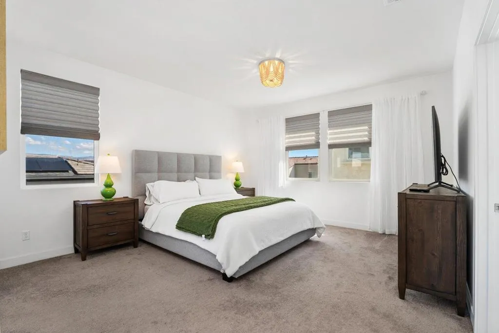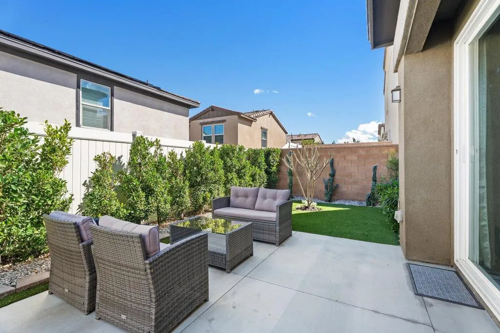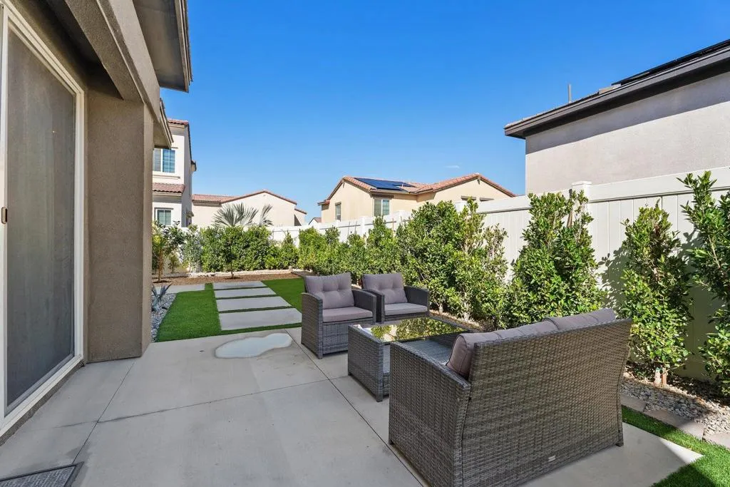 Available for long-term lease. Offering partial furnishings with appliances, this clean, 4-bedroom, 3-bath newly constructed home provides a comfortable, low-maintenance lifestyle in a desirable desert community. The property includes a solar system that significantly reduces electricity costs, especially during the hot summer months. Enjoy the best of desert living with access to resort-style amenities, including a community pool and spa, beautifully maintained park areas, and a playground for kids. The home is ideally located with convenient proximity to Interstate 10, making commuting and travel simple. This is a great opportunity to lease a modern, energy-efficient home in an amenity-rich neighborhood. Appliances included a washer, dryer, refrigerator, microwave, and gas cooktop.