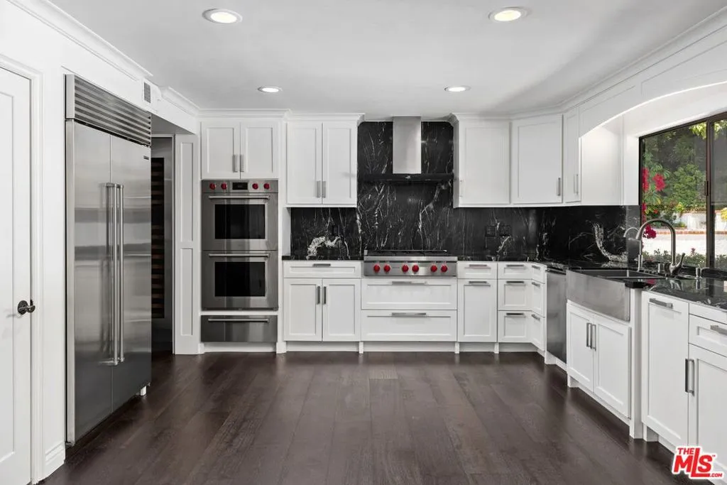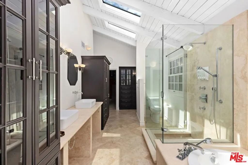 Set in coveted Lower Bel Air, this private retreat blends luxury, tranquility, and classic California charm. Offering 5 bedrooms and 5 bathrooms, the home features a spacious primary suite complete with a spa-like bath and generous closet space. Secondary bedrooms are well-proportioned, each with en-suite baths and ample storage, providing both comfort and flexibility. Designed for both everyday living and elevated entertaining, the chef's kitchen is equipped with abundant cabinetry, expansive counter space, and quality appliances, seamlessly connecting to the home's inviting living and dining areas. Outdoors, the terraced grounds evoke the romance of the Mediterranean, with lush landscaping and a remarkable variety of fruit and vegetable trees, including avocado, citrus, apples, cherries, and blueberries. The private backyard oasis is thoughtfully designed with a swimming pool, spa, and multiple areas for al fresco dining, lounging, and enjoying the serene surroundings.Ideally located just moments from Beverly Hills and the Westside, this exceptional lease opportunity delivers a rare combination of privacy, natural beauty, and refined living in one of Los Angeles' most sought-after neighborhoods. Photos may be enhanced by AI.