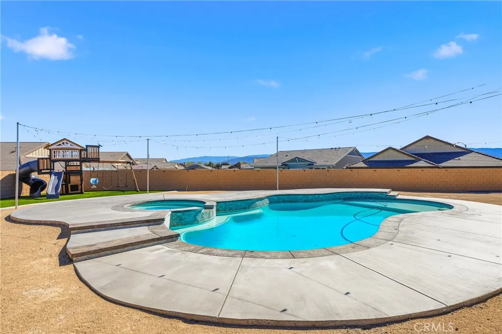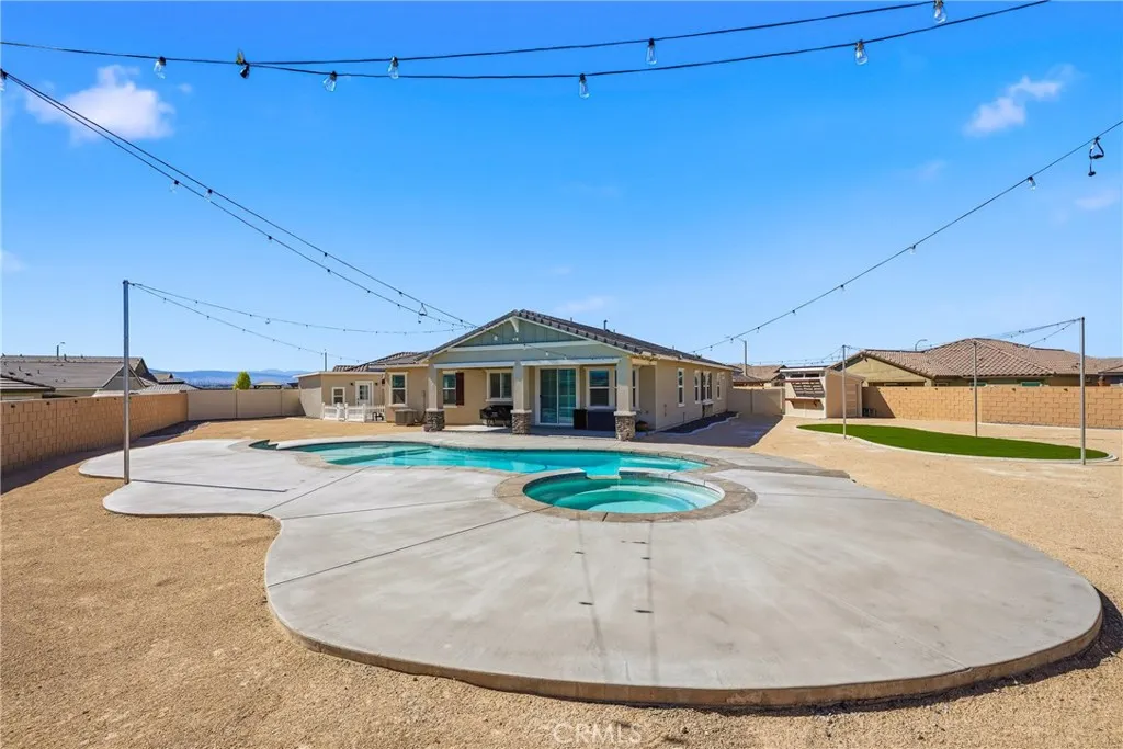 44520 Freer Way, Lancaster, CA 93536 - Built in 2021, this exceptional West Lancaster luxury home offers 5 bedrooms, 2 bathrooms, and approximately 2,372 sq ft of beautifully upgraded living space. Featuring an open-concept layout with hardwood flooring throughout, the home includes a chef's kitchen with granite countertops, oversized island, farmhouse sink, pantry, and custom finishes. The spacious primary suite boasts a walk-in closet and spa-like bath with dual vanities and a private water closet. The resort-style backyard is designed for entertaining with a beach-entry pool and spa, covered patio, outdoor bar, play area, and detached office. Additional highlights include expansive RV access with an approximately 25-ft gate, block walls, vinyl fencing, solar with battery backup, tankless water heater, and a 2-car garage. Conveniently located near schools, shopping, and commuter routes, this turnkey home offers luxury, functionality, and over $200K in upgrades.