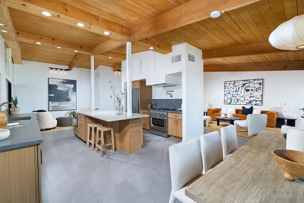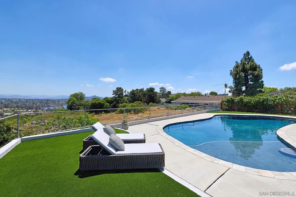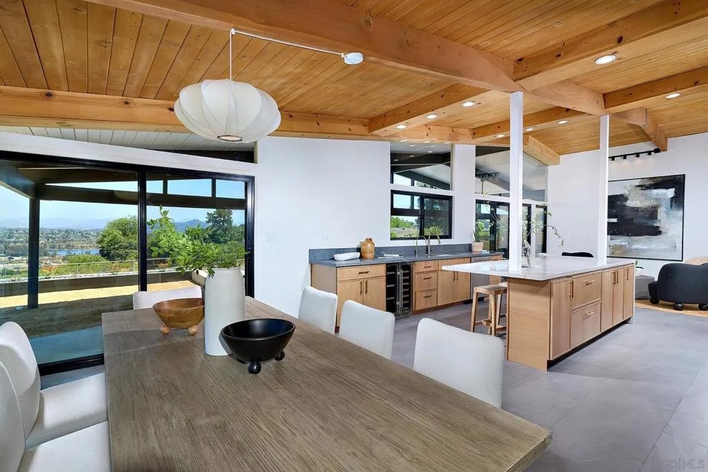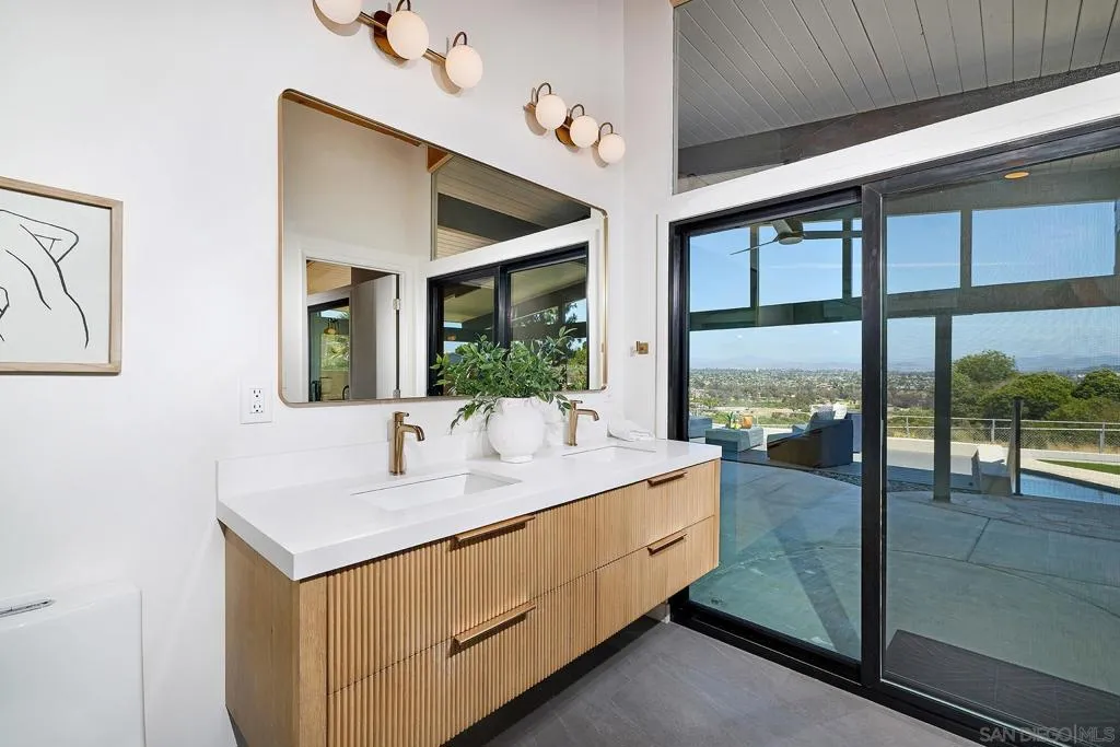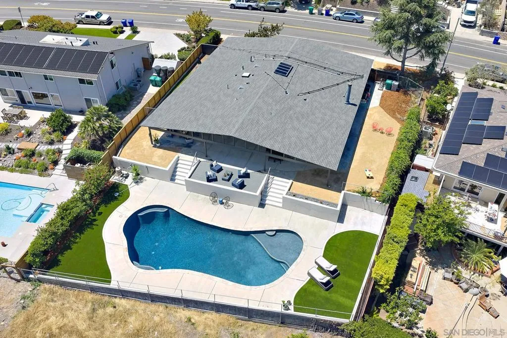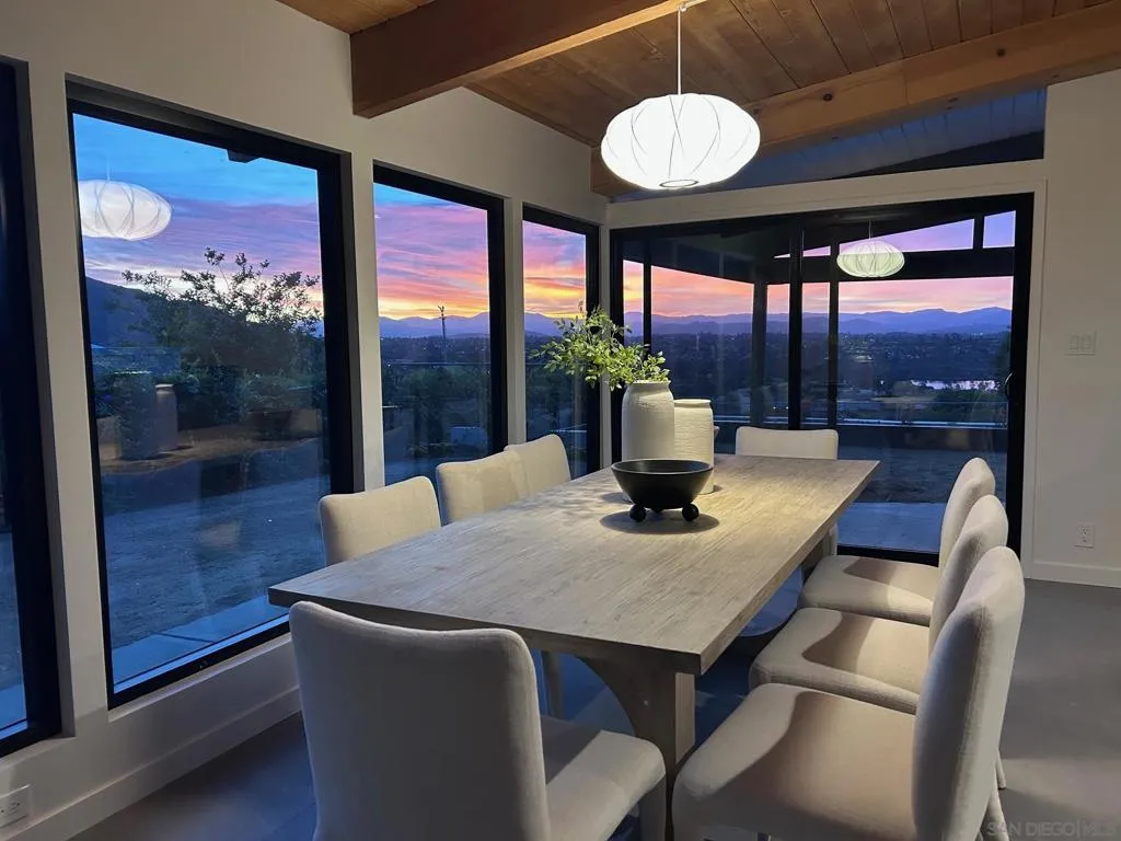 Iconic Krisel Mid-Century home with pool, views, and serious entertaining space. This single-level 4 bed, 3 bath home has been thoughtfully reimagined to honor its architectural roots while delivering today's modern comforts. Expansive indoor-outdoor living includes a private pool and over 1,000 sq ft of covered entertaining space. A rare opportunity to own a true piece of California modernism. Architecturally significant mid-century modern residence designed by William Krisel, showcasing iconic design paired with a complete modern reimagining. This single-level home offers 4 bedrooms, 3 bathrooms, and approximately 2,700 square feet of open, expansive living space. Signature mid-century elements are on full display, including dramatic vaulted ceilings with exposed wood beams, clean architectural lines, and walls of dual-pane floor-to-ceiling glass that flood the home with natural light while framing sweeping lake and mountain views. The thoughtfully designed open floor plan creates seamless flow between living, dining, and kitchen spaces—ideal for both everyday living and entertaining. The chef’s kitchen is a true centerpiece, featuring slim shaker wood cabinetry, high-end appliances, champagne bronze hardware, and a striking 10-foot quartzite waterfall island with eat-at seating. Additional highlights include a wine/beverage refrigerator and a dedicated water filtration system at the sink. The primary suite offers a private retreat, complete with vaulted ceilings, a spacious walk-in closet, and a spa-inspired bathroom featuring a walk-in marble shower and dual floating vanity with designer finishes. Indoor-outdoor living is elevated by the continuation of the roofline into an expansive covered entertaining space offering over 1,000 square feet of outdoor living. Complete with ceiling fans and integrated lighting, this space is designed for year-round enjoyment. A view deck, hard-piped for gas, is ready for a fire feature or outdoor kitchen to complete the experience. Just steps below, the backyard retreat features a beautifully designed pool with Baja shelf, surrounding lounge areas, and low-maintenance turf—all set against a stunning backdrop of panoramic lake and mountain views. Situated on a large, flat, and highly usable lot, the property also offers generous side yard space with endless potential for additional entertaining, play, or customization. Recent upgrades include a new roof, new dual-zoned A/C system, tankless water heater, and new windows and sliders—providing both comfort and peace of mind. A rare opportunity to own a true piece of California modernism, blending timeless architecture with today’s most desirable finishes and lifestyle amenities.