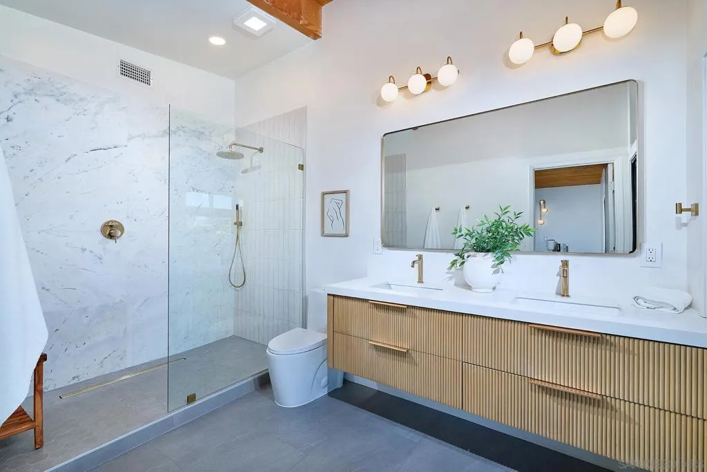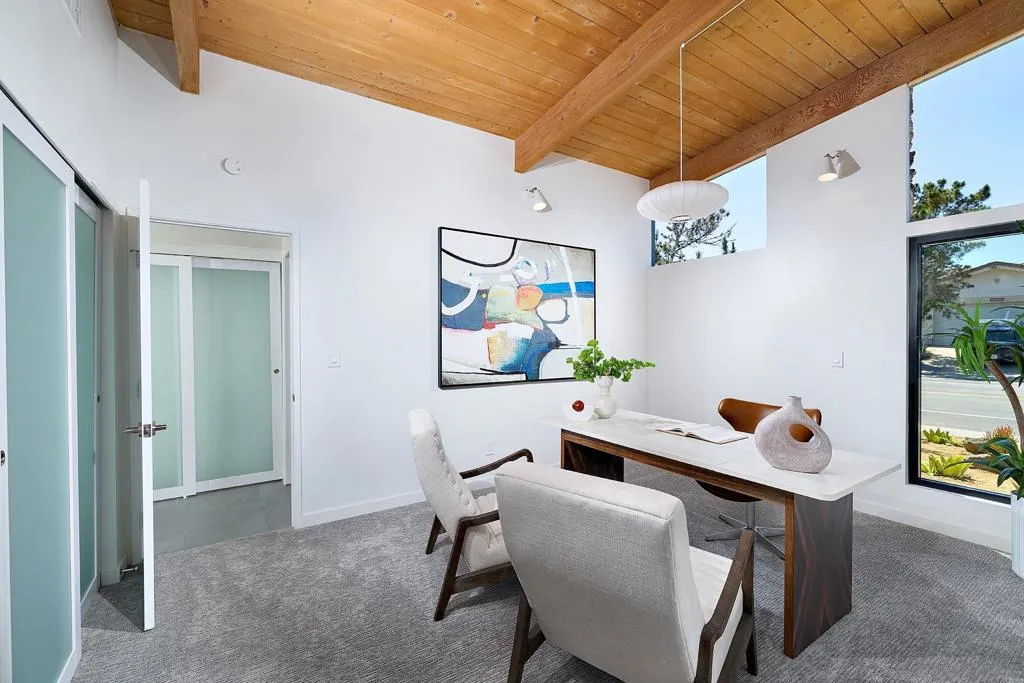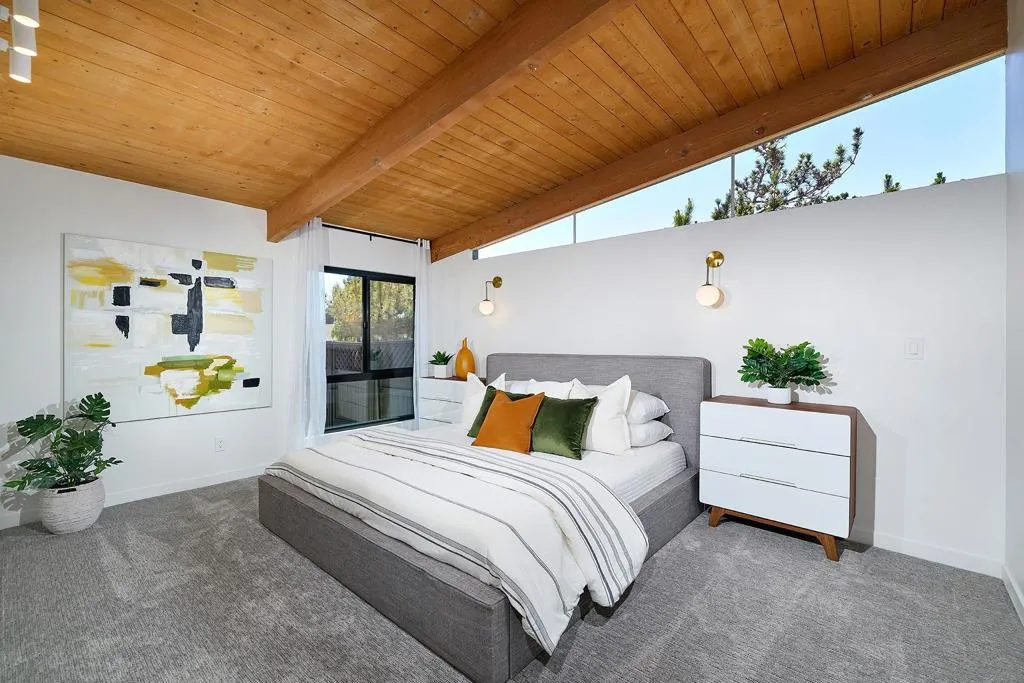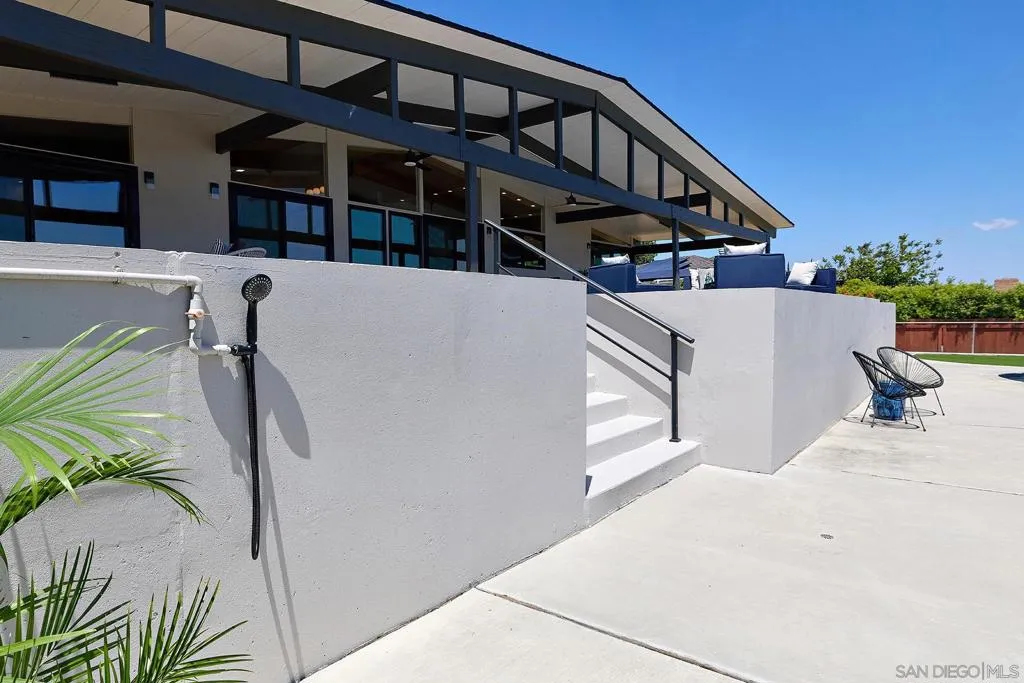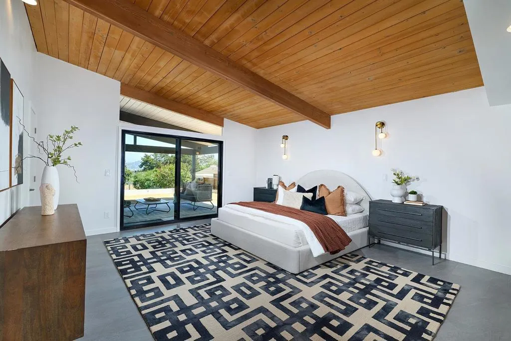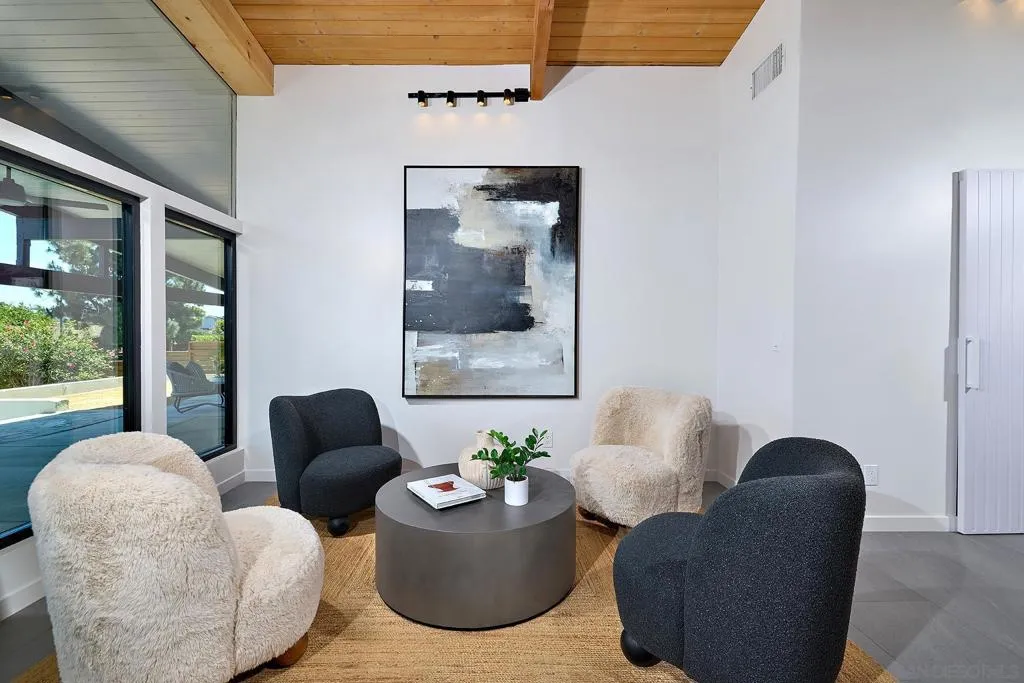 Iconic Krisel Mid-Century home with pool, views, and serious entertaining space. This single-level 4 bed, 3 bath home has been thoughtfully reimagined to honor its architectural roots while delivering today's modern comforts. Expansive indoor-outdoor living includes a private pool and over 1,000 sq ft of covered entertaining space. A rare opportunity to own a true piece of California modernism. Architecturally significant mid-century modern residence designed by William Krisel, showcasing iconic design paired with a complete modern reimagining. This single-level home offers 4 bedrooms, 3 bathrooms, and approximately 2,700 square feet of open, expansive living space. Signature mid-century elements are on full display, including dramatic vaulted ceilings with exposed wood beams, clean architectural lines, and walls of dual-pane floor-to-ceiling glass that flood the home with natural light while framing sweeping lake and mountain views. The thoughtfully designed open floor plan creates seamless flow between living, dining, and kitchen spaces—ideal for both everyday living and entertaining. The chef’s kitchen is a true centerpiece, featuring slim shaker wood cabinetry, high-end appliances, champagne bronze hardware, and a striking 10-foot quartzite waterfall island with eat-at seating. Additional highlights include a wine/beverage refrigerator and a dedicated water filtration system at the sink. The primary suite offers a private retreat, complete with vaulted ceilings, a spacious walk-in closet, and a spa-inspired bathroom featuring a walk-in marble shower and dual floating vanity with designer finishes. Indoor-outdoor living is elevated by the continuation of the roofline into an expansive covered entertaining space offering over 1,000 square feet of outdoor living. Complete with ceiling fans and integrated lighting, this space is designed for year-round enjoyment. A view deck, hard-piped for gas, is ready for a fire feature or outdoor kitchen to complete the experience. Just steps below, the backyard retreat features a beautifully designed pool with Baja shelf, surrounding lounge areas, and low-maintenance turf—all set against a stunning backdrop of panoramic lake and mountain views. Situated on a large, flat, and highly usable lot, the property also offers generous side yard space with endless potential for additional entertaining, play, or customization. Recent upgrades include a new roof, new dual-zoned A/C system, tankless water heater, and new windows and sliders—providing both comfort and peace of mind. A rare opportunity to own a true piece of California modernism, blending timeless architecture with today’s most desirable finishes and lifestyle amenities.