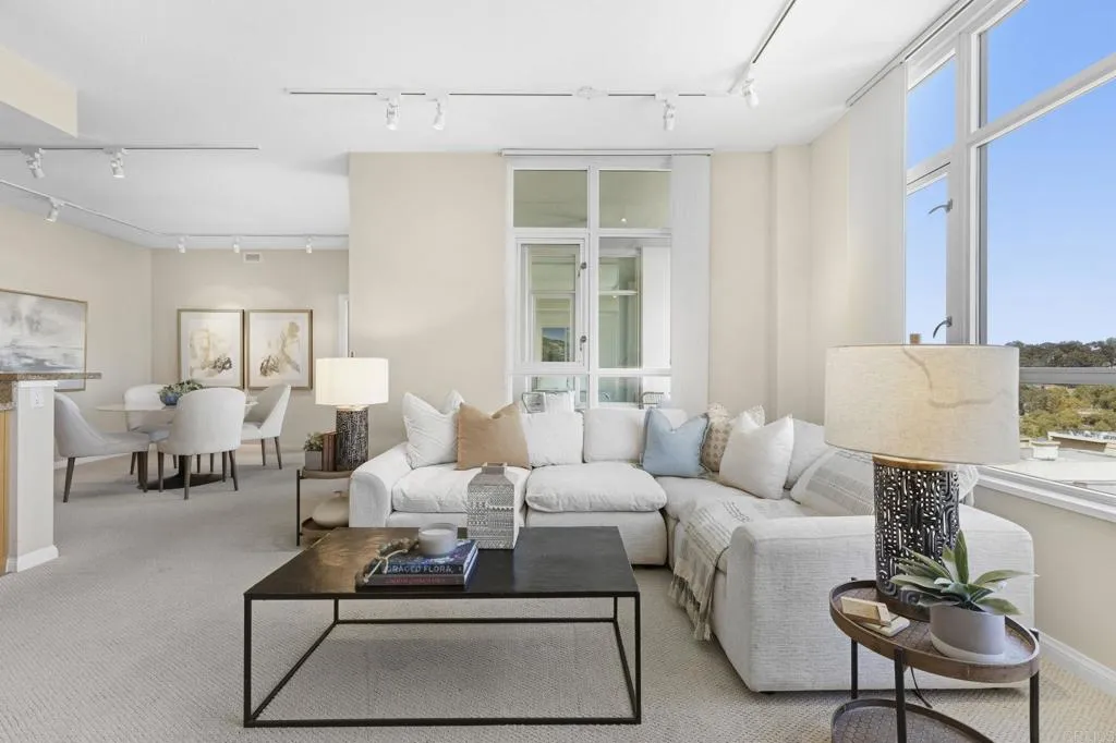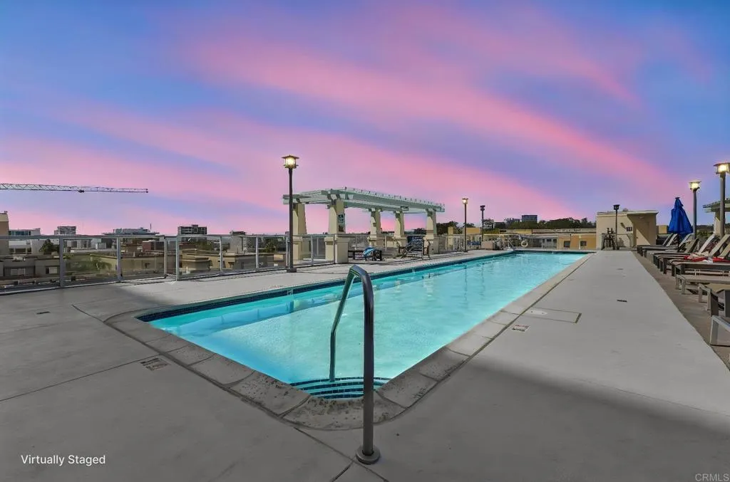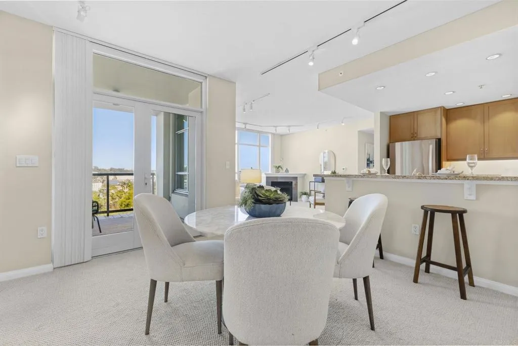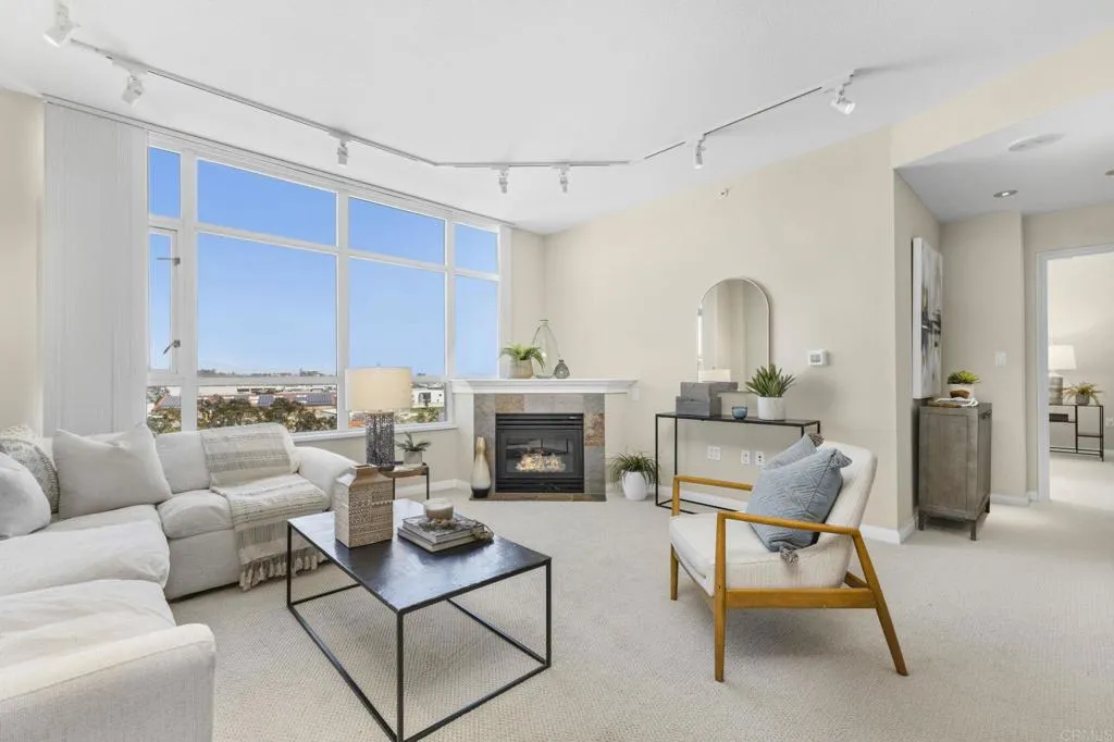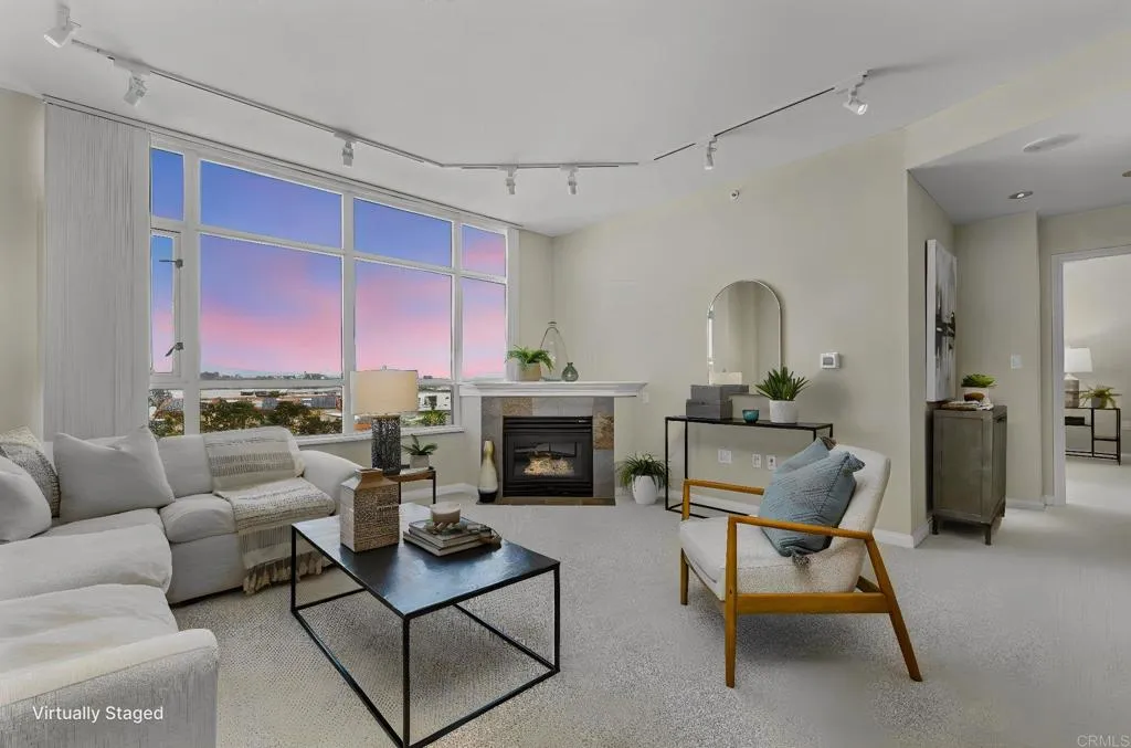 Spacious open-plan 2Br/2Ba unit in Downtown's quietest neighborhood. The formal entry leads you to the large open Living, Dining, and Kitchen area, perfect for entertaining; the gas fireplace adds a warm glow to any gathering. Primary suite has room for a sitting area and the spa bath features a 6' soaking tub and large separate walk-in shower. Your guest suite is generously sized and has a huge walk-in closet, adjacent bath, and a pocket door for maximum privacy. Dual AC units make comfort and efficiency easy. Discovery at Cortez Hill is a full-service building with superior amenities (check out the roof-top pool and fitness center) paired with great social interaction. Full time front desk staff and extensive electronic surveillance give residents an elevated sense of security. HOA Fee includes Gas, Water, and WiFi/Internet. In-unit laundry, 2 deeded parking spaces, and separate storage are included.
