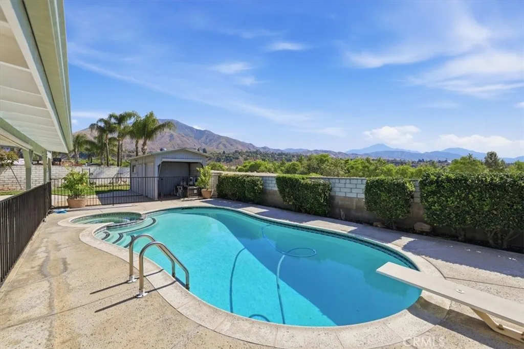 STOP THE CAR. . . YOU WON’T WANT TO MISS ONE! (yes it CHECKS ALL OF THE BOXES!) POOL? (check), PAID SOLAR (check), RV PARKING (check), MOUNTAIN VIEW (check), WORKSHOP (check), FOUR BEDROOMS (check) A-F-F-O-R-D-A-B-L-E (check) OOOOHH. . . . . . . . . . . . . and that’s not all!! Welcome to this beautifully maintained home, immediately appealing, with an arched entry and covered front porch leading to the front door. This 4-bedroom, 3-bath home in a desirable Highland location, offers a great combination of comfort, flexibility, and outdoor living. Upon entering, the volume ceilings, large picture windows and warm wood flooring create an inviting appeal. This home features a formal living and dining area and a well-appointed kitchen with granite countertops, a breakfast peninsula with pendant lights, updated cabinetry and stainless appliances. An adjacent cozy family room offers comfortable everyday living and entertaining with a custom mantled fireplace and slider to covered back yard patio (complete with lights and ceiling fans) The thoughtfully designed floor plan includes a full bedroom and bathroom on the main level—ideal for guests, multigenerational living, or a private home office. Upstairs you’ll find the primary ensuite with adjoining bathroom and a full-length mirrored wardrobe, as well as two other nice-sized bedrooms that share a hall bathroom. Step outside to your own backyard retreat, complete with a sparkling pool and relaxing spa, surrounded by a well-maintained lawn and mature landscaping. With no rear neighbor, the space feels private and open—well-suited for gatherings or quiet evenings at home while you enjoy the mountain views. Additional highlights include crown molding, ceiling fans, recessed lighting, fully PAID solar for long-term energy savings, a long driveway and custom gate for RV parking (grass covered pavers to traverse over lawn with RV), and a detached workshop area that offers flexibility for storage, and ideal hobbies, or projects. Central air, and a whole house fan adds to the home’s overall efficiency and comfort. And the garage is loaded with storage too! The property offers lovely curb appeal and landscaping with a welcoming presence. Combining practical features with inviting spaces, its an amazingly complete family home. Yes, it C-H-E-C-K-S A-L-L O-F T-H-E B-O-X-E-S ! See it today!