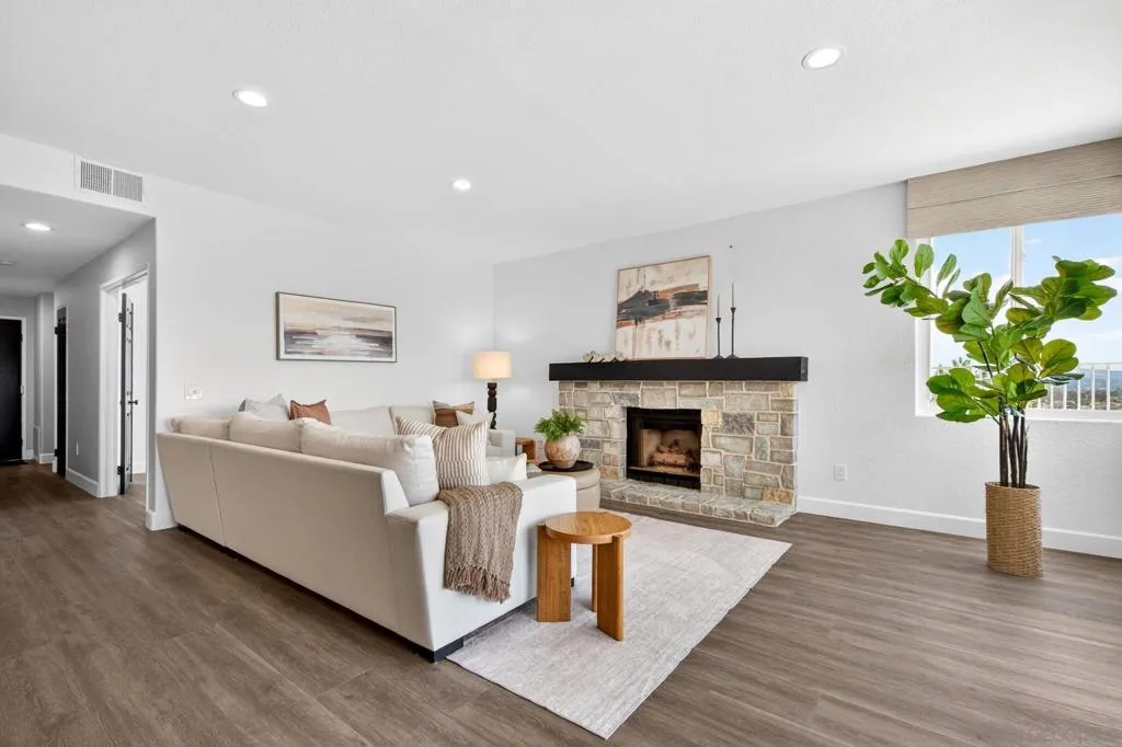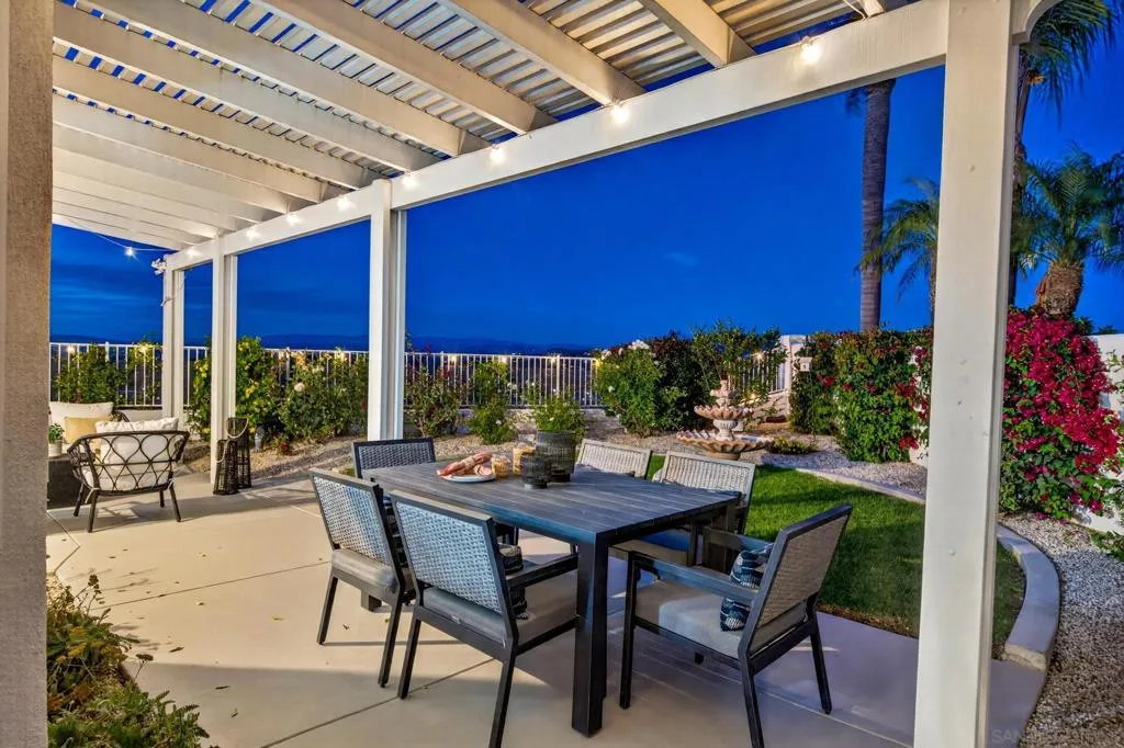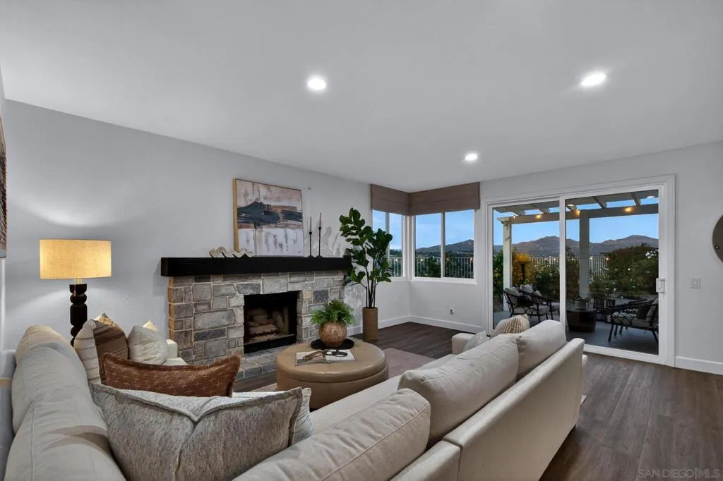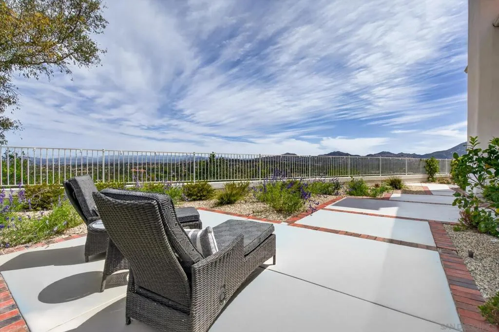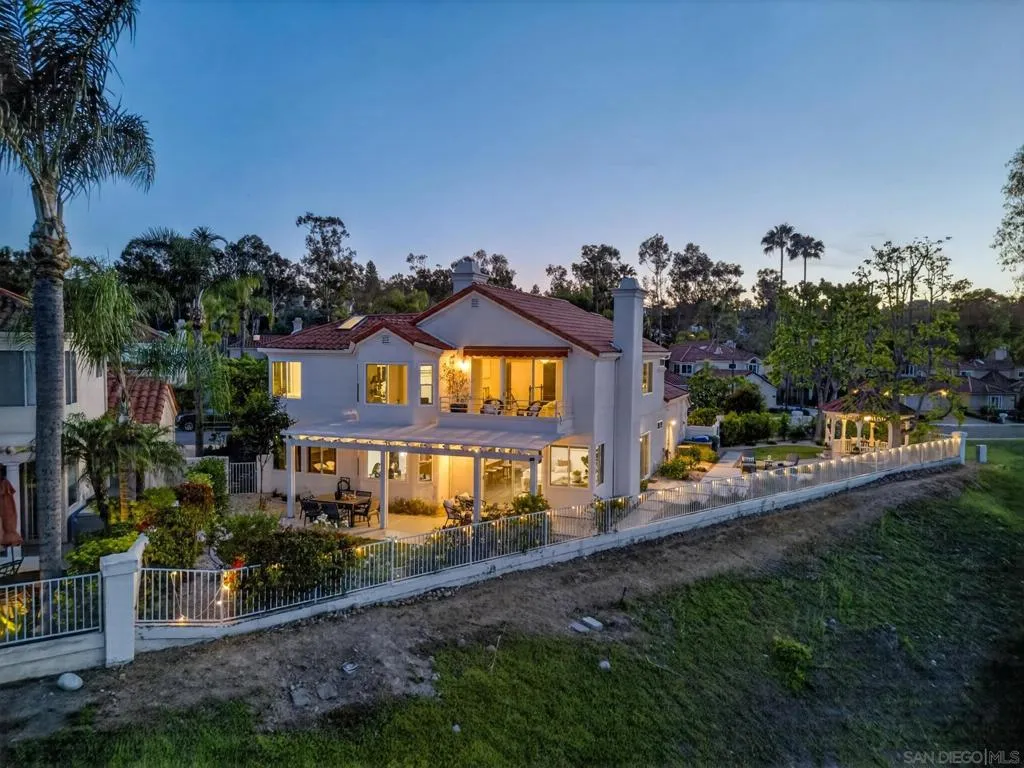Breathtaking panoramic views set the stage for this beautifully updated home in the St. Andrews community of Rancho Bernardo. Privately situated on a spacious lot with a gazebo and wraparound patios, this residence offers seamless indoor-outdoor living with a warm, modern aesthetic. The professionally designed kitchen showcases leathered quartzite countertops, custom cabinetry, and high-end appliances including a Viking range, Dacor refrigerator and dishwasher, and GE Advantium oven, with built-in banquette seating that opens to a cozy family room with a stone fireplace. The flexible floor plan features a downstairs office or optional bedroom with full bath. Additional highlights include a NEW ROOF, custom built-ins, and LVP flooring throughout. The luxurious primary suite offers a fireplace, sitting area, walk-in closet, and private balcony with sunrise views. The refreshed living room showcases custom built-in bookshelves for a warm, library-inspired feel. An upstairs bedroom includes a built-in desk, while another features a custom window seat, bookshelves, and an expanded window to capture the views. Residents enjoy access to the Bernardo Heights Clubhouse with pools, tennis, and fitness, all within the award-winning Poway Unified School District and just minutes to I-15. Breathtaking panoramic views set the stage for this beautifully updated home in the St. Andrews community of Rancho Bernardo. Privately situated on a spacious lot with a gazebo and wraparound patios, this residence offers seamless indoor-outdoor living with a warm, modern aesthetic. The professionally designed kitchen showcases leathered quartzite countertops, custom cabinetry, and high-end appliances including a Viking range, Dacor refrigerator and dishwasher, and GE Advantium oven, with built-in banquette seating that opens to a cozy family room with a stone fireplace. The flexible floor plan features a downstairs office or optional bedroom with full bath. Additional highlights include a NEW ROOF, custom built-ins, and LVP flooring throughout. The luxurious primary suite offers a fireplace, sitting area, walk-in closet, and private balcony with sunrise views. The refreshed living room showcases custom built-in bookshelves for a warm, library-inspired feel. An upstairs bedroom includes a built-in desk, while another features a custom window seat, bookshelves, and an expanded window to capture the views. Residents enjoy access to the Bernardo Heights Clubhouse with pools, tennis, and fitness, all within the award-winning Poway Unified School District and just minutes to I-15.