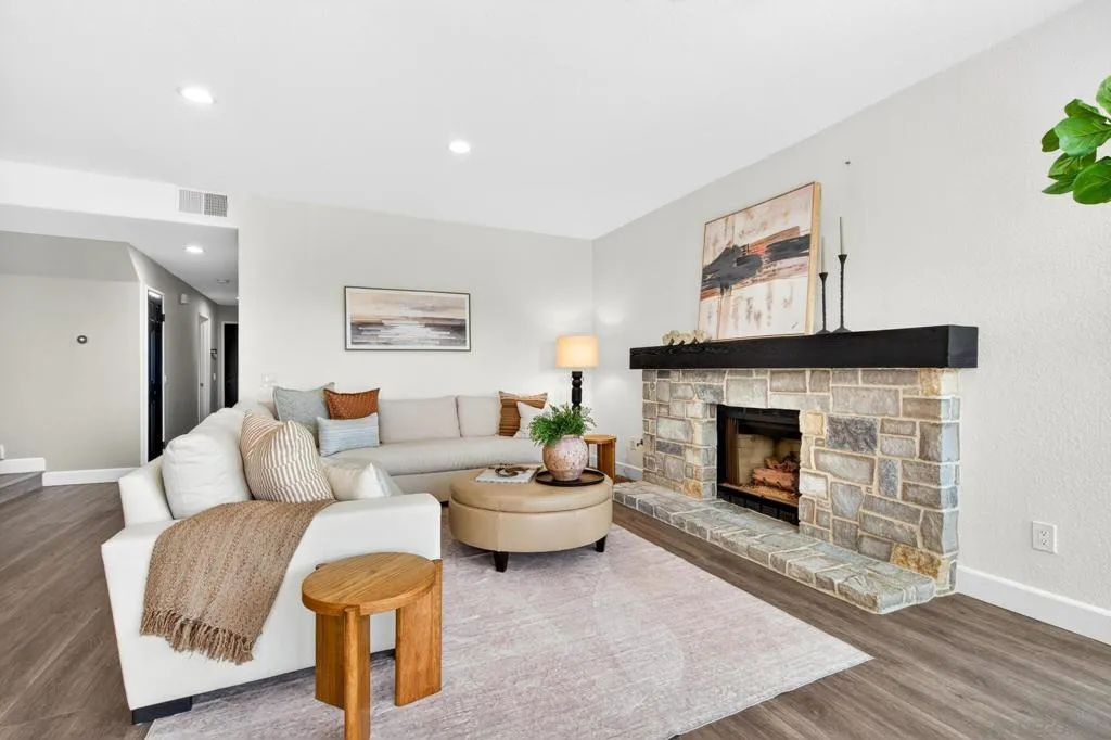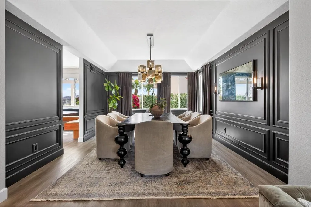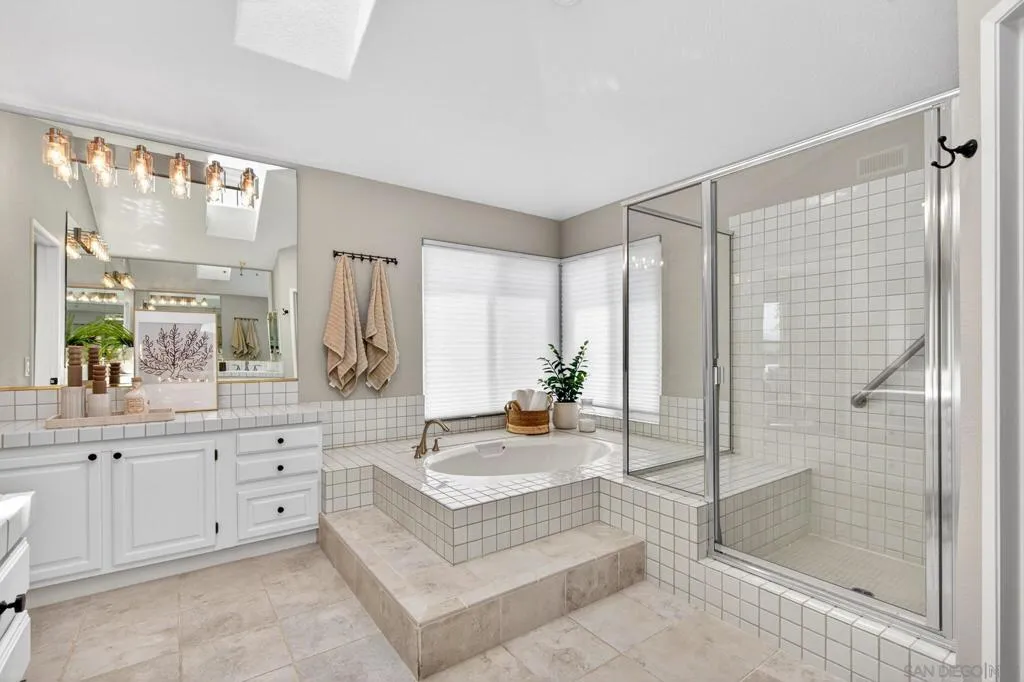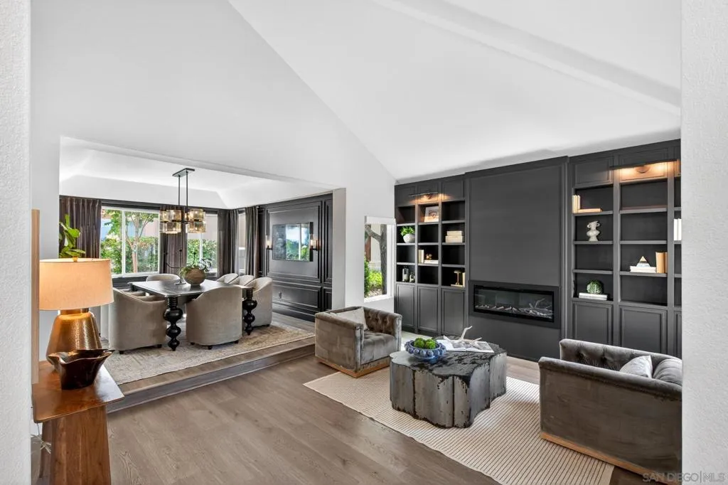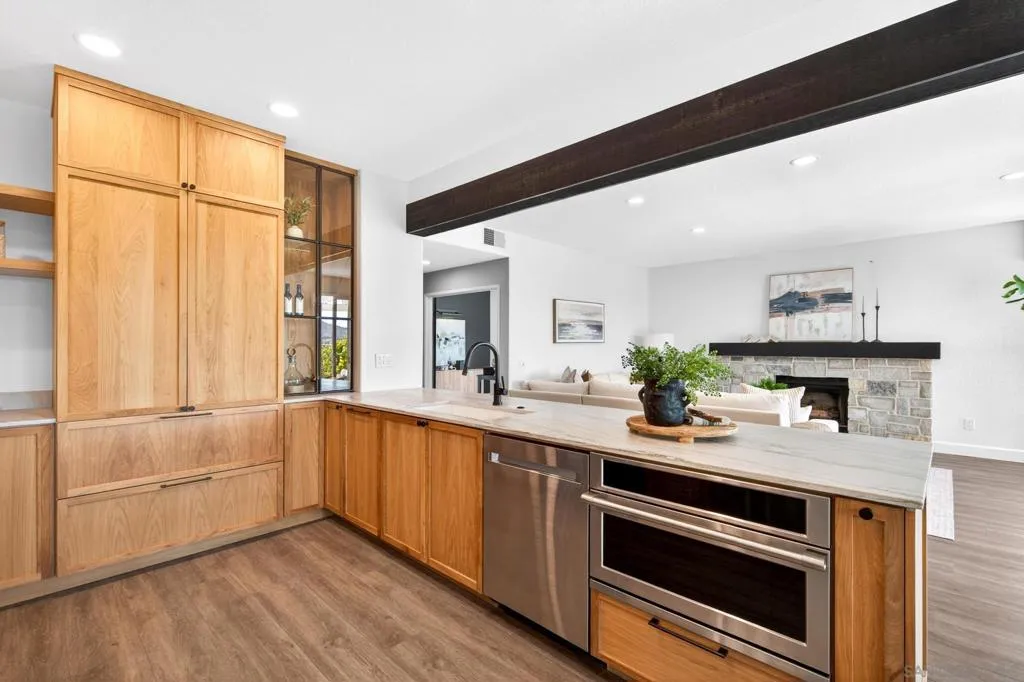 Breathtaking panoramic views set the stage for this beautifully updated home in the St. Andrews community of Rancho Bernardo. Privately situated on a spacious lot with a gazebo and wraparound patios, this residence offers seamless indoor-outdoor living with a warm, modern aesthetic. The professionally designed kitchen showcases leathered quartzite countertops, custom cabinetry, and high-end appliances including a Viking range, Dacor refrigerator and dishwasher, and GE Advantium oven, with built-in banquette seating that opens to a cozy family room with a stone fireplace. The flexible floor plan features a downstairs office or optional bedroom with full bath. Additional highlights include a NEW ROOF, custom built-ins, and LVP flooring throughout. The luxurious primary suite offers a fireplace, sitting area, walk-in closet, and private balcony with sunrise views. The refreshed living room showcases custom built-in bookshelves for a warm, library-inspired feel. An upstairs bedroom includes a built-in desk, while another features a custom window seat, bookshelves, and an expanded window to capture the views. Residents enjoy access to the Bernardo Heights Clubhouse with pools, tennis, and fitness, all within the award-winning Poway Unified School District and just minutes to I-15. Breathtaking panoramic views set the stage for this beautifully updated home in the St. Andrews community of Rancho Bernardo. Privately situated on a spacious lot with a gazebo and wraparound patios, this residence offers seamless indoor-outdoor living with a warm, modern aesthetic. The professionally designed kitchen showcases leathered quartzite countertops, custom cabinetry, and high-end appliances including a Viking range, Dacor refrigerator and dishwasher, and GE Advantium oven, with built-in banquette seating that opens to a cozy family room with a stone fireplace. The flexible floor plan features a downstairs office or optional bedroom with full bath. Additional highlights include a NEW ROOF, custom built-ins, and LVP flooring throughout. The luxurious primary suite offers a fireplace, sitting area, walk-in closet, and private balcony with sunrise views. The refreshed living room showcases custom built-in bookshelves for a warm, library-inspired feel. An upstairs bedroom includes a built-in desk, while another features a custom window seat, bookshelves, and an expanded window to capture the views. Residents enjoy access to the Bernardo Heights Clubhouse with pools, tennis, and fitness, all within the award-winning Poway Unified School District and just minutes to I-15.