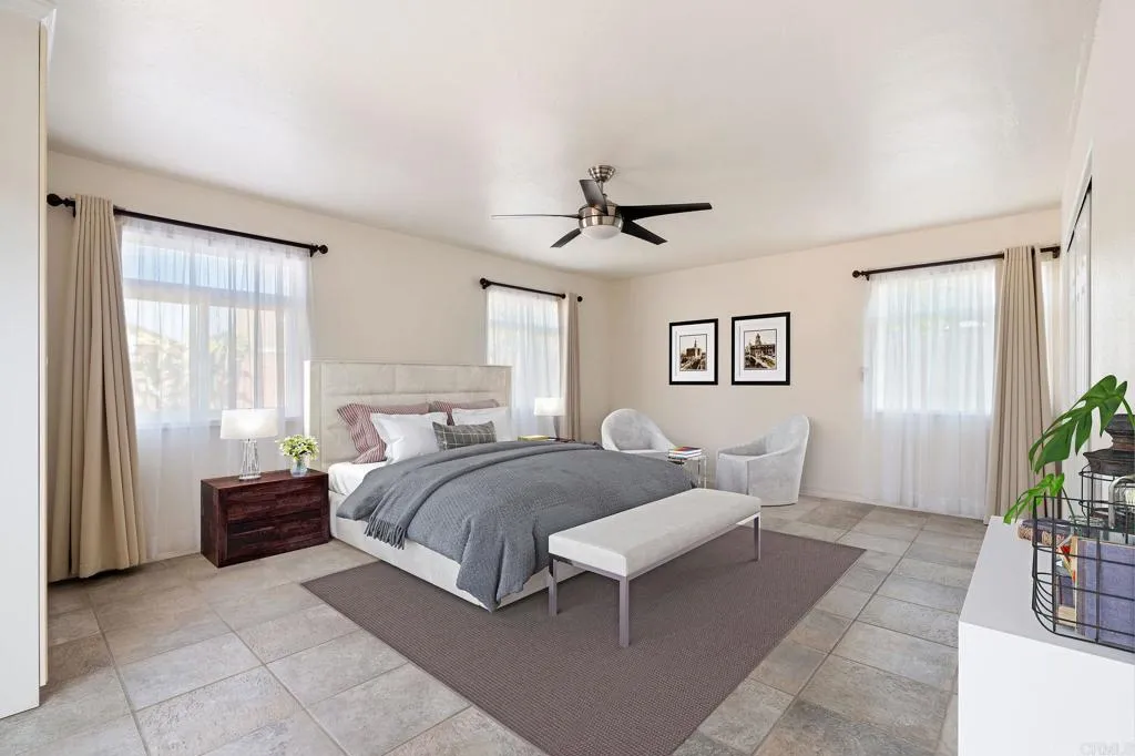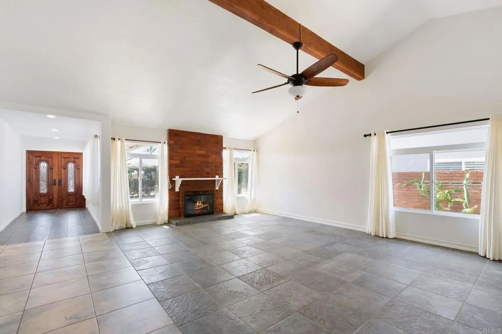 Fabulous Mira Mesa home in great neighborhood. This large and open floor plan has 4 bedrooms, 3 full bathrooms, tile floors throughout and a beautifully upgraded kitchen. The outside has both a great back patio area and front secluded front patio area as well. All appliances are included with washer & dryer in 2 car attached garage. Double pane windows throughout. Very light and bright throughout. Gas fireplace in large living room. High ceilings make this even more spacious. Home comes equipped with Solar Power which saves a tremendous amount on your electric bills. Average about $30 a month. Walking distance to Los Penasquitos Canyon with the wonderful park and hiking trails. Tons of shops and restaurants just down the street. Must check this place out. Trash is included. Available May 19, 2026. First day of showings will be Saturday May 2nd.