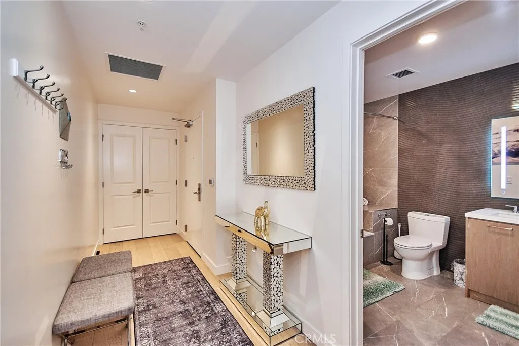 Experience refined city living in this stunning one-bedroom residence at Perla, a newly built luxury high-rise in the vibrant core of Los Angeles. Thoughtfully designed and fully appointed, this home captures the essence of modern sophistication with an unbeatable location along Broadway and access to an exceptional collection of amenities. Inside, expansive floor-to-ceiling glass showcases sweeping views that may include the San Gabriel Mountains, Hollywood Hills, or the iconic Downtown skyline, while flooding the space with natural light. Elegant European white oak flooring runs throughout, complemented by sleek, high-end finishes. The kitchen is both stylish and functional, featuring quartz surfaces and premium stainless steel appliances, ideal for everyday living or entertaining. Enjoy morning coffee or unwind in the evening while taking in panoramic city views from your own space or the building’s rooftop retreat. Perla offers a seamless blend of comfort and innovation, with advanced security systems and integrated smart home features enhancing everyday convenience. Located in the Historic Core, residents are just steps from some of the city’s best dining, nightlife, cultural attractions, and transit options. Whether you're looking for a sophisticated personal residence or a standout investment opportunity, this home delivers a polished urban lifestyle in one of LA’s most sought-after neighborhoods.