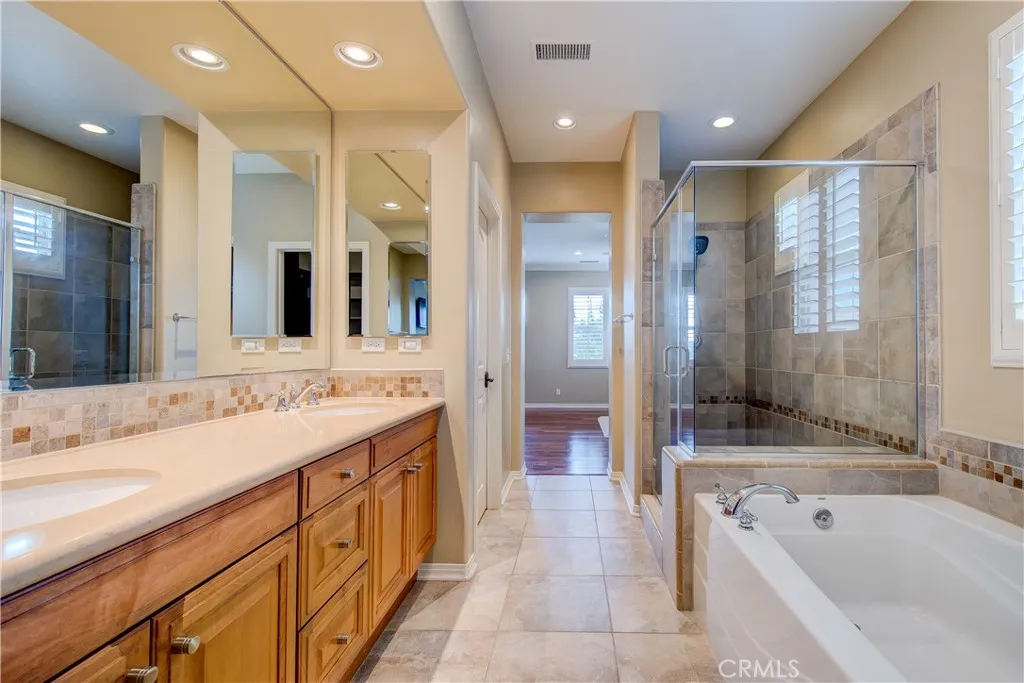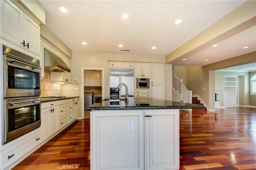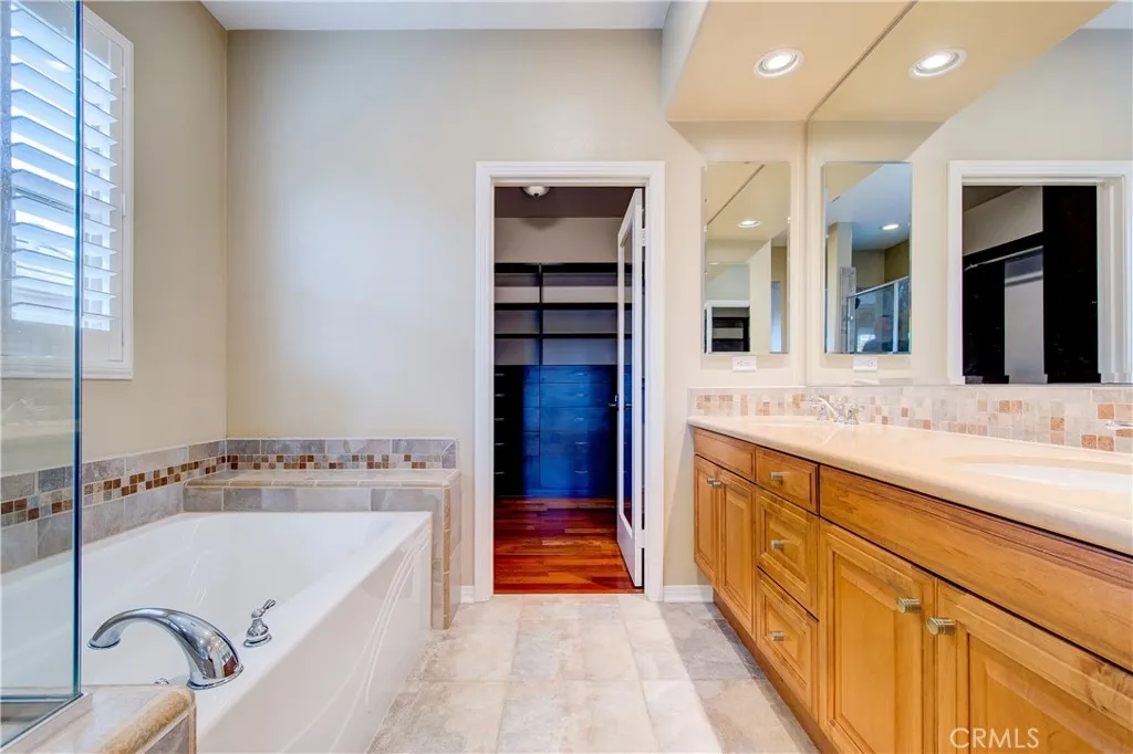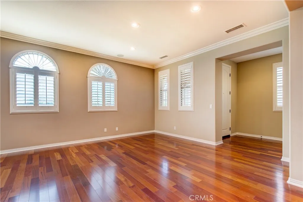 Fabulous detached home located at the most sought of Woodbury community in the city of Irvine, and walking distance to Woodbury Towncenter, which includes Ralphs, Trader Joe's, Bank of America, Hoag Urgent care. The amazing floor plan offers a downstairs guest room with an in-room full bath. Gourmet kitchen with large center island, granite countertop, full custom backsplash, stainless steel appliances, built-in refrigerator, and double oven. The laundry room is adjacent to the kitchen and leads to the two-car garage. The generous dining room leads to a beautiful side yard with built-in BBQ through french doors. Upon entry into the spacious family room, fireplace provides you and your guests a warm cozy place to get together. Spacious master suite is upstairs with built-ins, crown molding, ceiling fan, and fireplace that adds a cozy atmosphere. Bathroom in this suite is highly upgraded with a large soaking tub, dual vanity, and beautiful tile backsplash. Oversized walk-in closet features plenty of built-ins for convenient storage space. Secondary rooms are painted with nice color with big size closet. Other upgrades include beautiful wood floors throughout the whole house, recessed lighting, custom paint, custom built-in entertainment center. Water soften system throughout the whole house. Easy access to resort-quality amenities and the highest-ranked schools in OC! Welcome home.