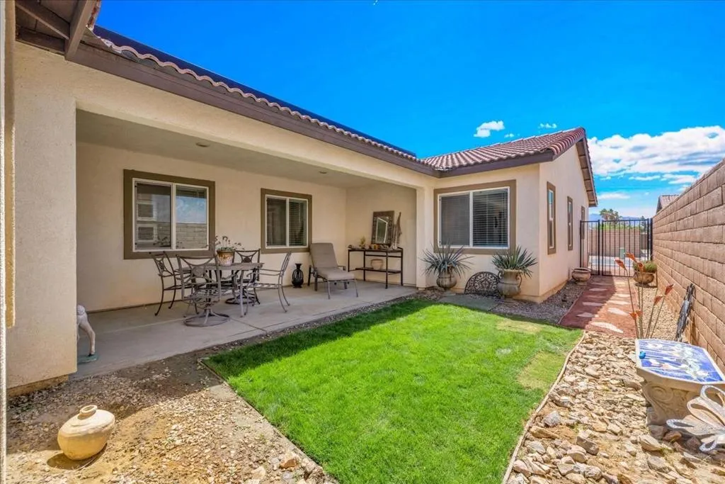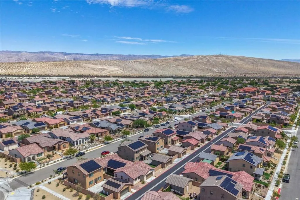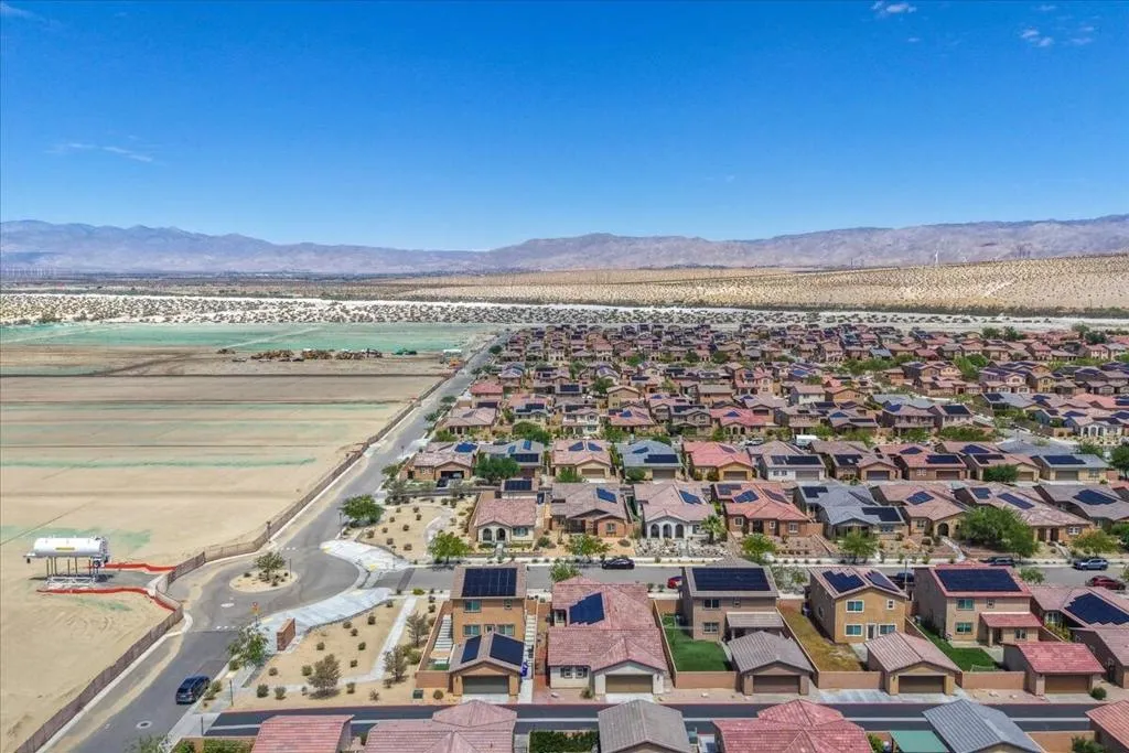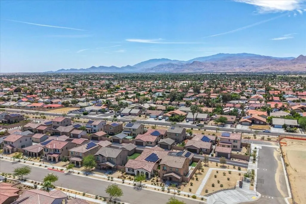 Welcome to this 3-bedroom, 2-bathroom single-family home located in the desirable Verano HOA community in Cathedral City, CA. Built just 5 years ago, this newer construction offers modern design, energy efficiency, and low-maintenance living in a vibrant and growing neighborhood. Step inside to find an open-concept layout with a spacious living area, well-appointed kitchen, and comfortable dining space that is perfect for everyday living and entertaining. The primary suite provides a relaxing retreat, complete with ample closet space and a private bath. This home features owned solar, helping you enjoy lower energy costs and greater sustainability year-round. An attached 2-car garage adds convenience, storage, and secure parking. Residents enjoy access to parks, walking paths, and a welcoming neighborhood atmosphere, all while being just minutes from shopping, dining, and easy freeway access. Thoughtfully designed, this home is an excellent opportunity to own a newer property in one of Cathedral City's most appealing communities.
