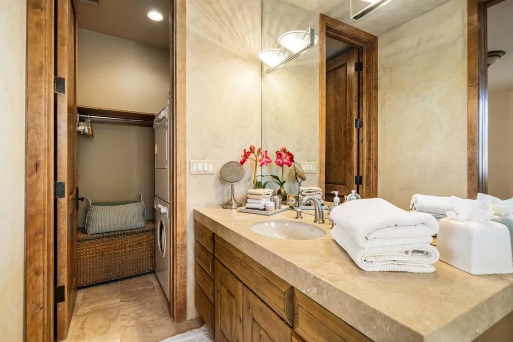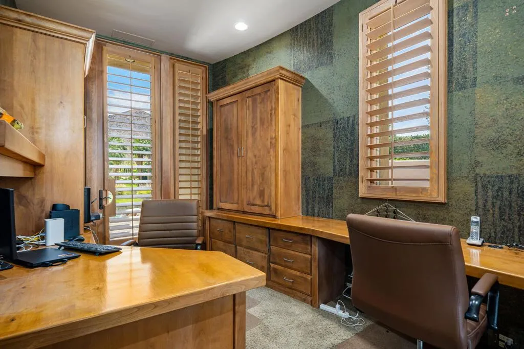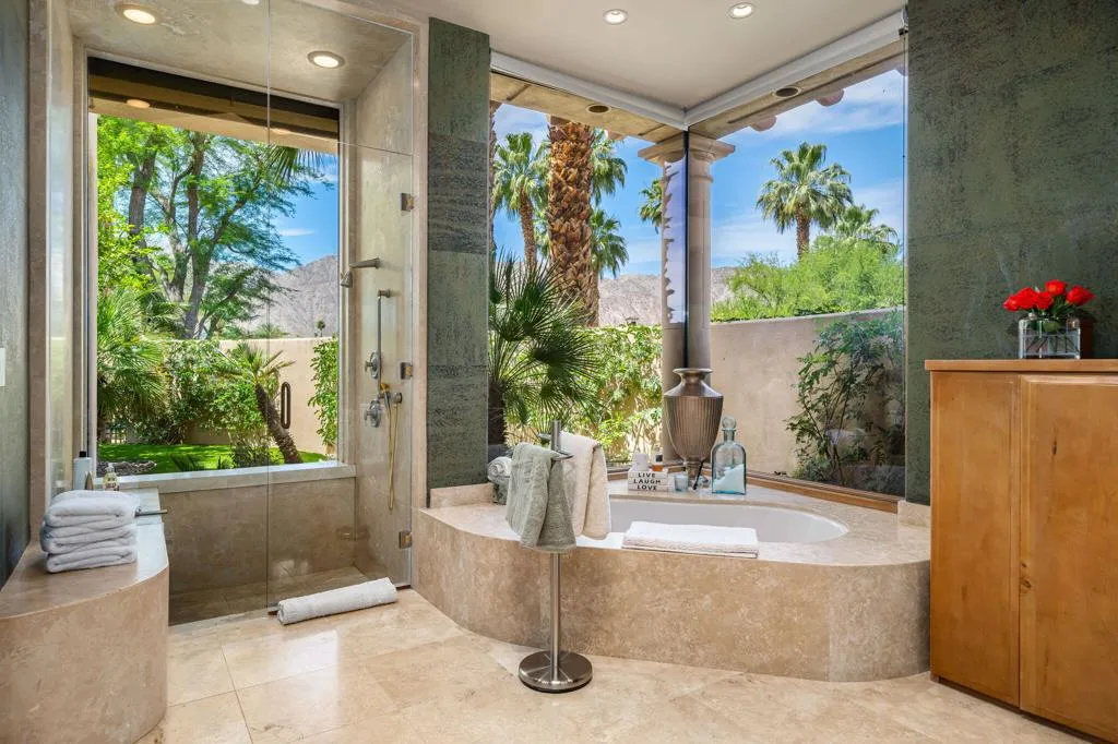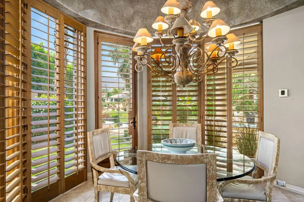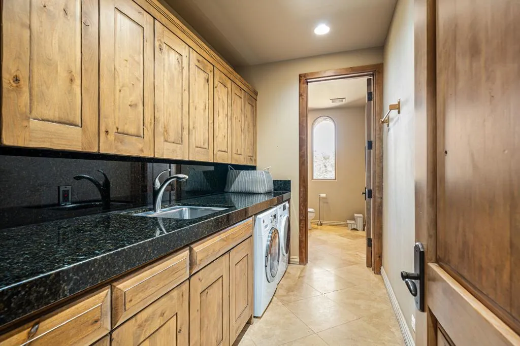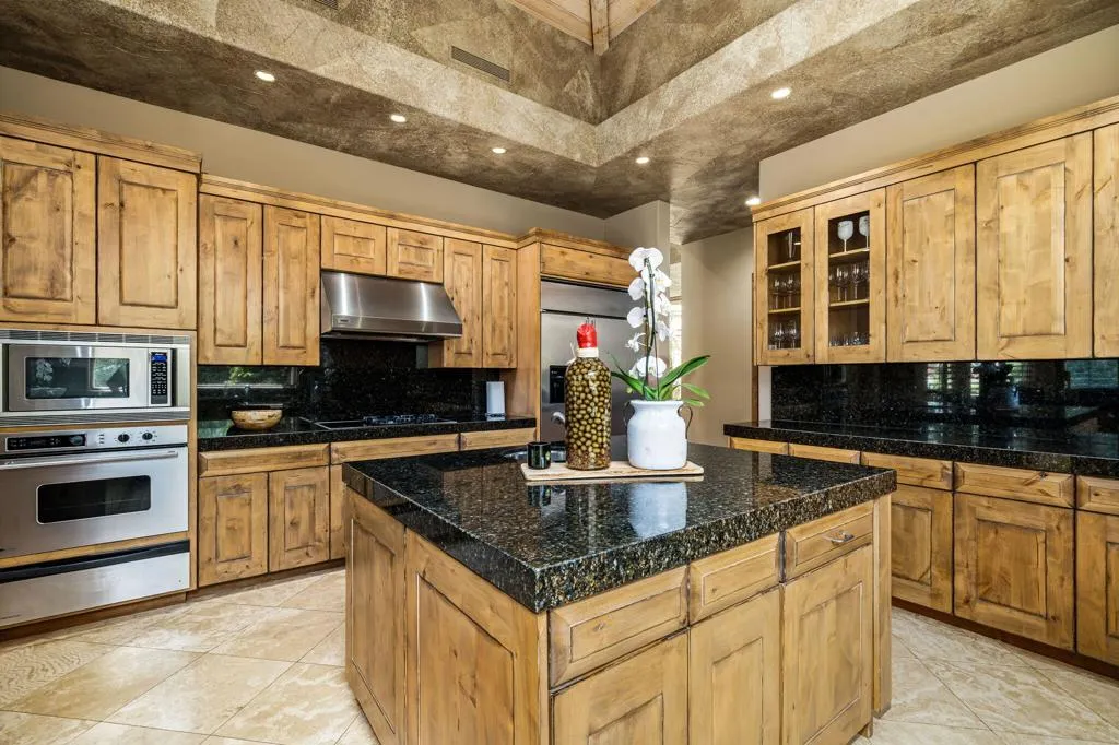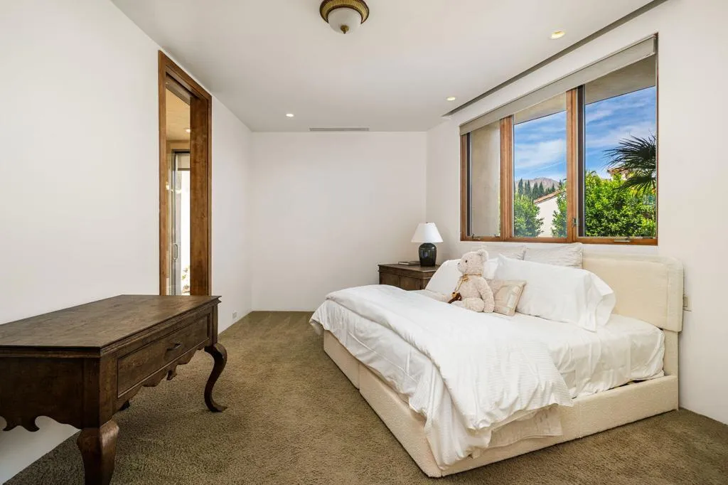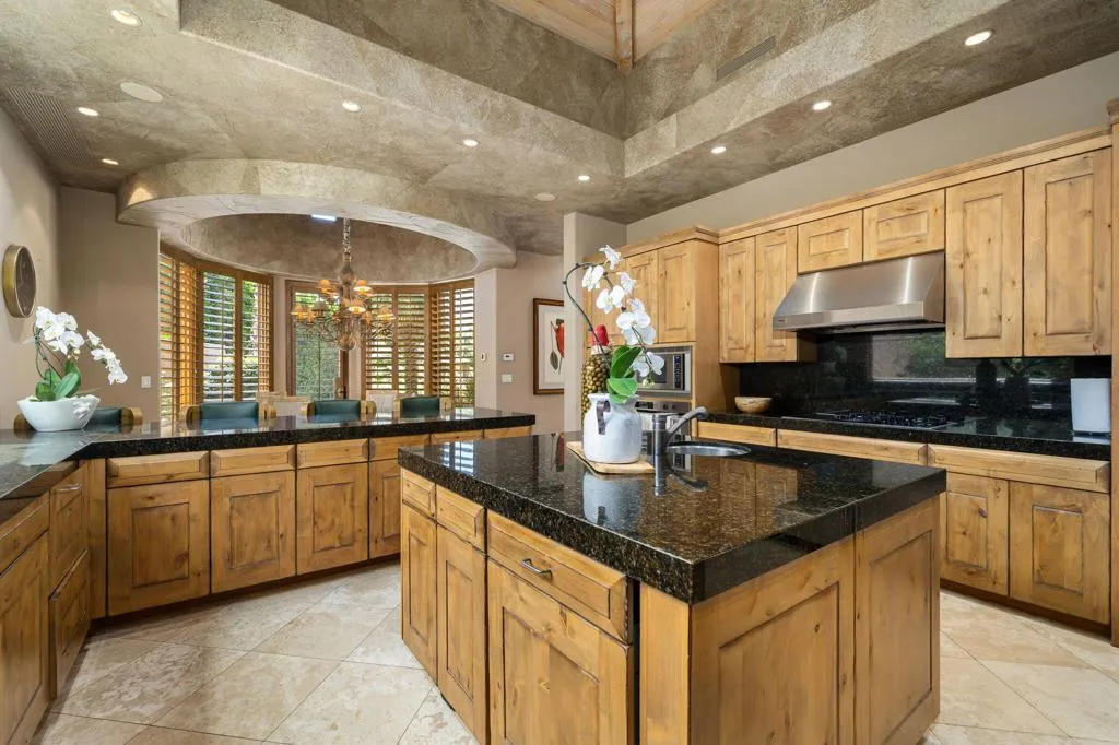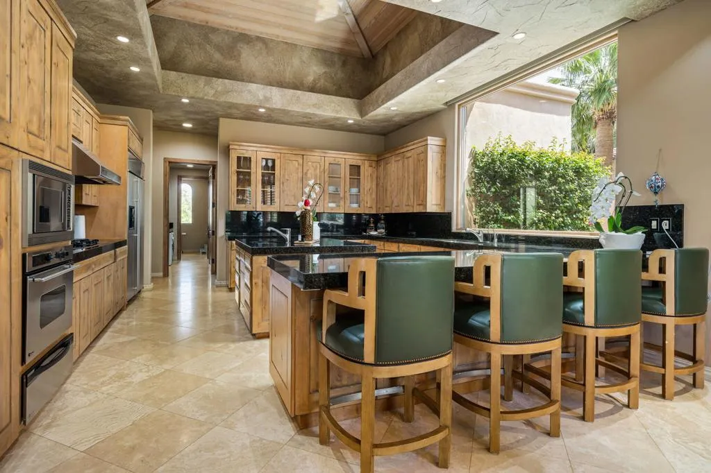 Designed by renowned architect Narendra Patel, this exceptional custom residence in Tradition offers timeless architecture, refined finishes, and breathtaking lakefront mountain views. Privately situated behind lush landscaping and dramatic water features, the home welcomes you through an elegant entry courtyard where cascading rock waterfalls create a true sense of arrival. Pocketing walls of glass seamlessly blend indoor and outdoor living, opening to expansive entertaining spaces with travertine flooring that continues throughout the patios. The stunning backyard is a private resort featuring a pebble-finish pool with swim-up jets, elevated spa, outdoor fireplace, and tranquil waterfalls flowing into the sparkling lake, all framed by panoramic southern mountain vistas. Inside, soaring ceilings and grand-scale rooms create an impressive yet inviting atmosphere. The great room features custom built-ins, a statement fireplace, and effortless connection to the outdoors. Formal dining, two powder rooms, and a stylish wet bar make entertaining easy. The gourmet kitchen is designed for both everyday living and hosting, complete with premium appliances, multiple prep stations, breakfast bar seating, and a sunny morning room overlooking the water and mountains. The luxurious primary suite is a private retreat with a separate office, dual custom closets, and a spa-inspired marble bath with soaking tub. A detached guest casita offers two spacious bedroom suites, two baths, refreshment bar, and added privacy for family or guests. Offered furnished per inventory, this extraordinary home captures the very best of Tradition living with privacy, craftsmanship, and unforgettable views.