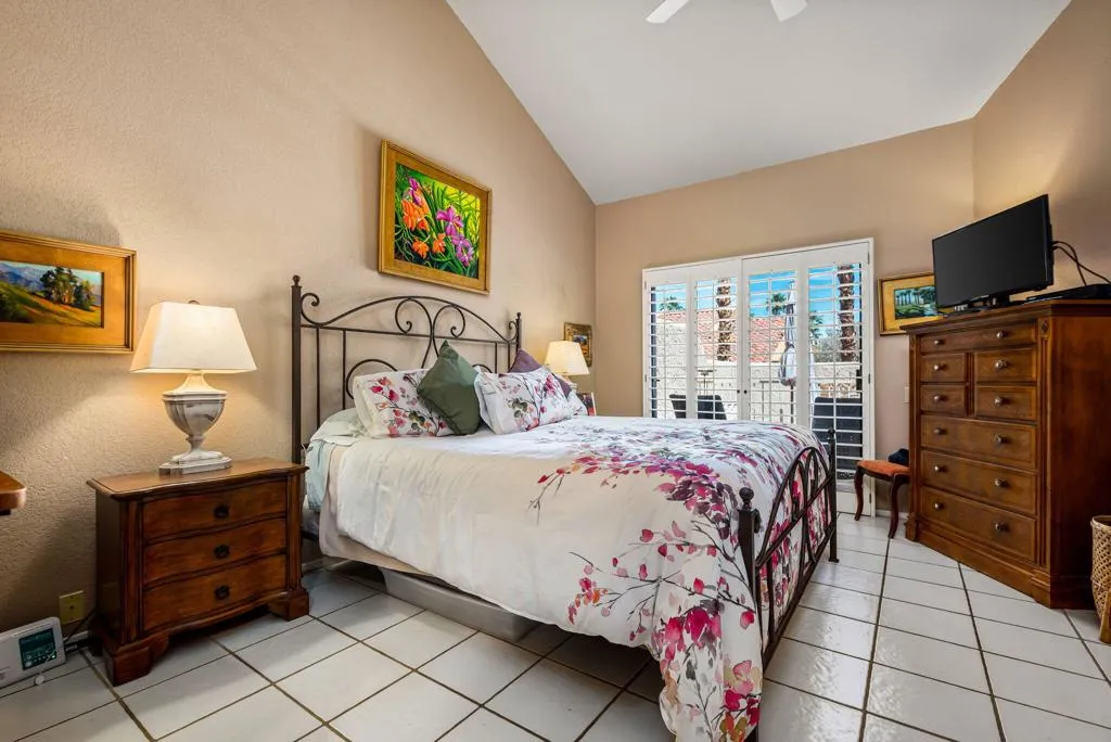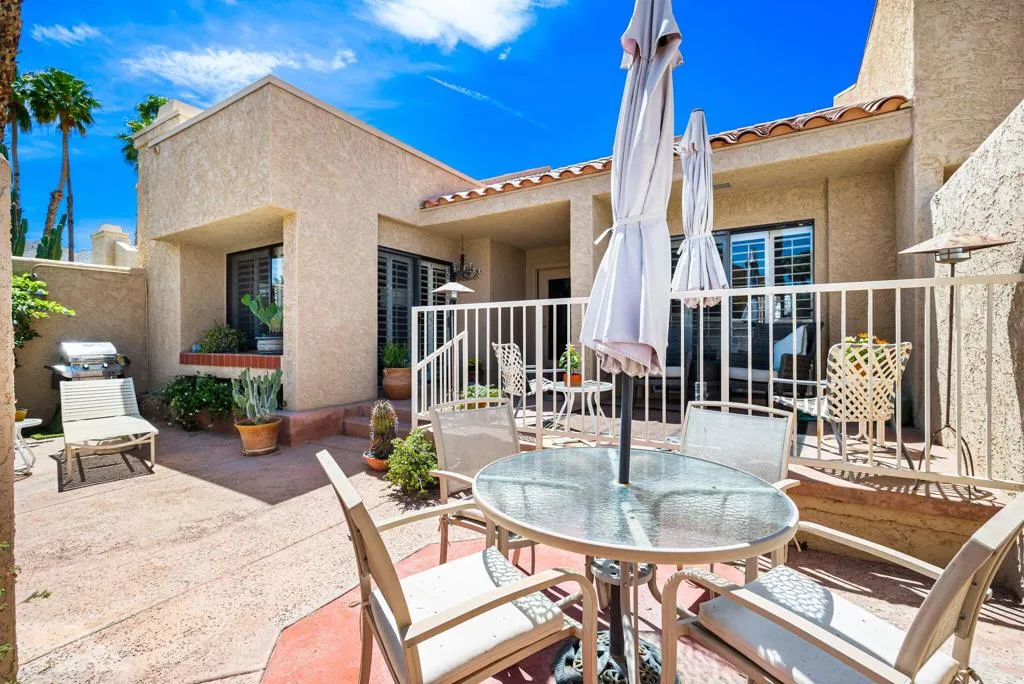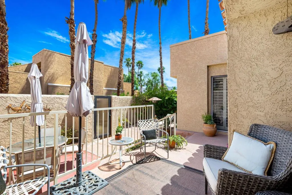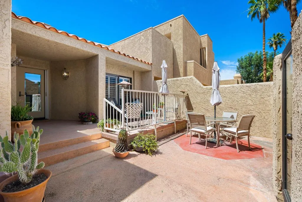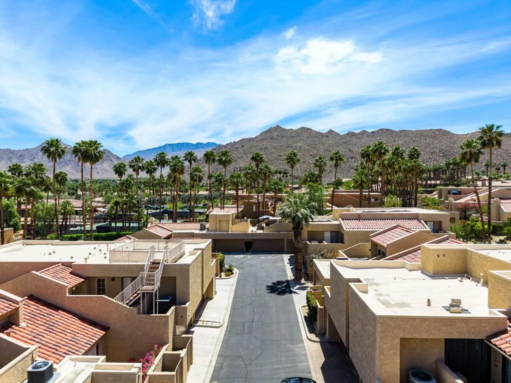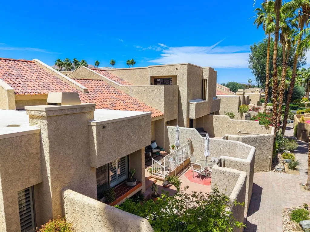 Perfectly-positioned END UNIT in a quiet, interior location inside the gates of Ironwood Country Club - one of the desert's preeminent social and golfing communities! Featuring GREAT VIEWS literally from inside your living room, this upgraded villa is offered FURNISHED and move-in ready - a rare gem offering peace, privacy, and scenic views inside and out. Truly the most coveted of the Courtyard floor plans, this condo is oversized and designed with TWO master suites on the lower level providing comfort and convenience. The heart of the home is the open-concept living room surrounded by natural light from three walls of windows and showcasing a beautifully REMODELED stack-stone gas fireplace with mantle. High ceilings, soothing desert wall colors, and a picture window that frames the gorgeous mountain views, deep blue skies, and swaying palms. The kitchen is efficiently laid out with granite countertops, GAS range, bar seating, and everything you need to entertain while providing plenty of storage. Adjacent to the kitchen is an intimate dining area, dedicated to fun times and good food, casual or elegant. The upper level is a versatile loft that looks out over the living space - providing an ideal sanctuary for a library, home office, or flexible overflow 3rd bedroom for weekend guests. From the loft, step outside to your private wraparound sun deck and soak in the panoramic mountain views - or take advantage of the dark desert skies (with no overhead street lights!) and stargaze with a cocktail. Large 2-car garage offers convenient direct access into the home and additional storage. Outside enjoy your own private, walled, oversized courtyard, perfect for lounging or dining. Nearby, you have your choice of two sparkling pools/spas. Whether you're seeking a full-time residence, seasonal getaway, or investment opportunity, this condo with its great layout, views, finishes, and serene setting delivers on every level. Ironwood CC is an upscale and diverse community featuring two 18-hole championship golf courses, a recently renovated clubhouse, state-of-the-art fitness center, tennis, pickleball, and year round dining and social events. Just a golf cart ride to El Paseo with its high-end shopping, dining, galleries, luxury shops, grocery and services. Minutes to College of the Desert, McCallum Theater, and Palm Springs Int'l.