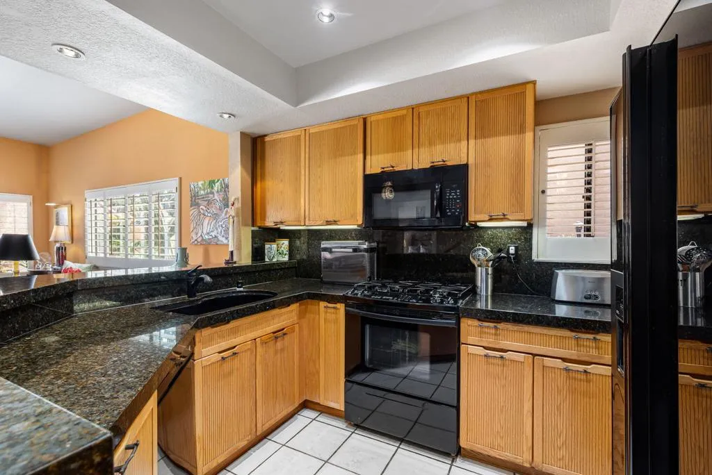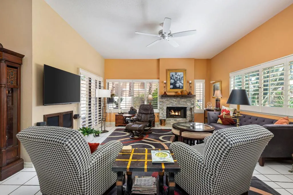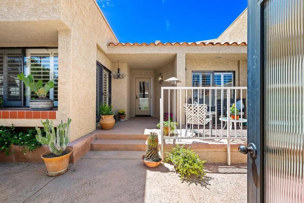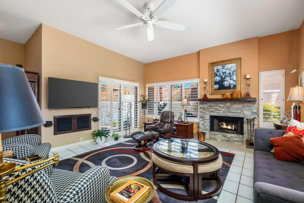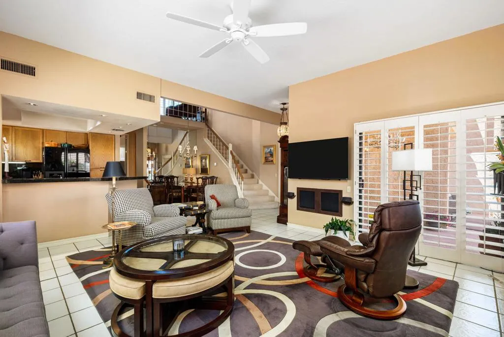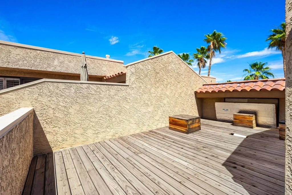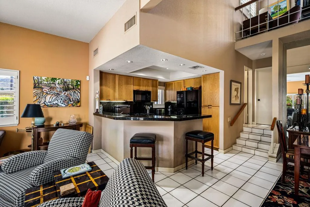 Perfectly-positioned END UNIT in a quiet, interior location inside the gates of Ironwood Country Club - one of the desert's preeminent social and golfing communities! Featuring GREAT VIEWS literally from inside your living room, this upgraded villa is offered FURNISHED and move-in ready - a rare gem offering peace, privacy, and scenic views inside and out. Truly the most coveted of the Courtyard floor plans, this condo is oversized and designed with TWO master suites on the lower level providing comfort and convenience. The heart of the home is the open-concept living room surrounded by natural light from three walls of windows and showcasing a beautifully REMODELED stack-stone gas fireplace with mantle. High ceilings, soothing desert wall colors, and a picture window that frames the gorgeous mountain views, deep blue skies, and swaying palms. The kitchen is efficiently laid out with granite countertops, GAS range, bar seating, and everything you need to entertain while providing plenty of storage. Adjacent to the kitchen is an intimate dining area, dedicated to fun times and good food, casual or elegant. The upper level is a versatile loft that looks out over the living space - providing an ideal sanctuary for a library, home office, or flexible overflow 3rd bedroom for weekend guests. From the loft, step outside to your private wraparound sun deck and soak in the panoramic mountain views - or take advantage of the dark desert skies (with no overhead street lights!) and stargaze with a cocktail. Large 2-car garage offers convenient direct access into the home and additional storage. Outside enjoy your own private, walled, oversized courtyard, perfect for lounging or dining. Nearby, you have your choice of two sparkling pools/spas. Whether you're seeking a full-time residence, seasonal getaway, or investment opportunity, this condo with its great layout, views, finishes, and serene setting delivers on every level. Ironwood CC is an upscale and diverse community featuring two 18-hole championship golf courses, a recently renovated clubhouse, state-of-the-art fitness center, tennis, pickleball, and year round dining and social events. Just a golf cart ride to El Paseo with its high-end shopping, dining, galleries, luxury shops, grocery and services. Minutes to College of the Desert, McCallum Theater, and Palm Springs Int'l.